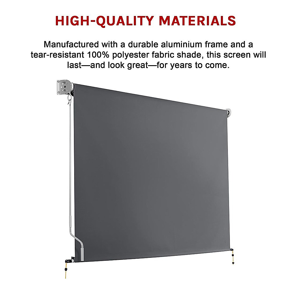 Manufactured with a durable aluminium frame and a tear-resistant 100% polyester fabric shade, this screen will lastand look greatfor years to come. Both the shade and frame are tear-resistant, UV-resistant, and breakage-resistant to help it endure even the harshest weather conditions.