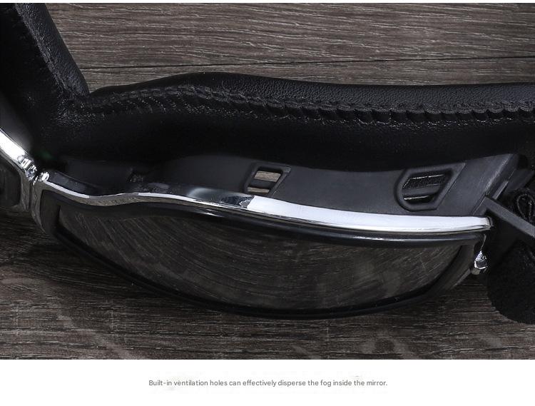 Retro Motorcycle Goggles – Windproof, UV400 Protection, Anti-Impact PC Lenses with Leather Frame(Black leather colored lens)