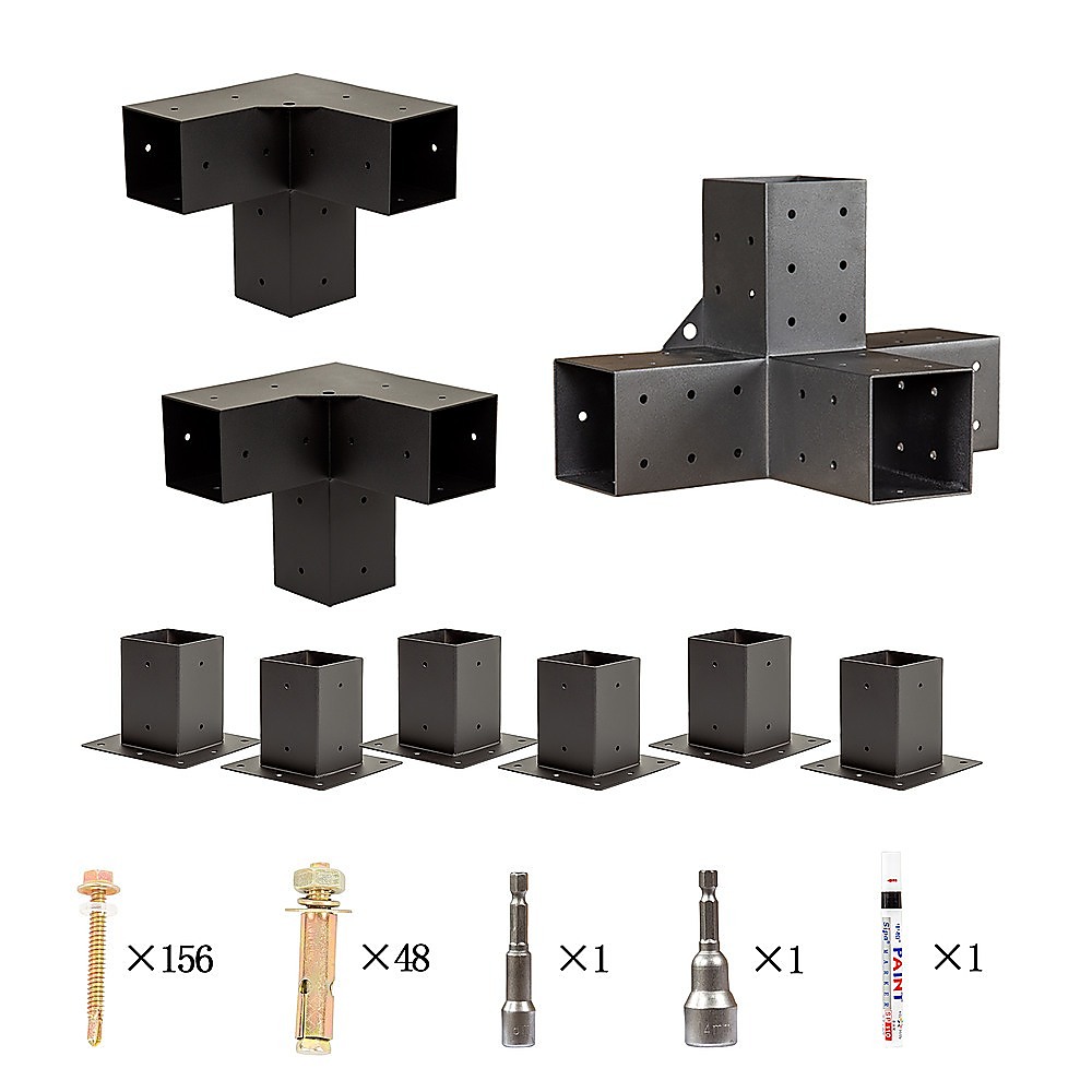 - 6 x Single Pergola Post Base and Wall Mount Brackets