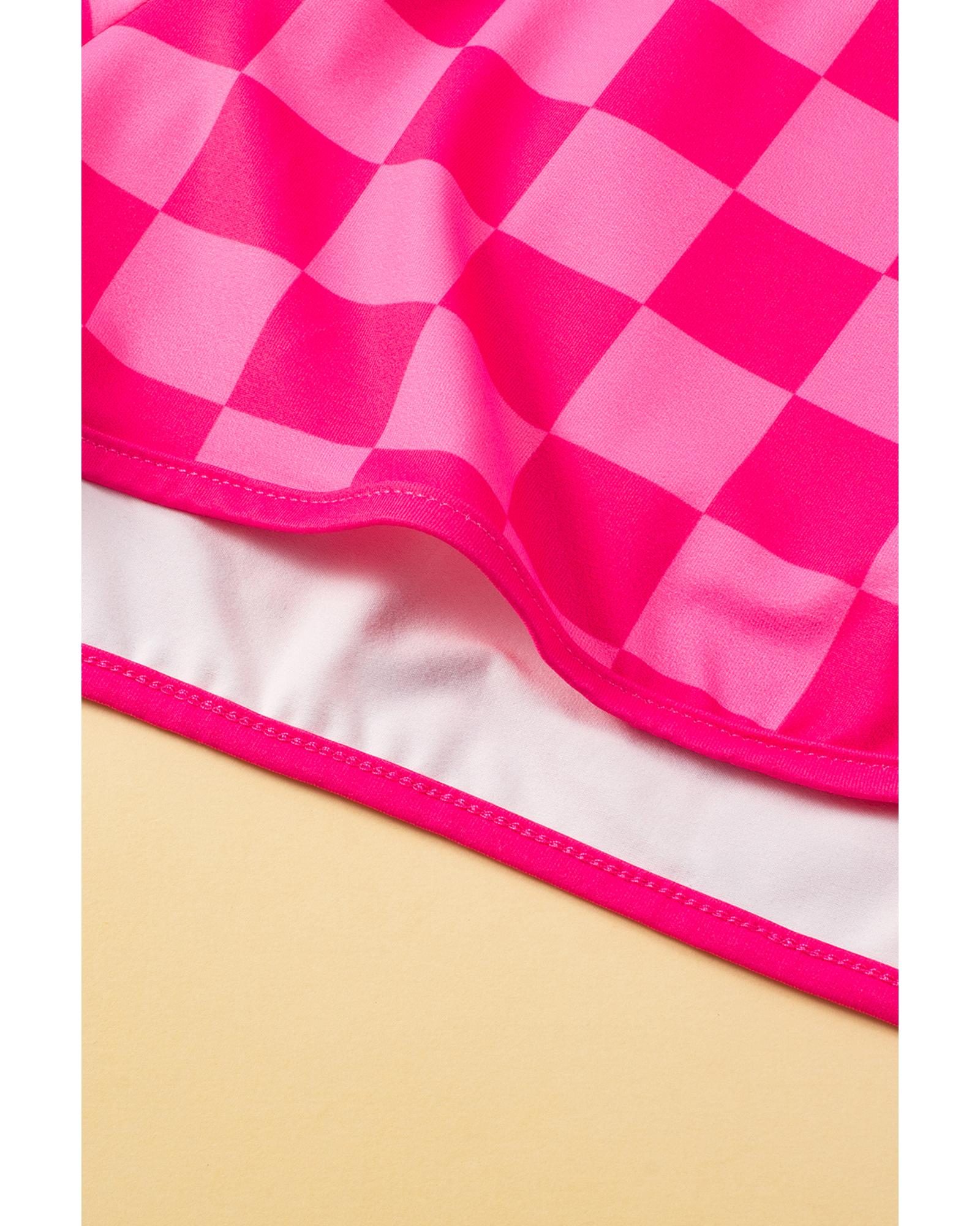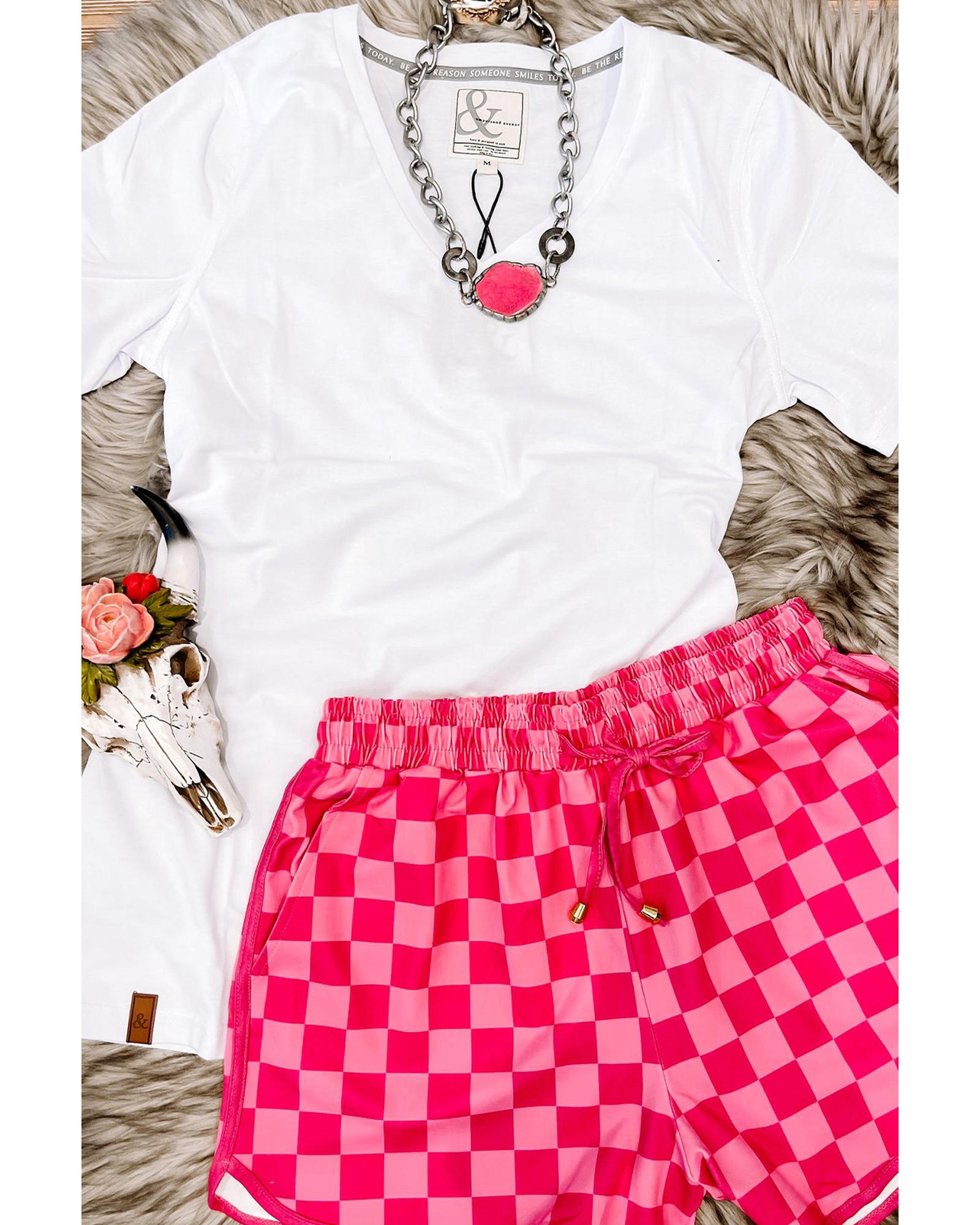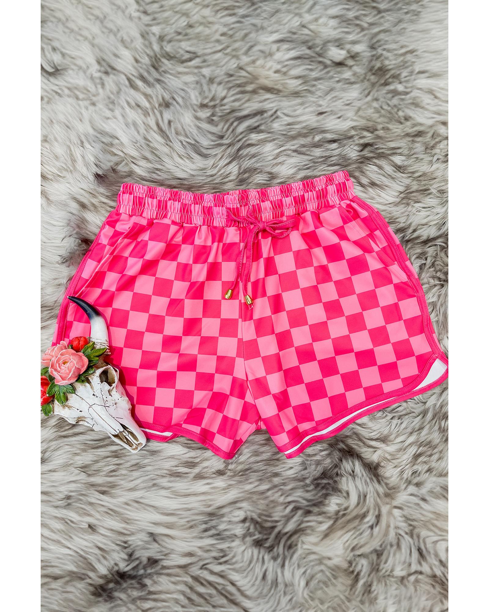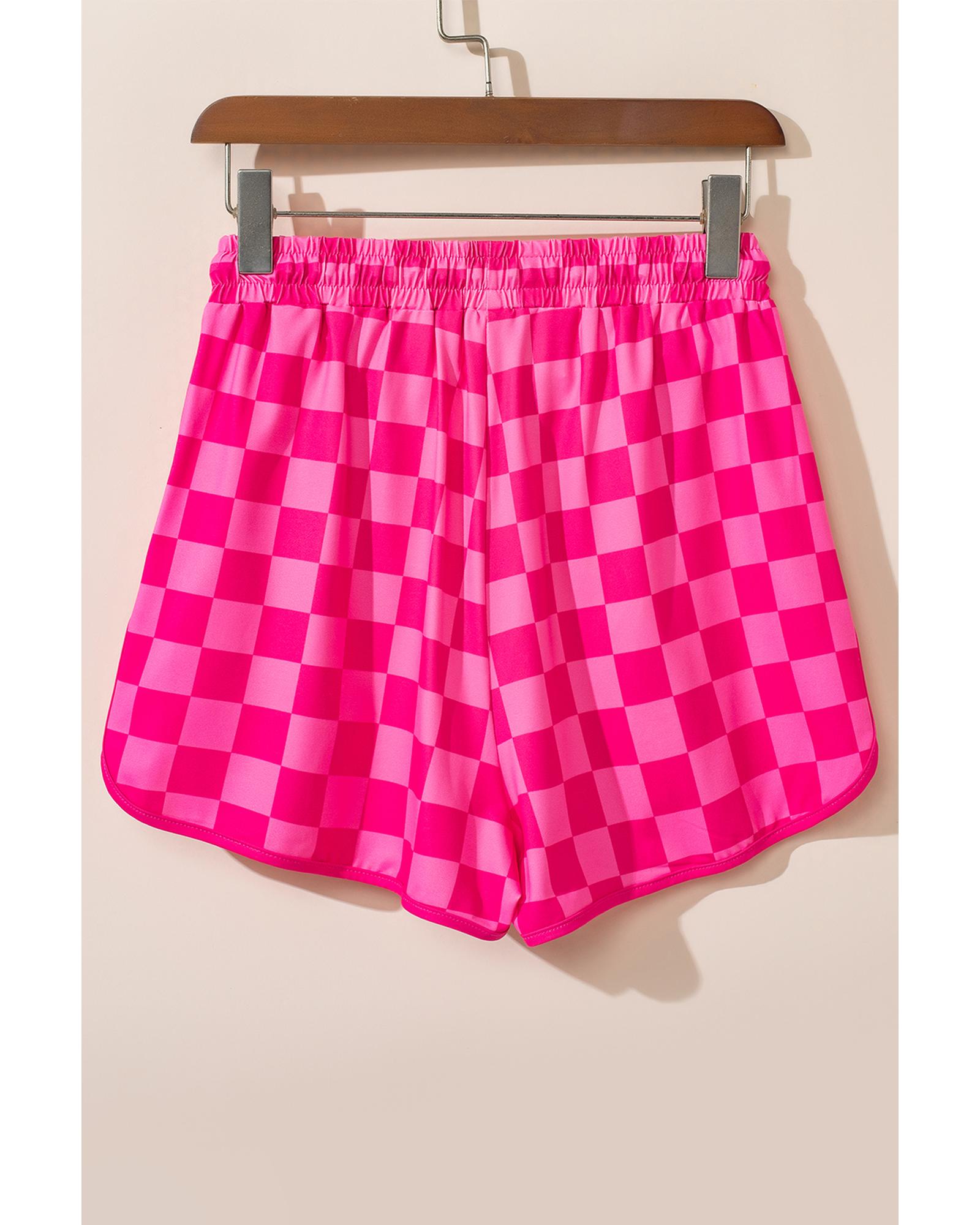 Rose Checkered Drawstring Elastic Waist Casual Shorts – S