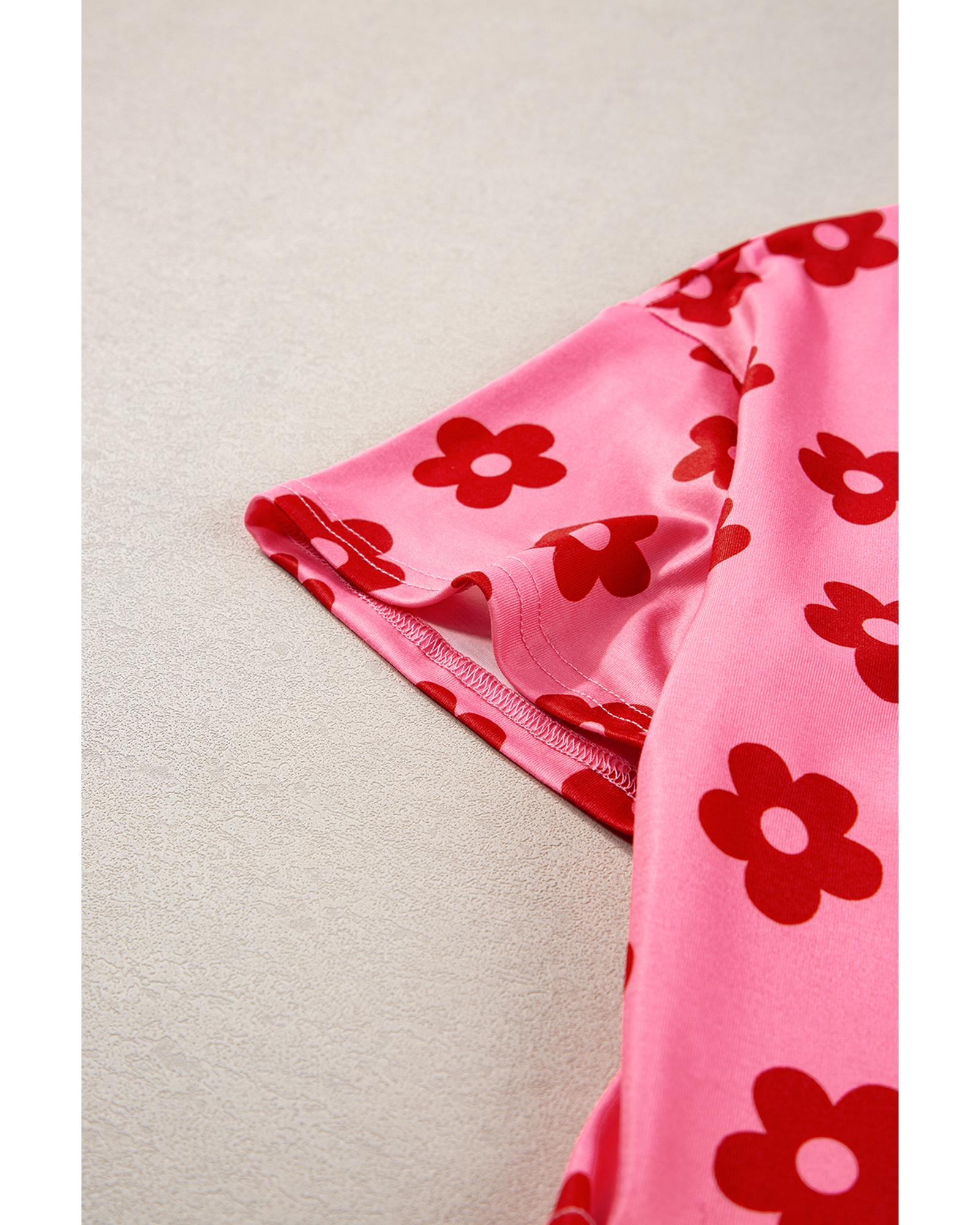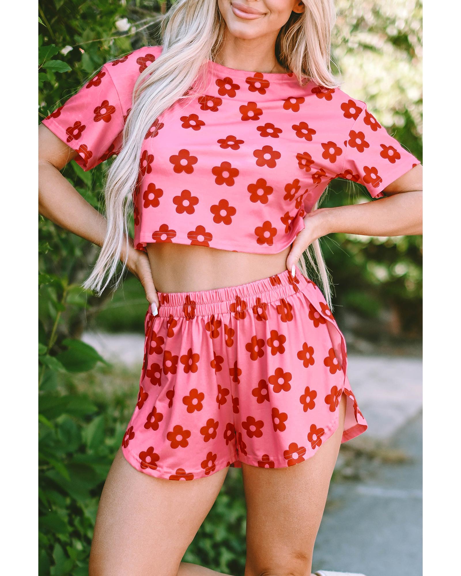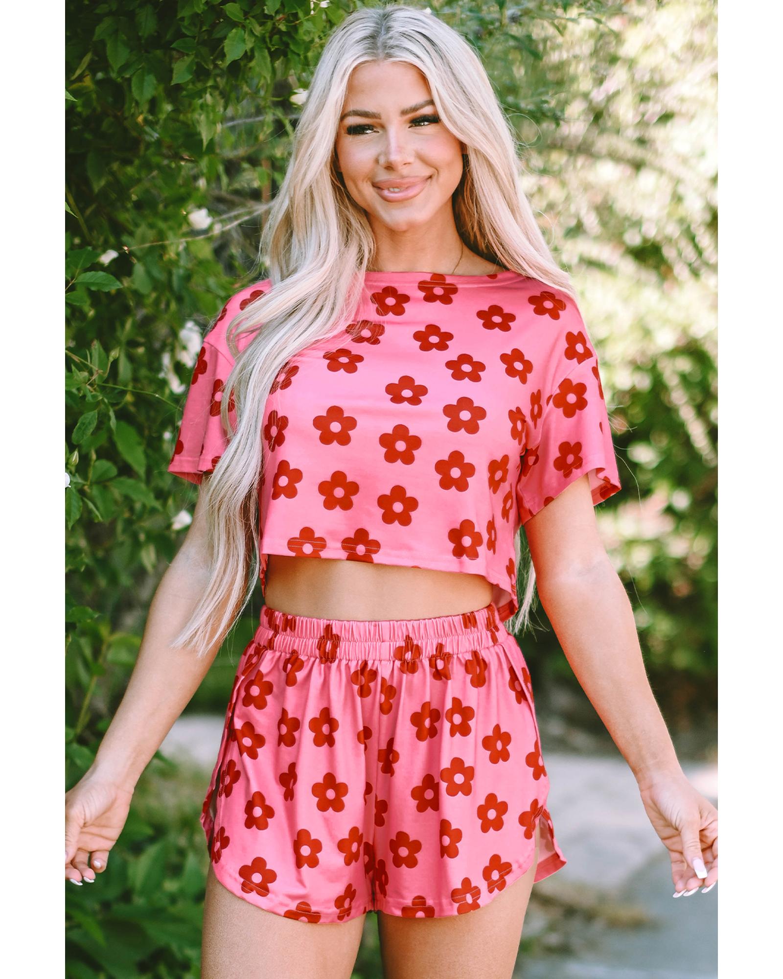 Rose Floral Print Crop Tee and Shorts Lounge Set – L