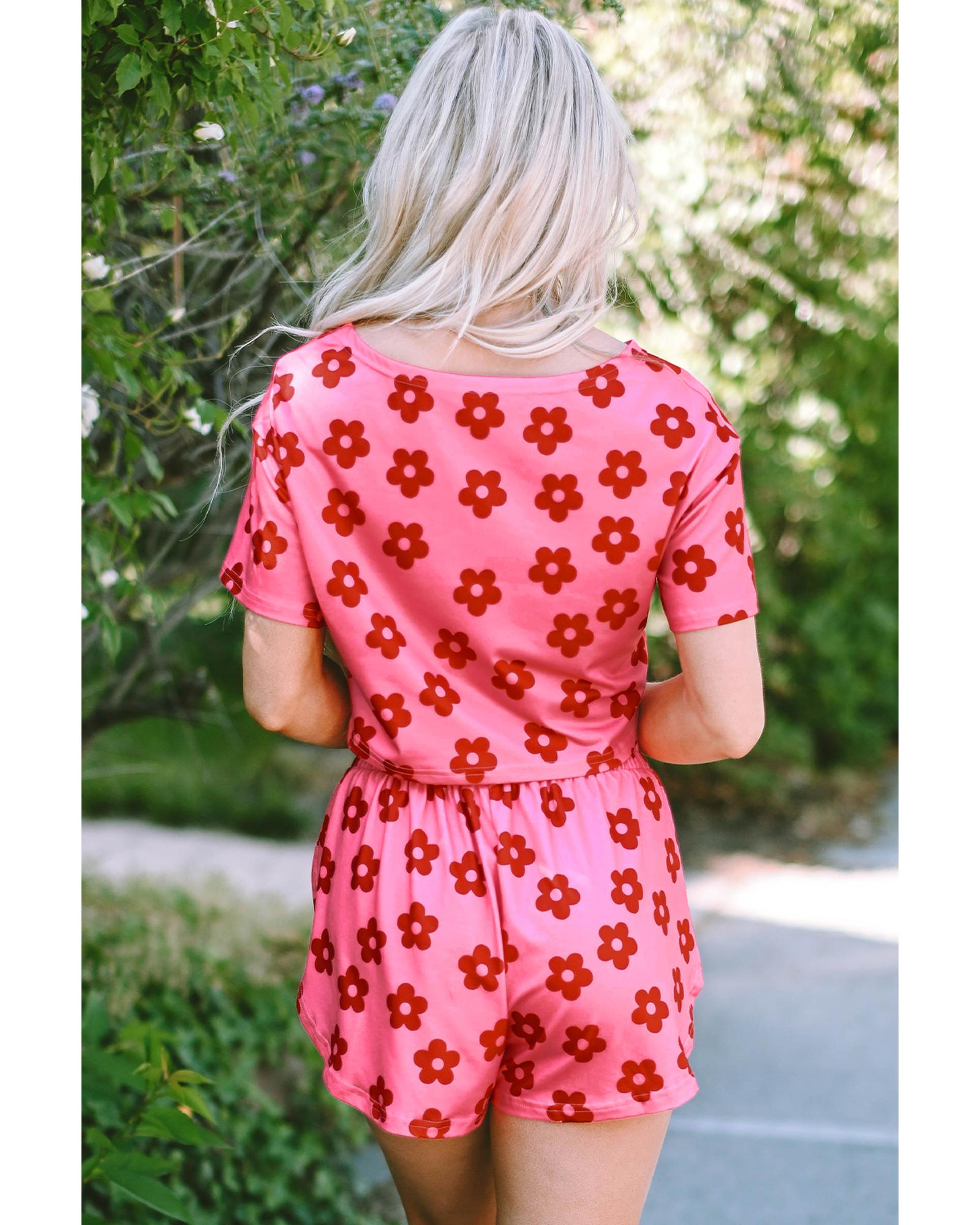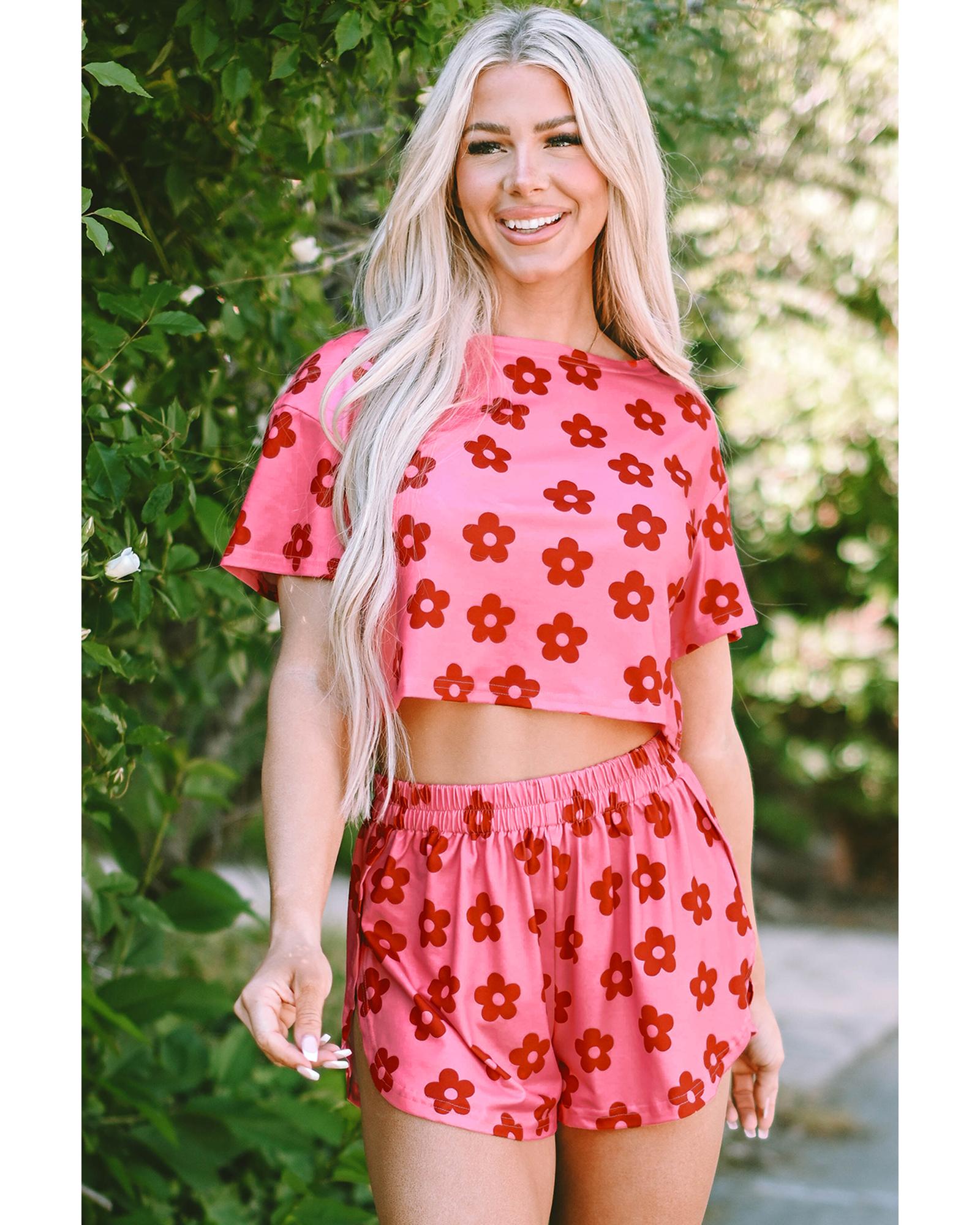 Rose Floral Print Crop Tee and Shorts Lounge Set – XL