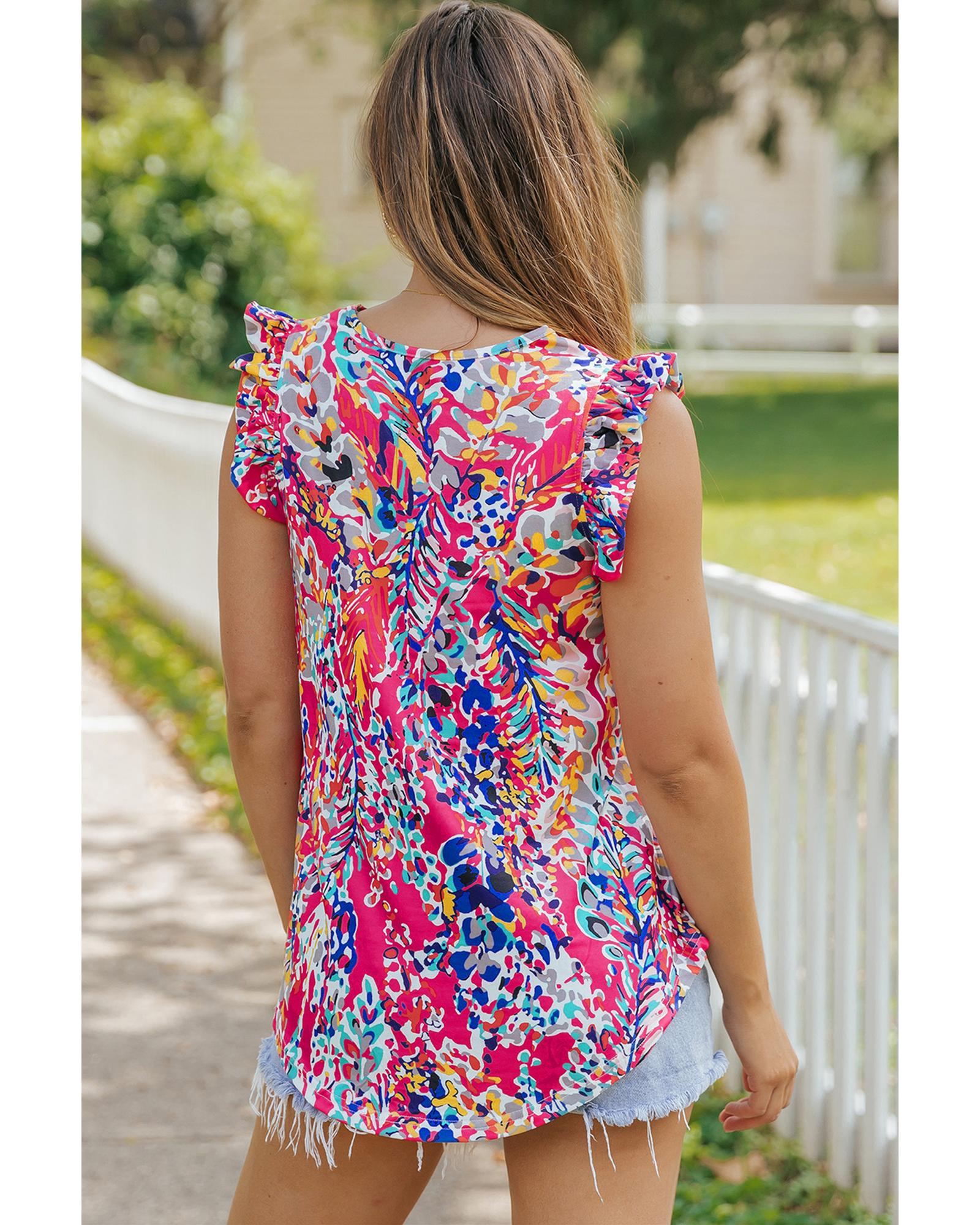- Gorgeous tank top featuring a blooming floral print and flattering ruffle sleeves