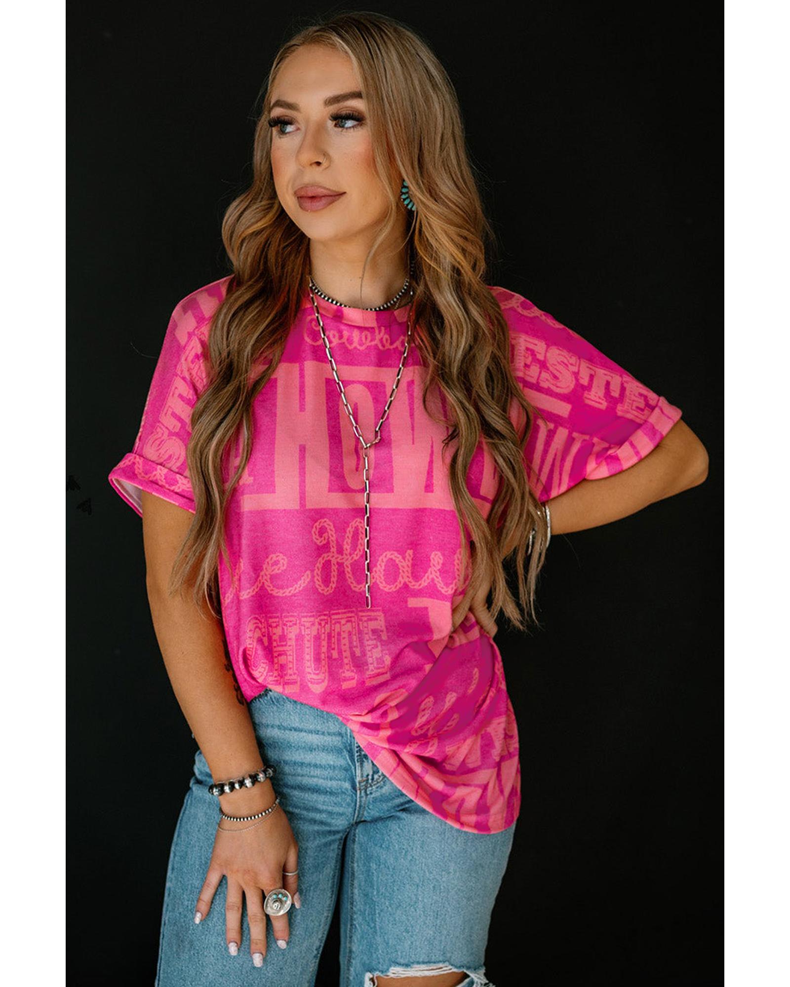Rose Howdy Cowboy Letter Printed Western Fashion Tee – L