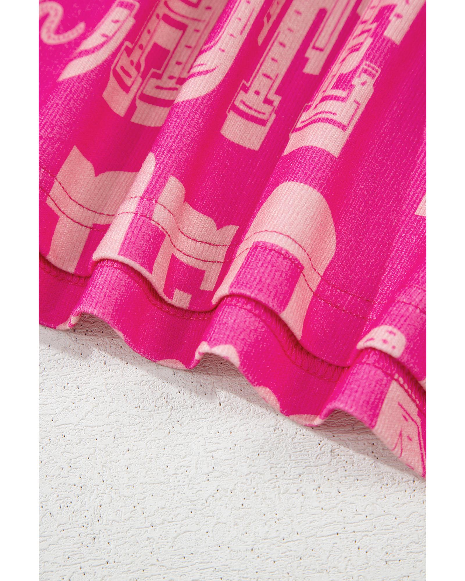 Rose Howdy Cowboy Letter Printed Western Fashion Tee – S
