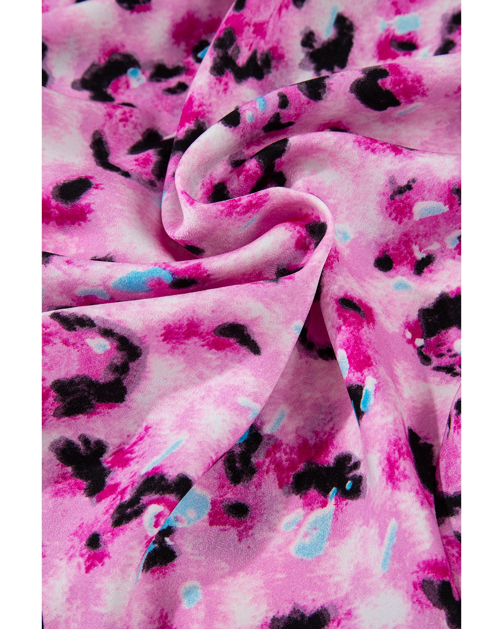 Rose Leopard Print Buttoned Front 3/4 Sleeve Tiered Ruffled Hem Dress – L