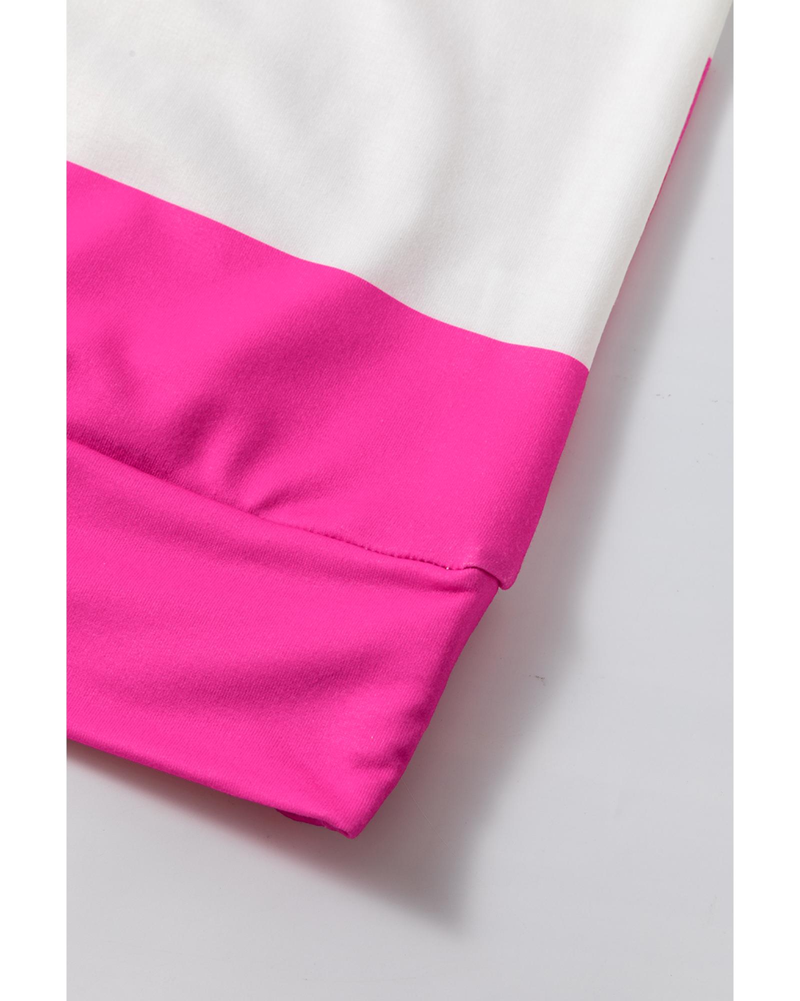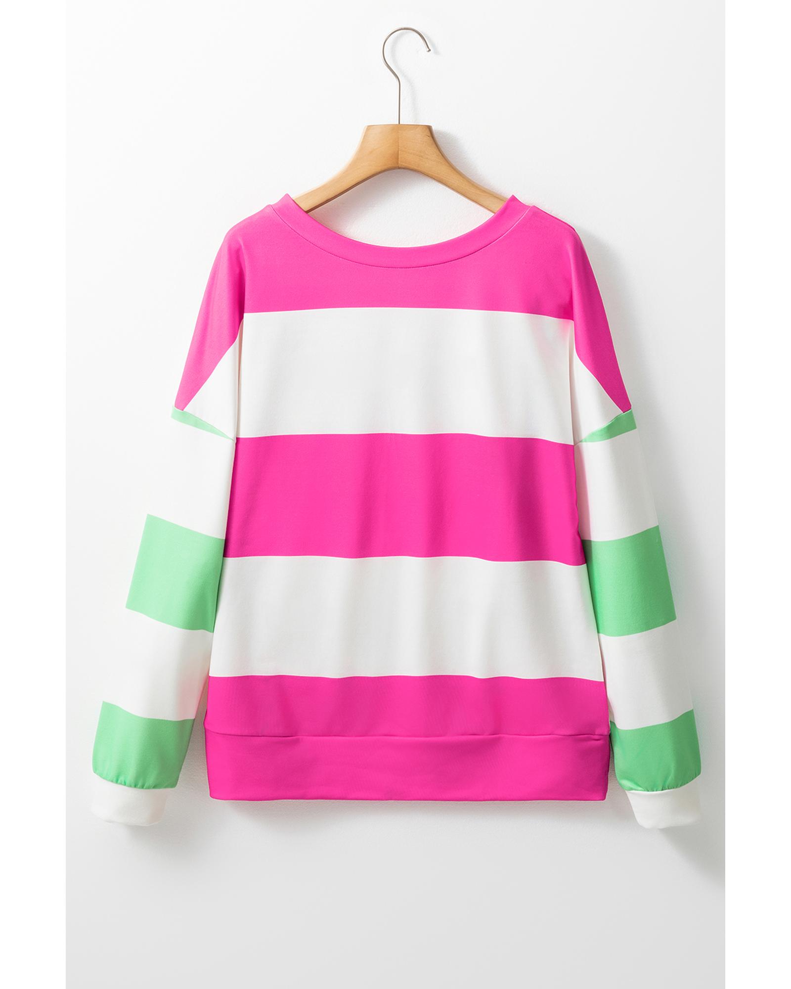 Rose Red Colorblock Striped Drop Shoulder Long Sleeve Top – M