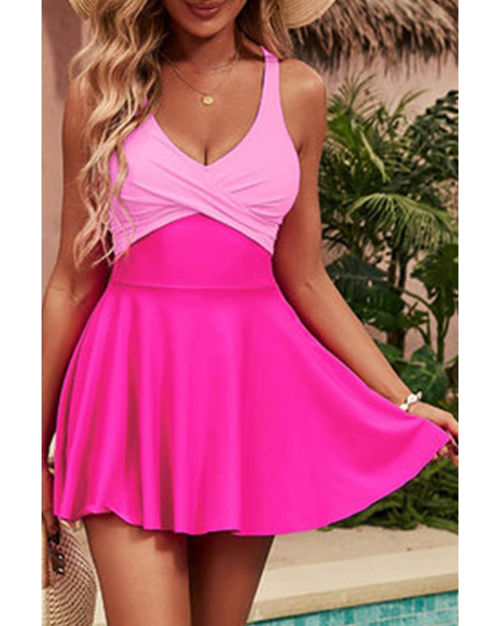 Rose Red Crisscross Straps Tie Back Flared One Piece Swimsuit – M