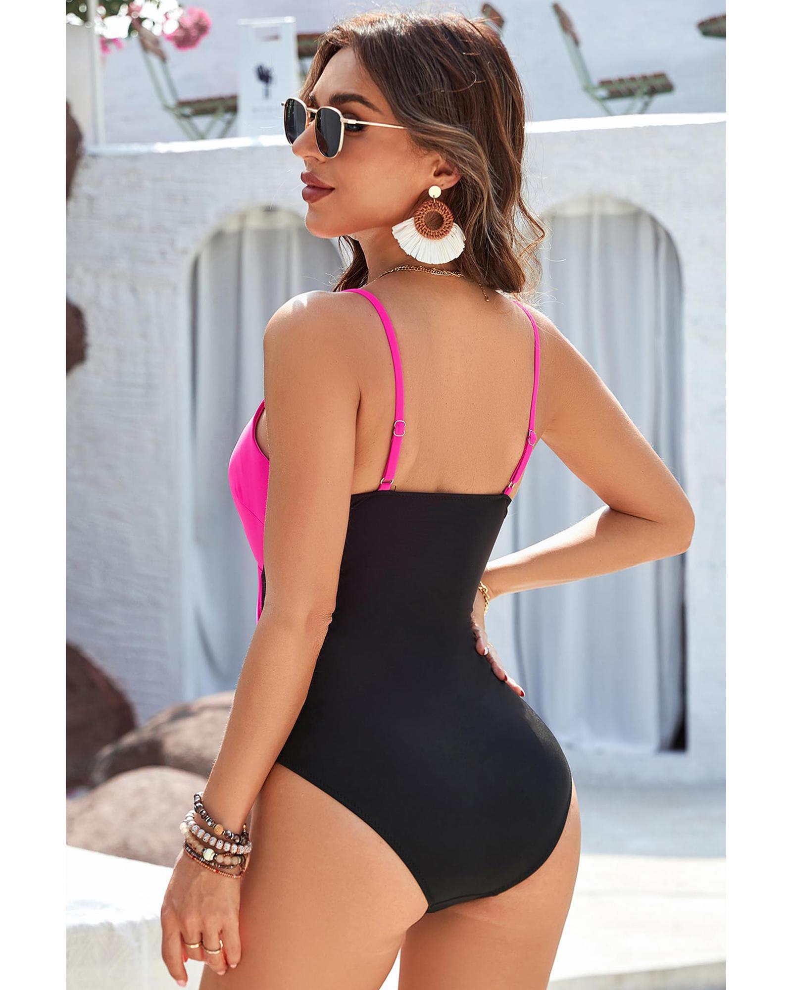 Rose Red Crossover Colorblock Cutout One Piece Swimsuit – S