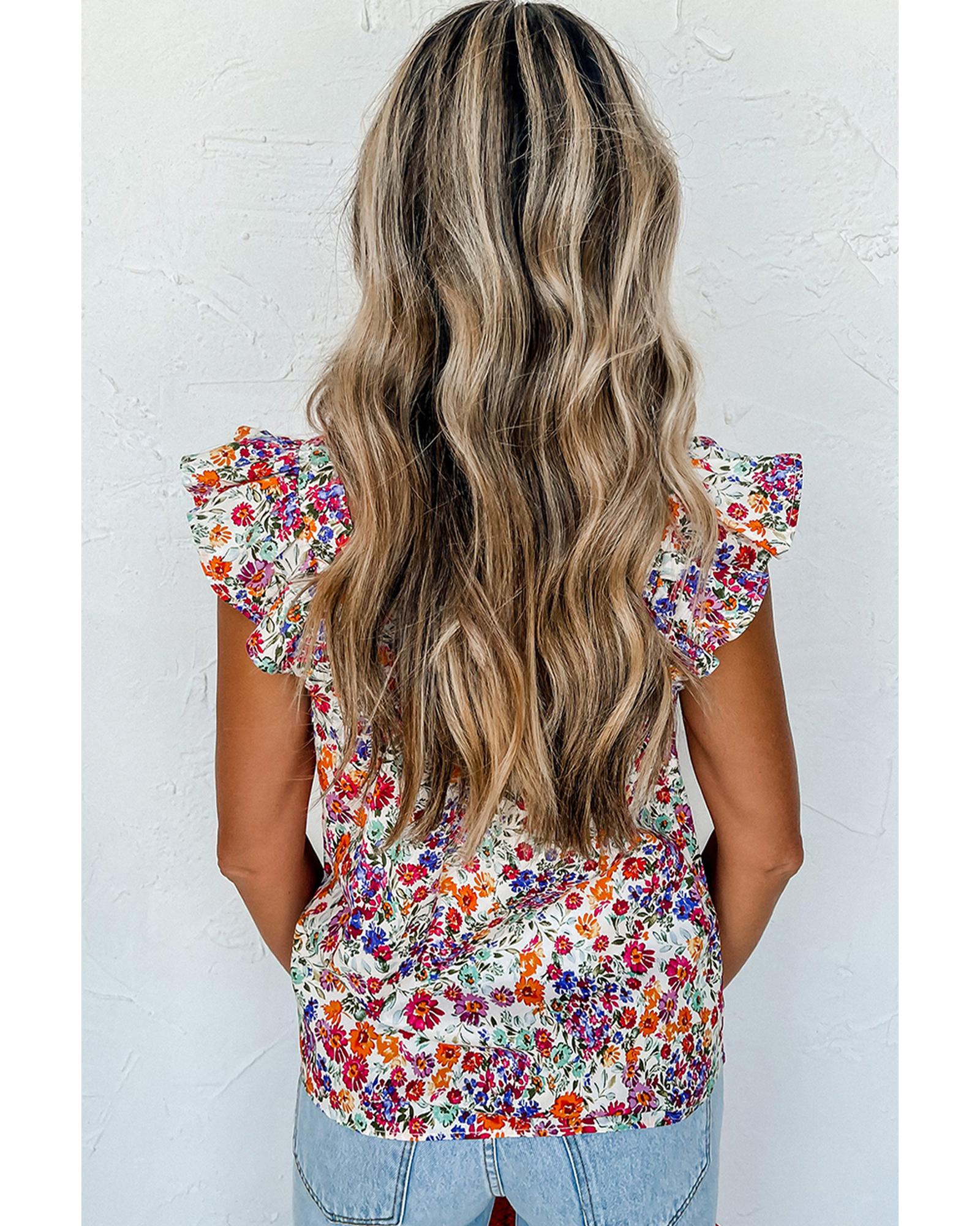Rose Red Floral Square Neck Flutter Tank Top – L