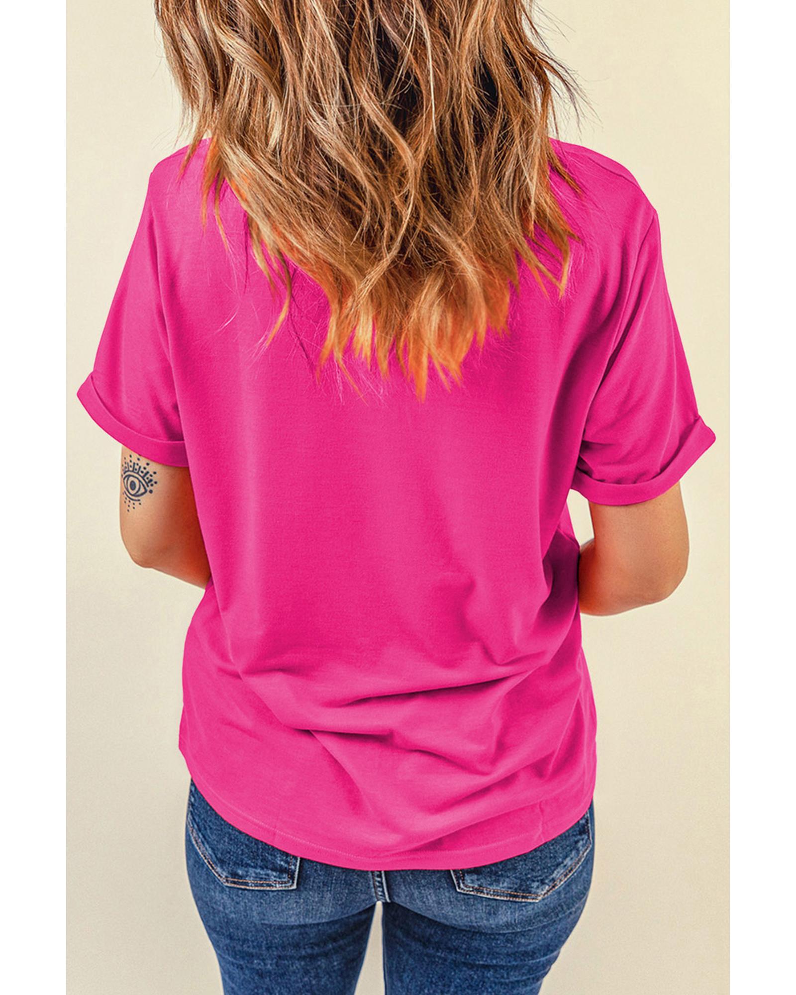 - Rose Red Glitter He is Risen Cross Printed Crewneck Tee
