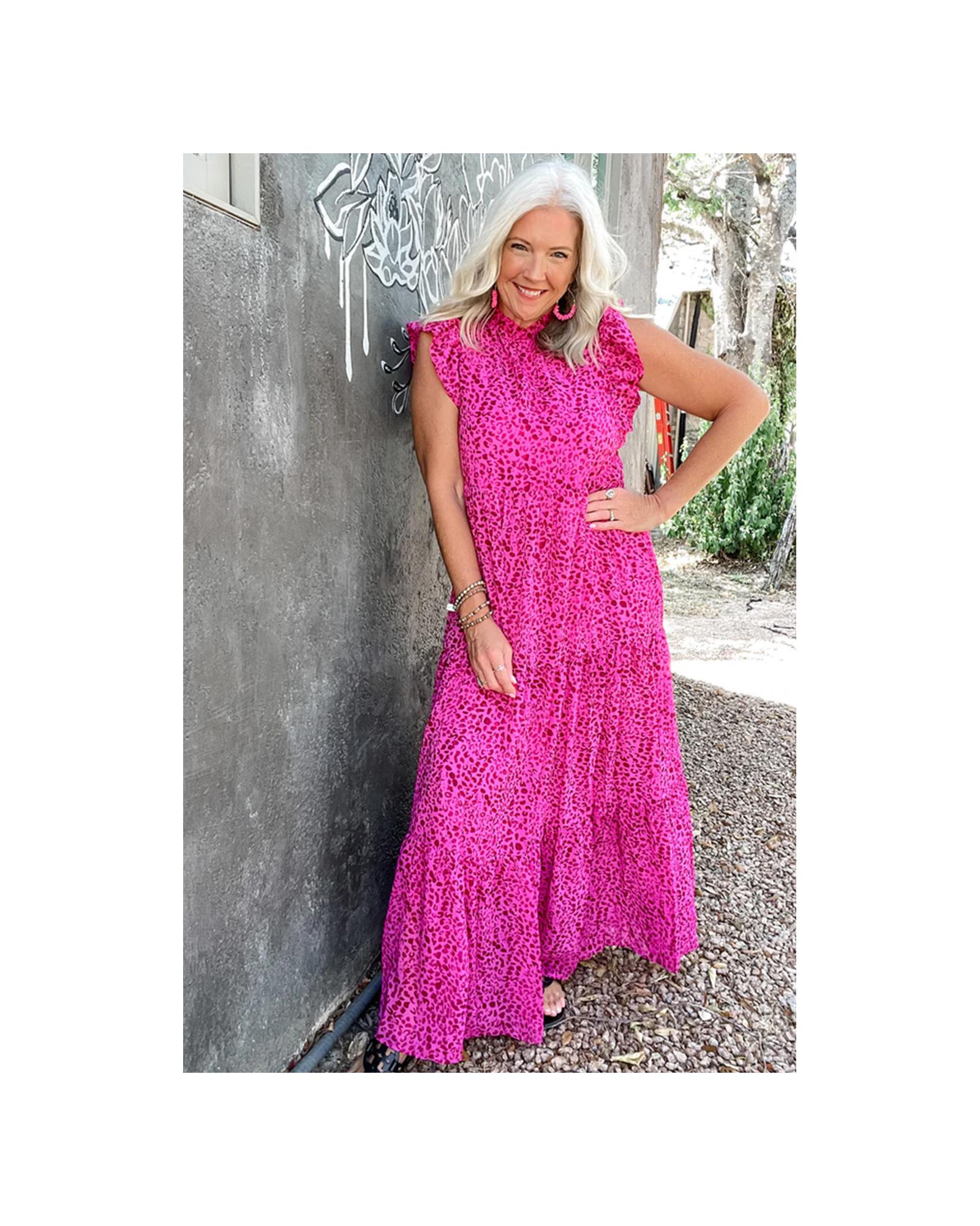 Rose Red Leopard Print Ruffled Trim Tiered Maxi Dress – M