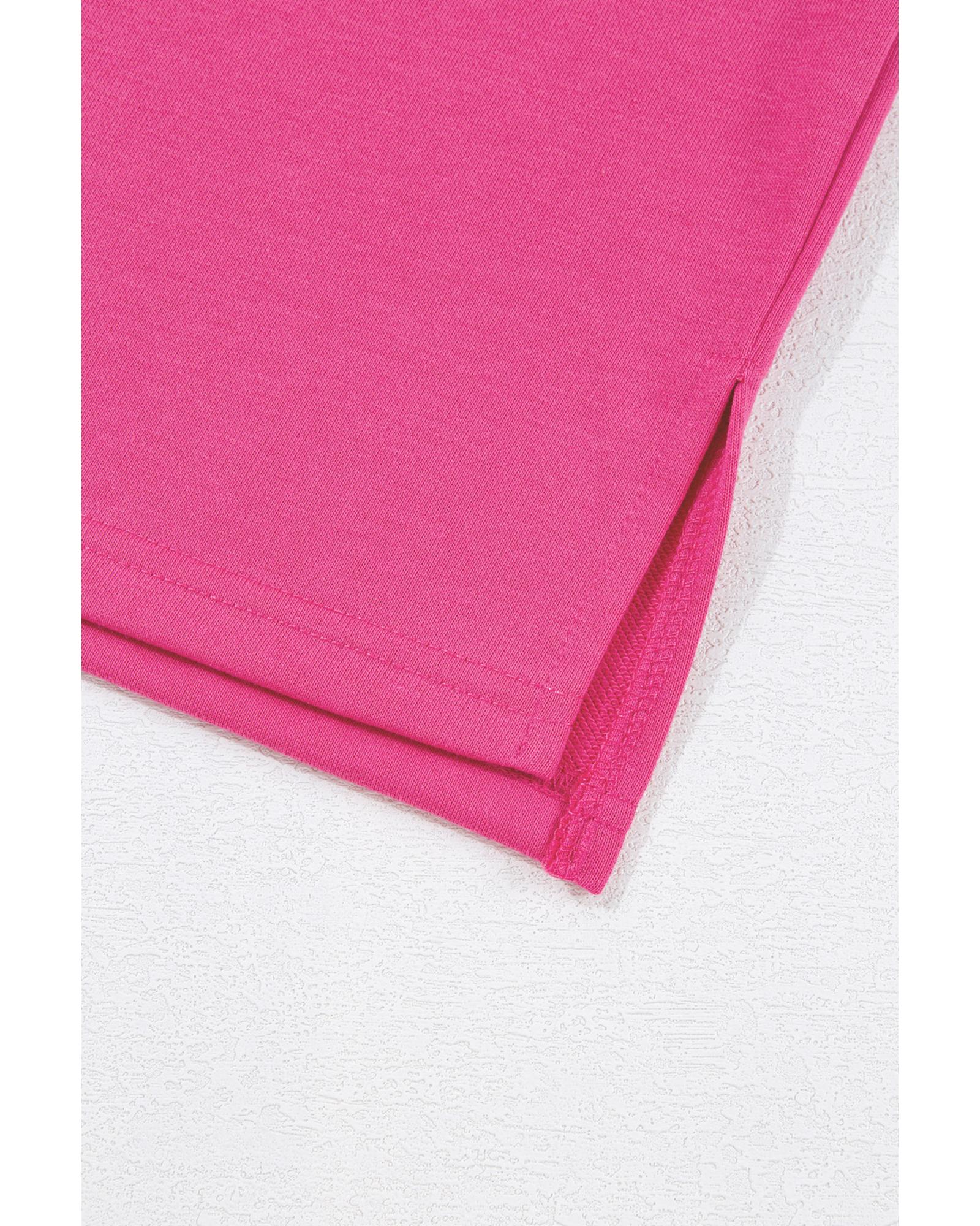 Rose Red Plus Size Printed Patchwork Sleeve Split Sweatshirt - 2X