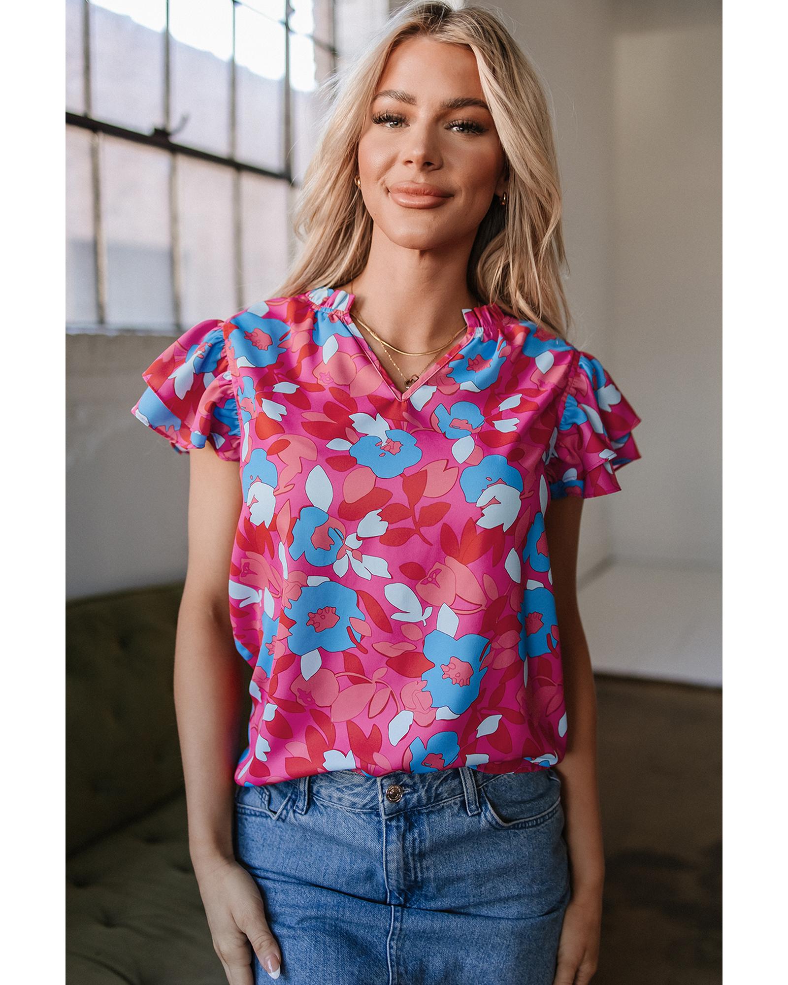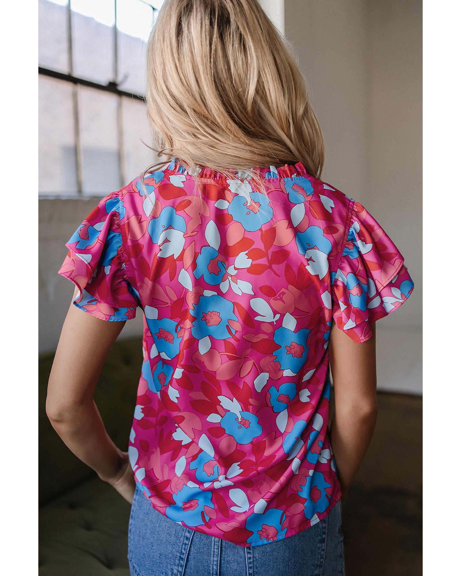 Rose Red Ruffled Sleeve Floral Blouse – XL