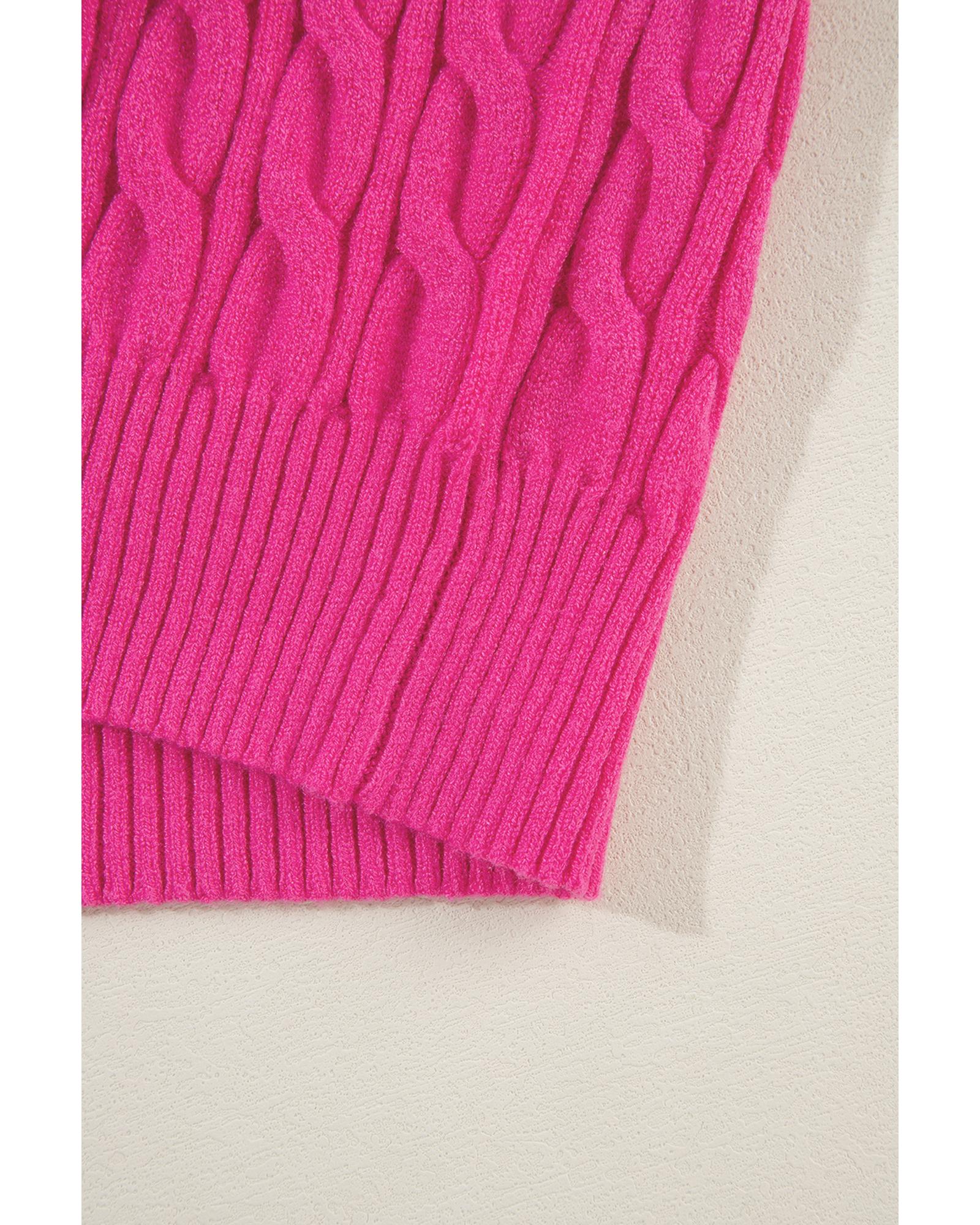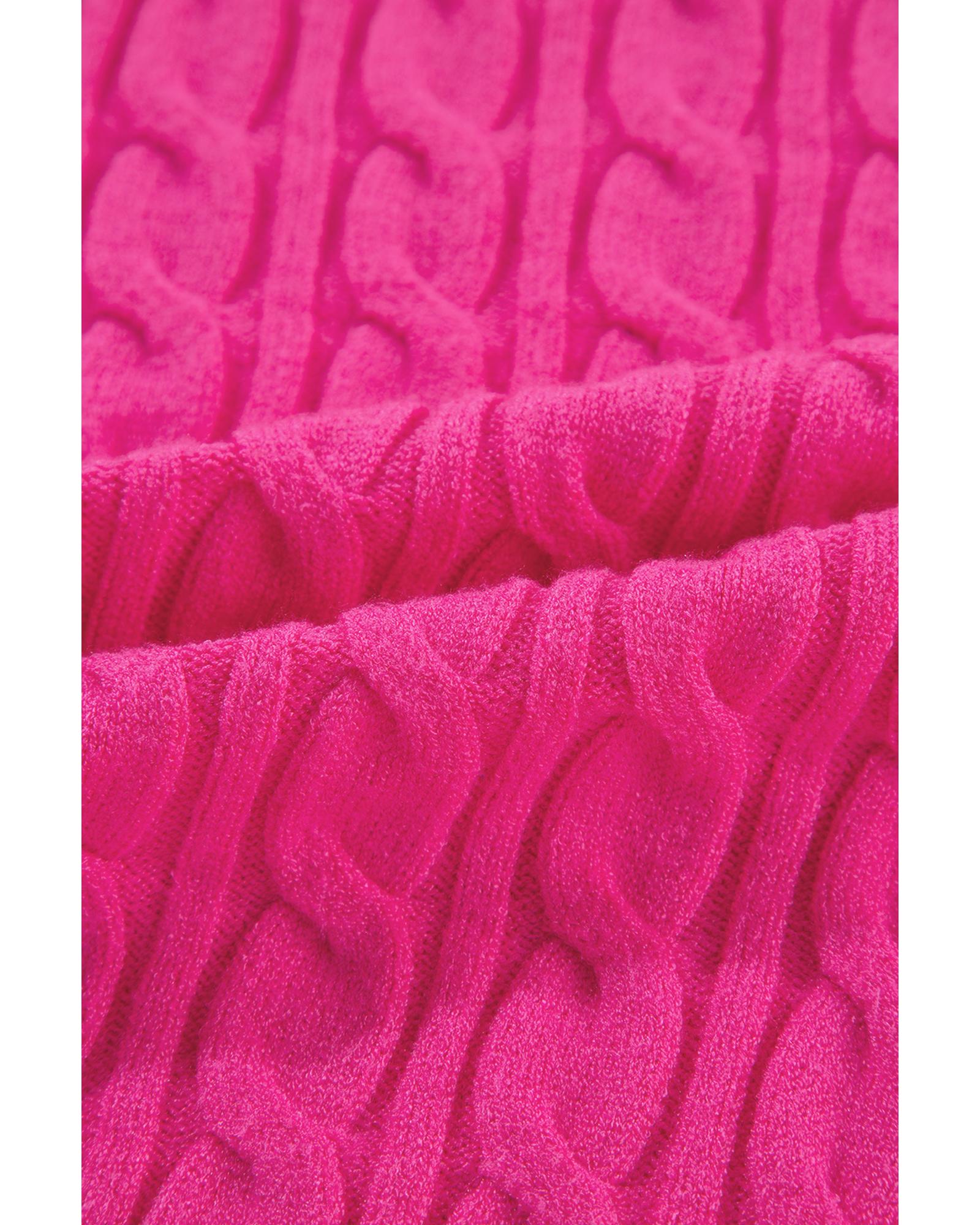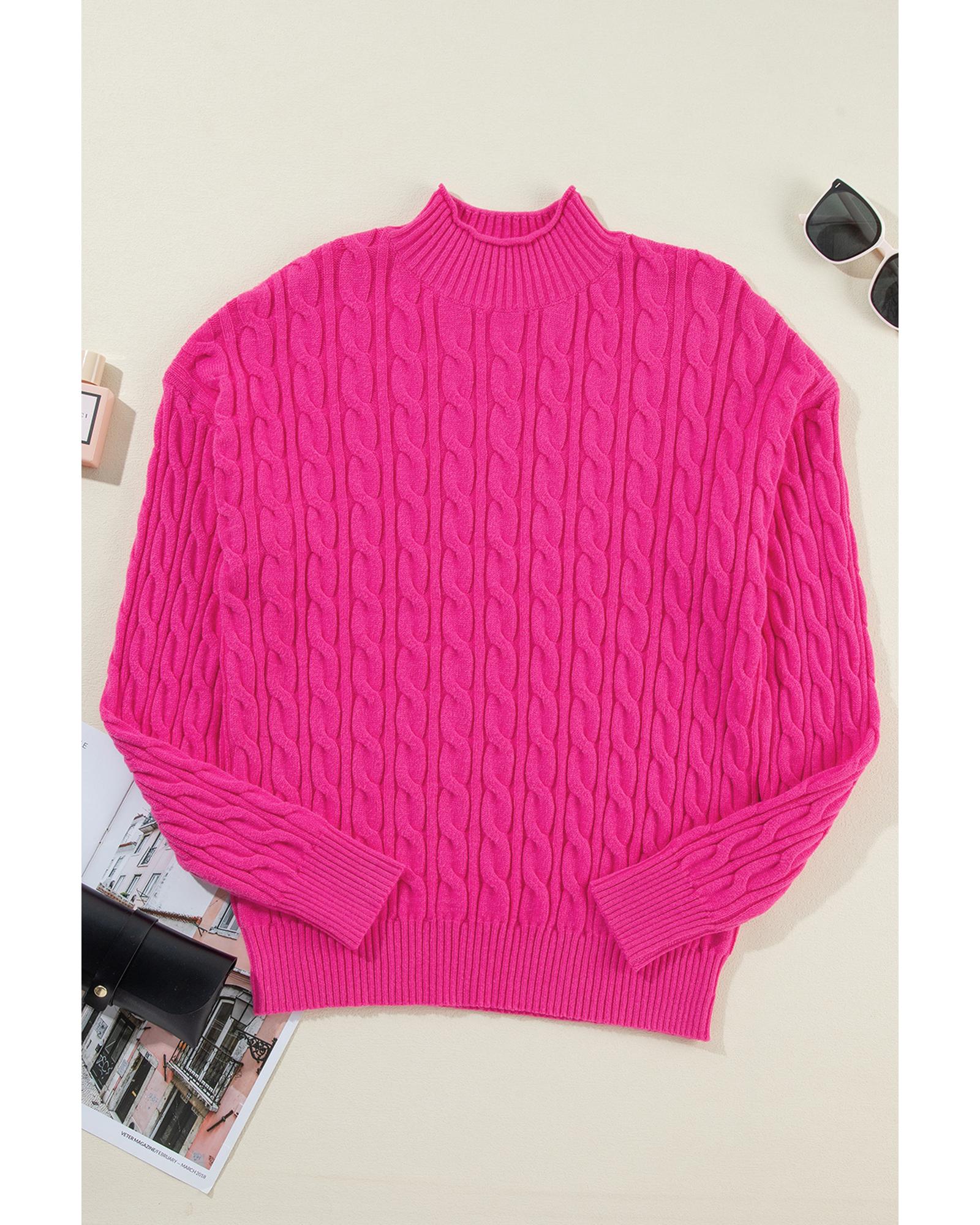 Rose Red Solid Cable Knit High Neck Drop Shoulder Sweater – XL