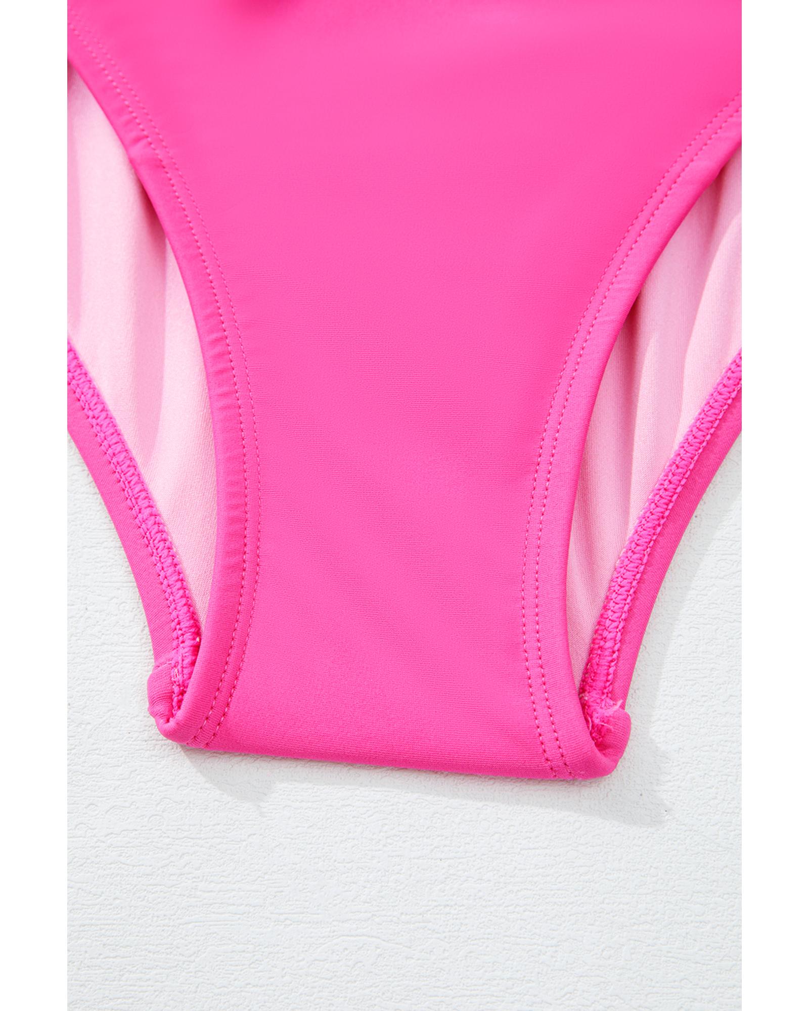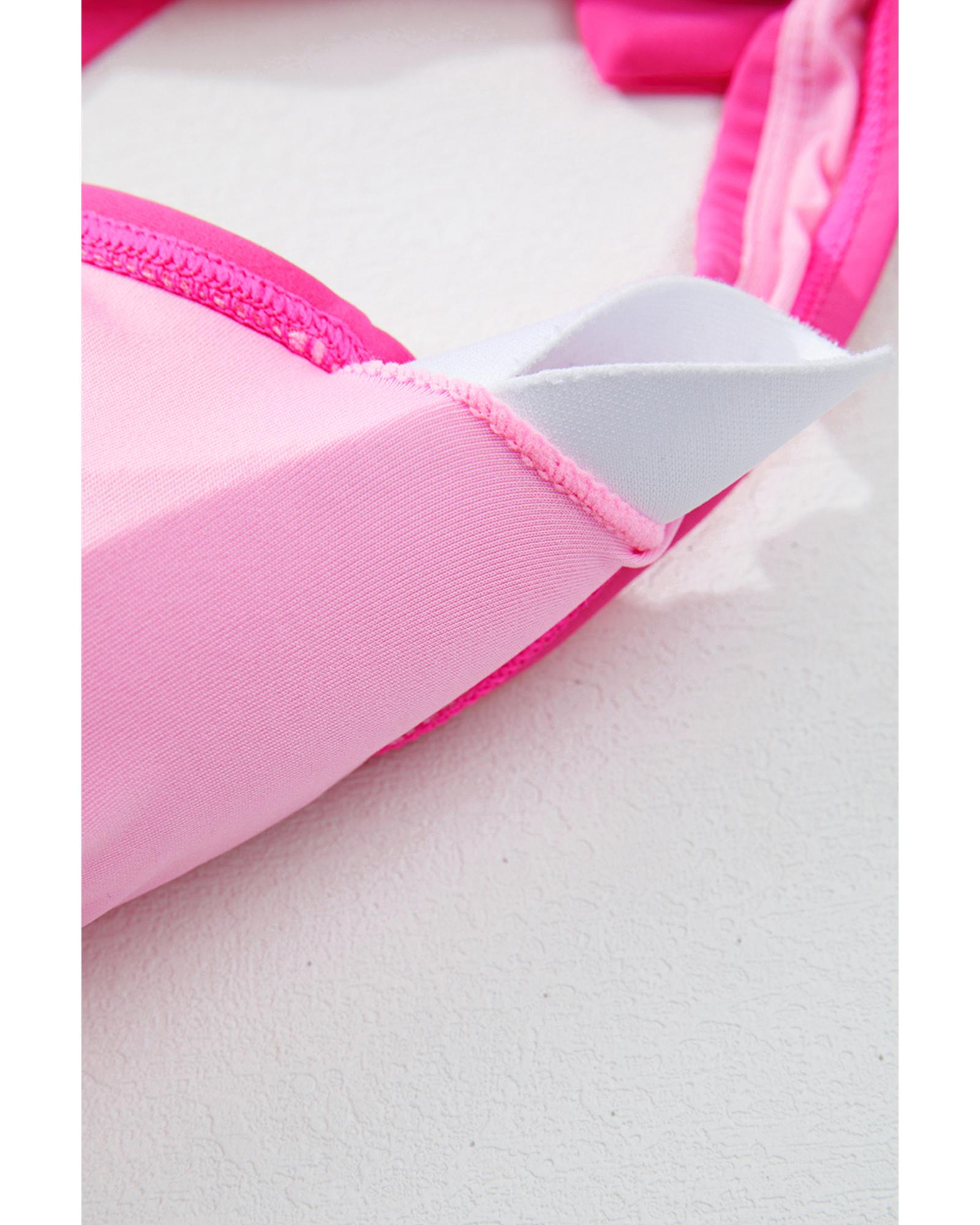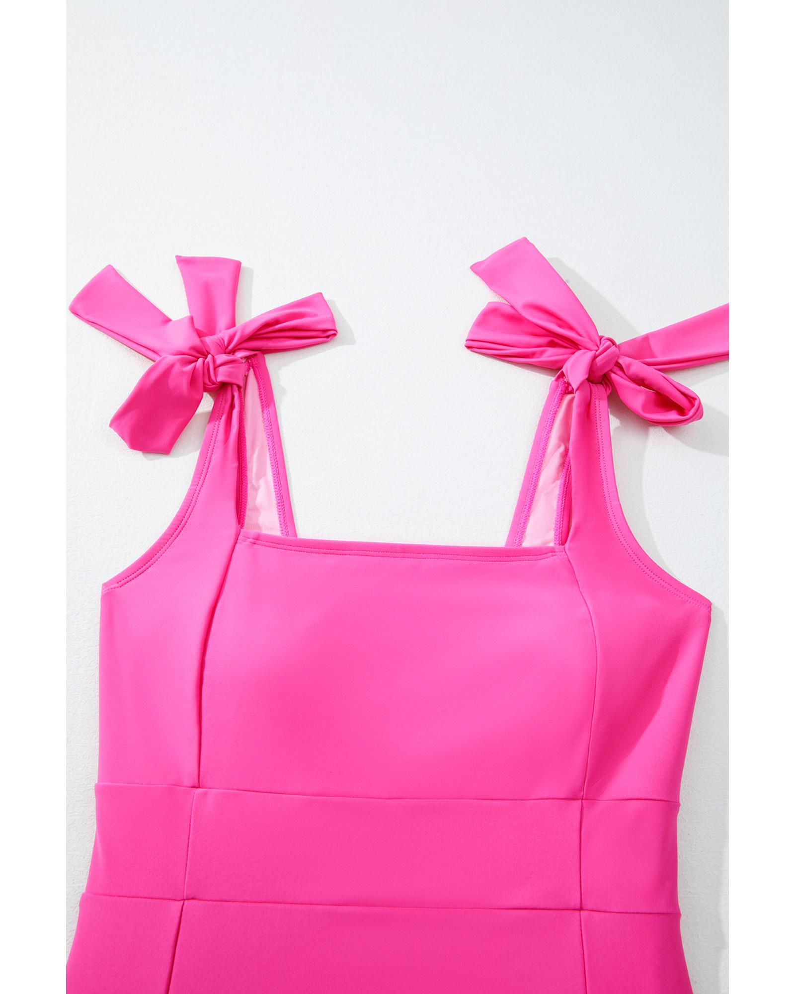 - Rose Red Square Neck Knotted Shoulder Open Back One Piece Swimsuit