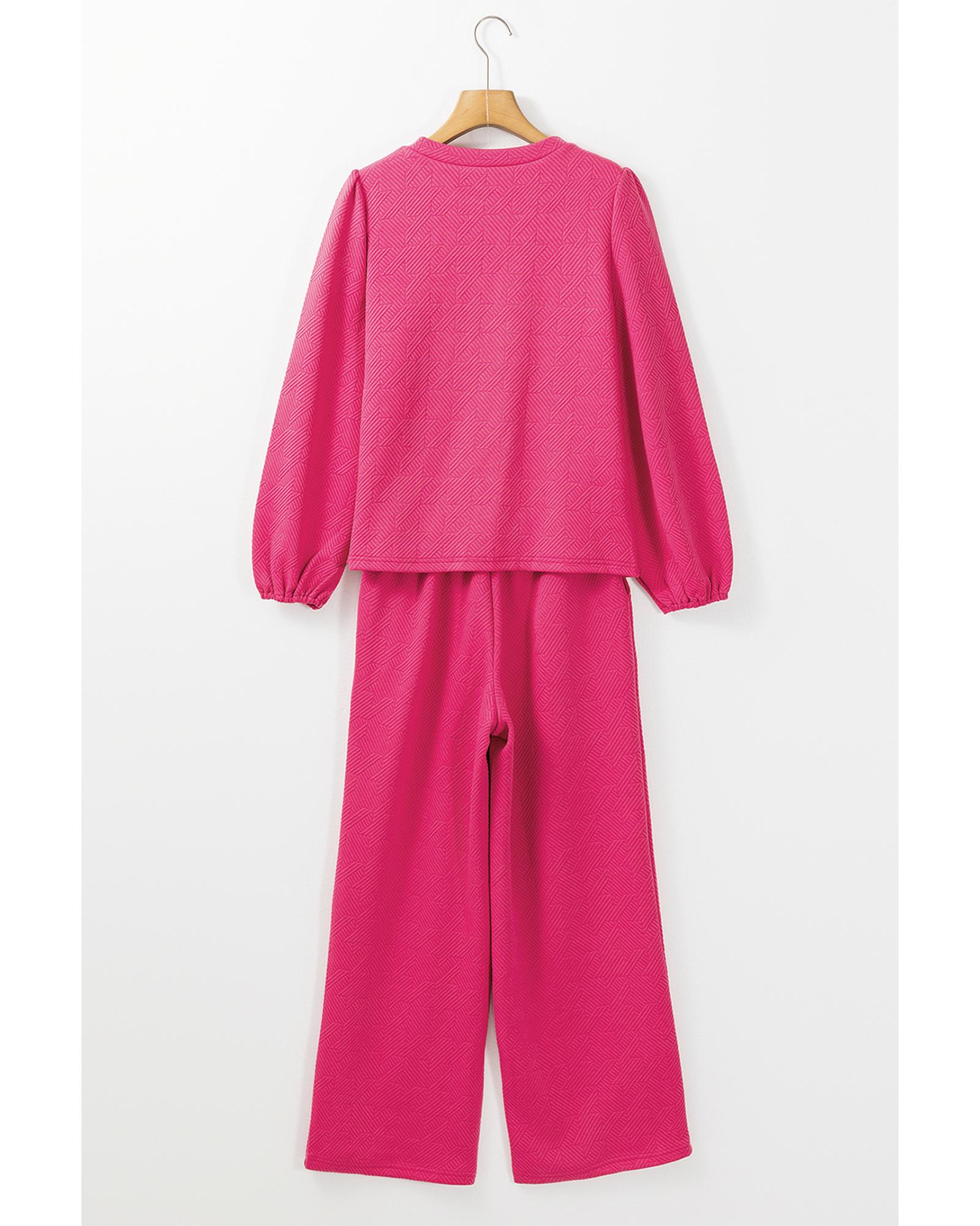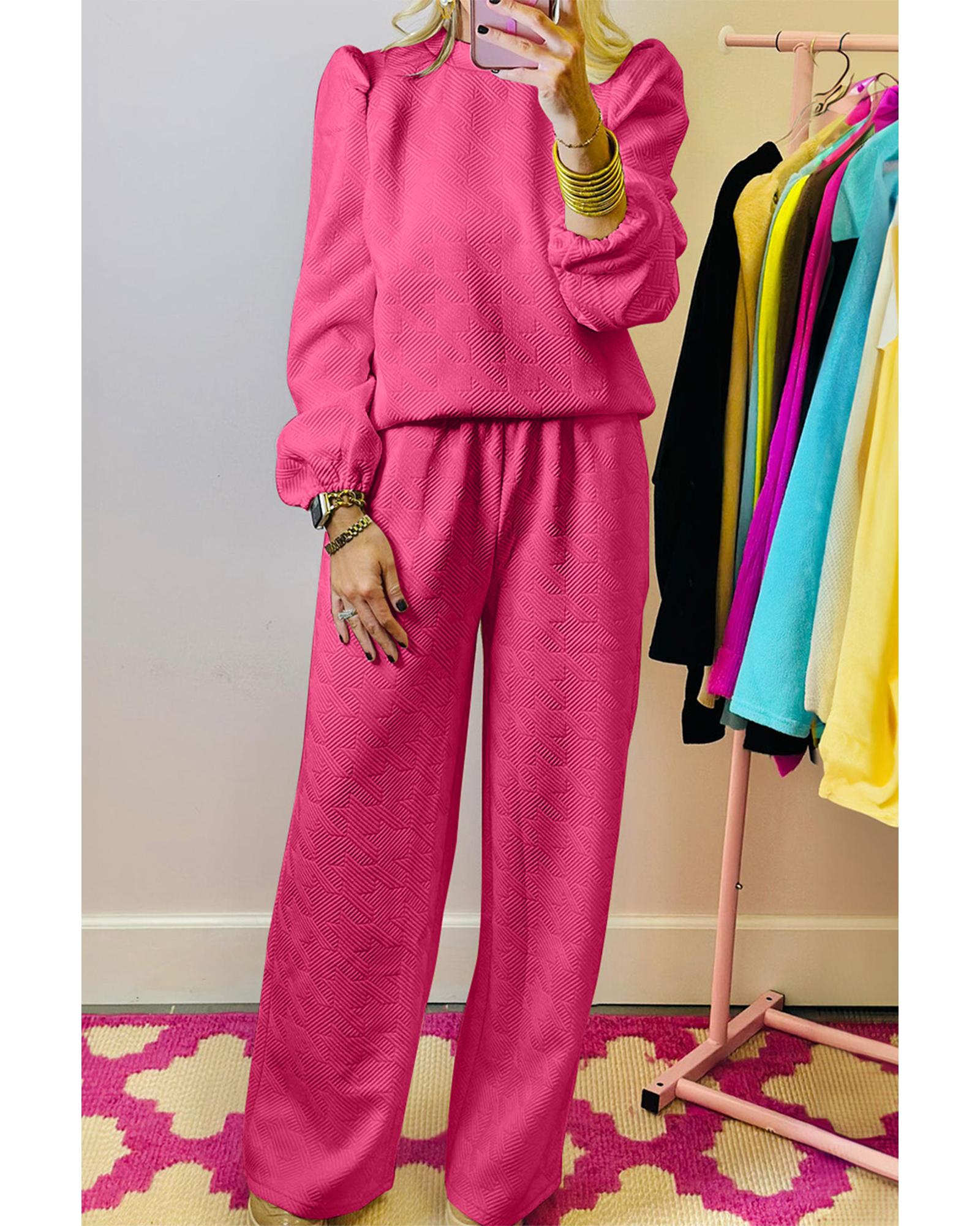 Rose Red Textured Puff Sleeve Top and Pants Set – M