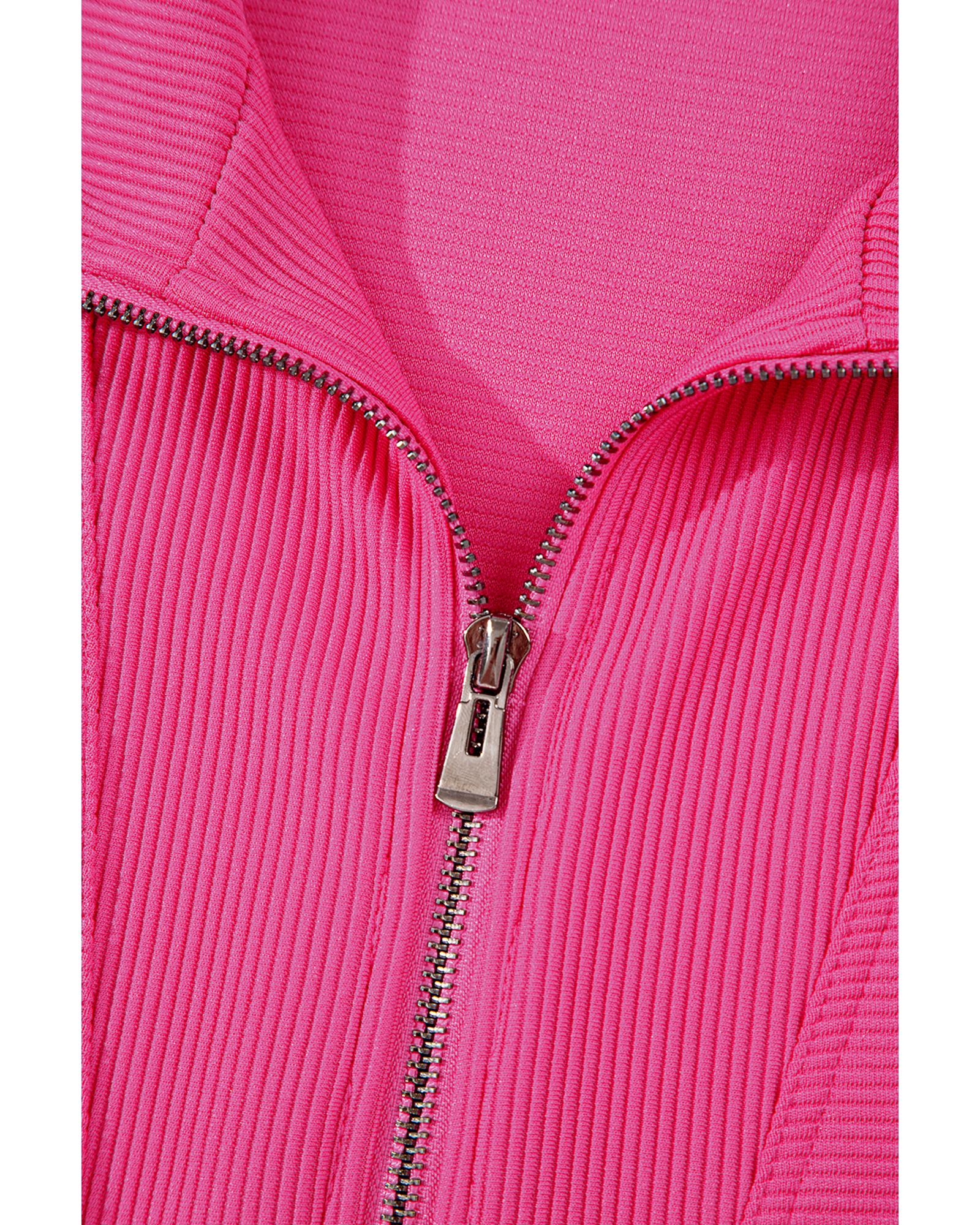 Rose Red Textured Short Sleeve Half Zip Drawstring Waist Romper – XL