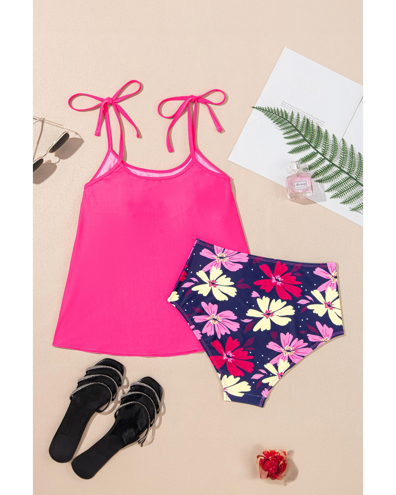 Rose Red Tie Shoulder Floral Print Cute Tankini Set – 2XL