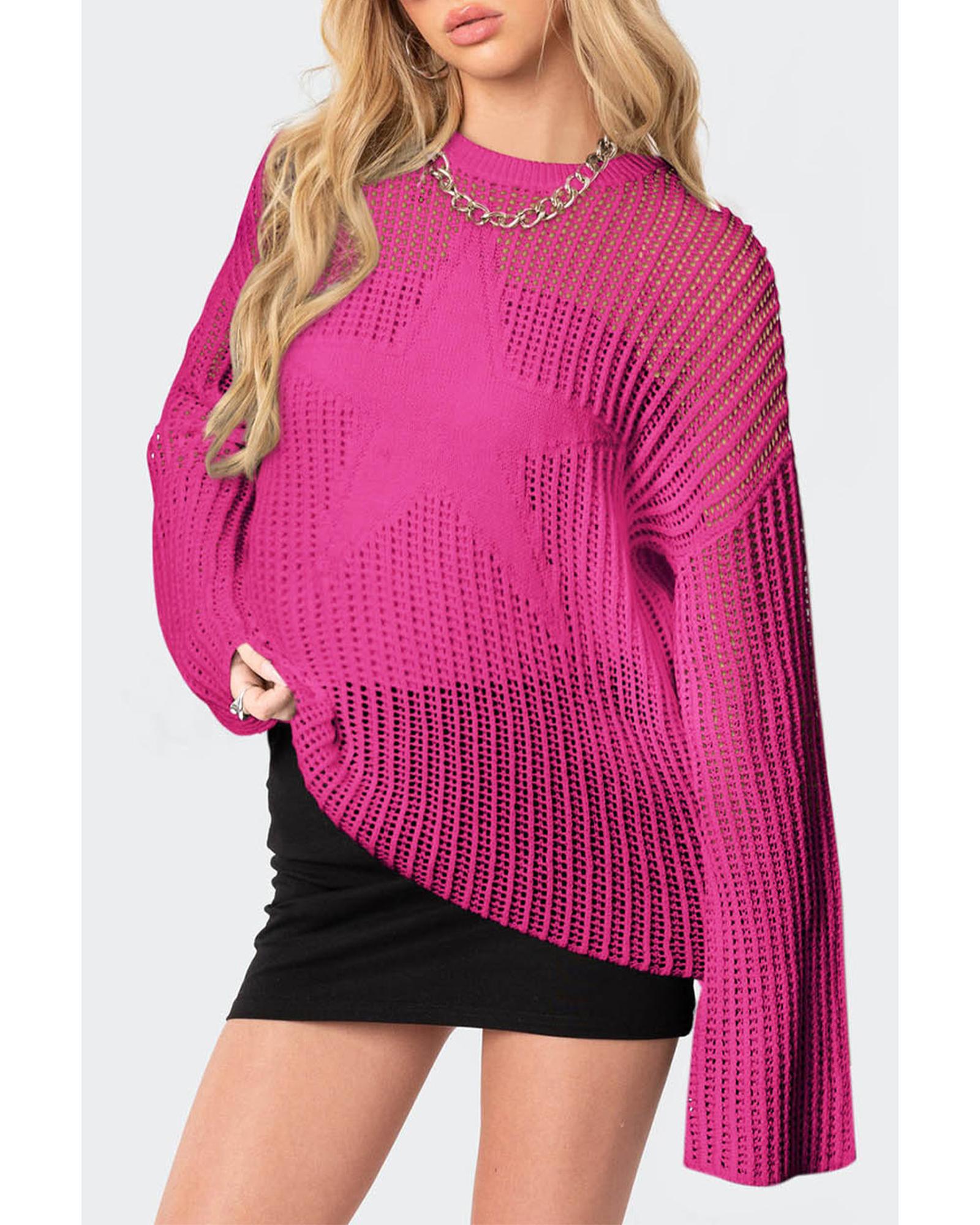 Gold Flame Patch Pocket Ribbed Knit Short Sleeve Sweater - S