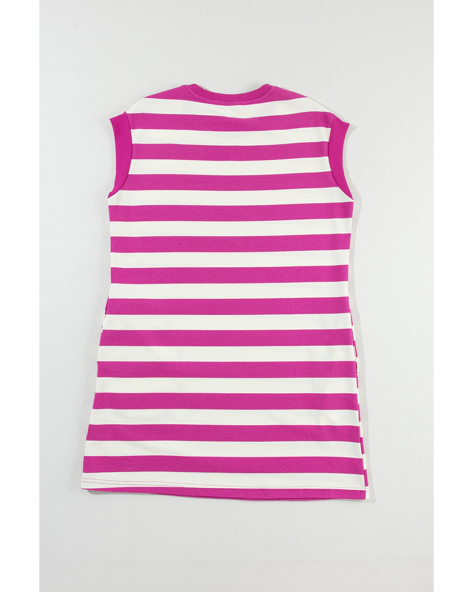 Rose Stripe Cap Sleeve Pocketed Shift T-shirt Dress - M