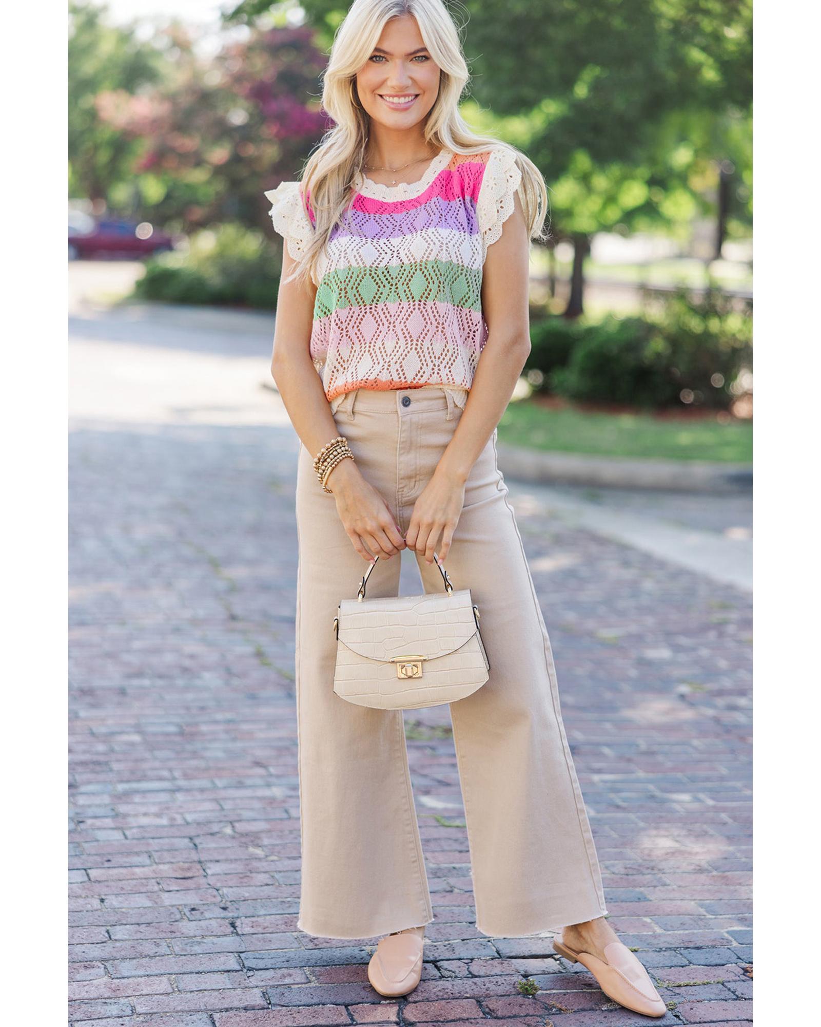 Rose Stripe Colorblock Hollowed Knit Scallop Edge Sweater Vest – M