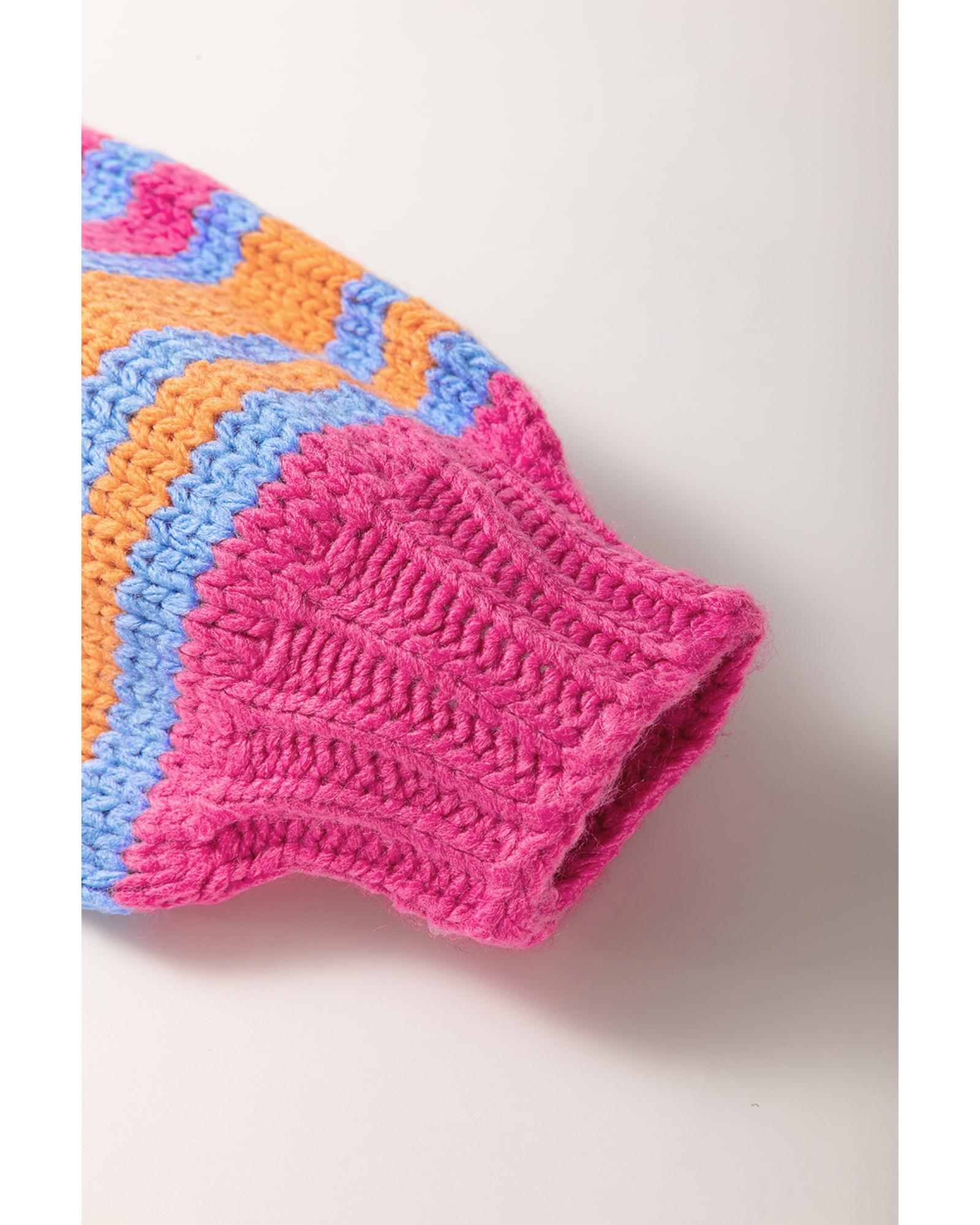 Rose Stripe Colorful Puff Sleeve Drop Shoulder Loose Cardigan – M
