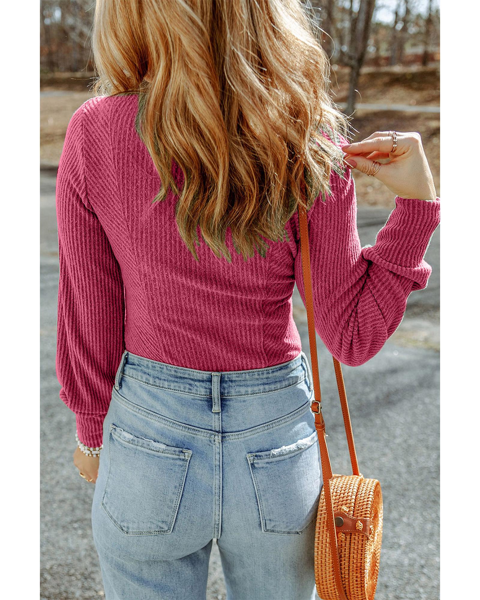 Apricot Exposed Seam V Neck Split Hem Tunic Top - M