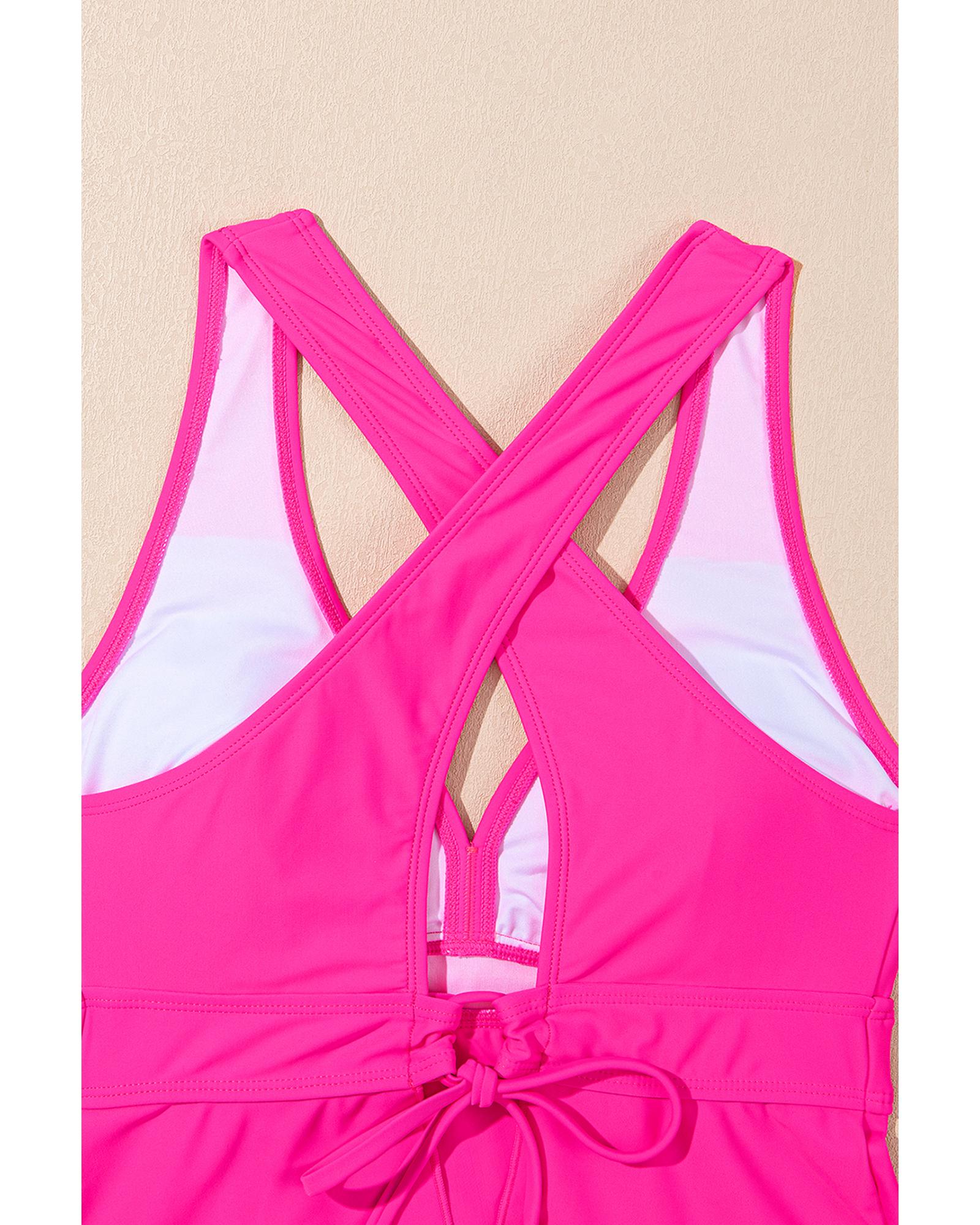 Rose V Neck Ruffled Hem Floral Bottom Tankini Set – S