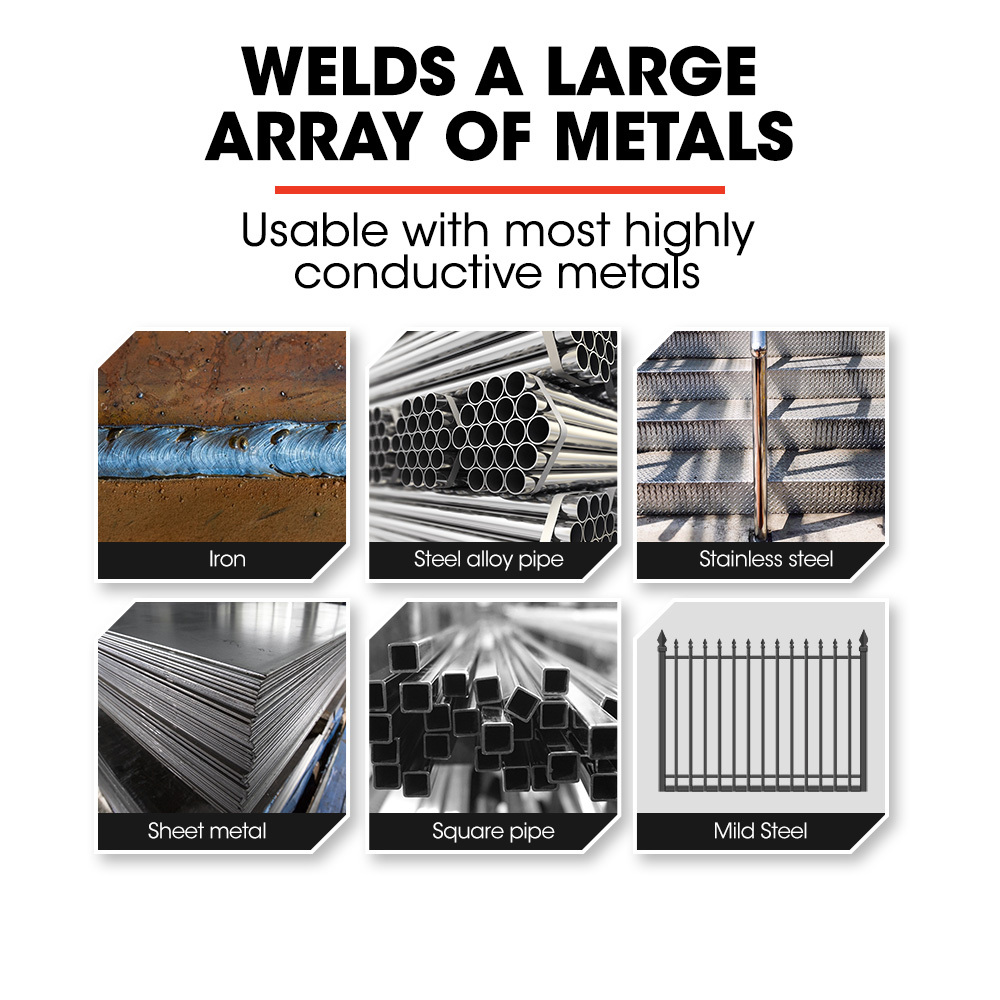 With an efficient pure copper Toroidal Transformer and output current that is adjustable between 20A and 140A, you can achieve a quality weld on a wide range of base metals; steel, stainless steel, cast iron, copper, brass, and other highly conductive metals. The high-quality transistors in the bridge combine to make a continuous current rectifier, giving high speed and precise regulation and continuity of the welding current to produce superior results with the onboard adjustable wire feed, general stick, electrode, and special-purpose rods. It is compatible with solid or flux core materials depending on welding with or without gas.