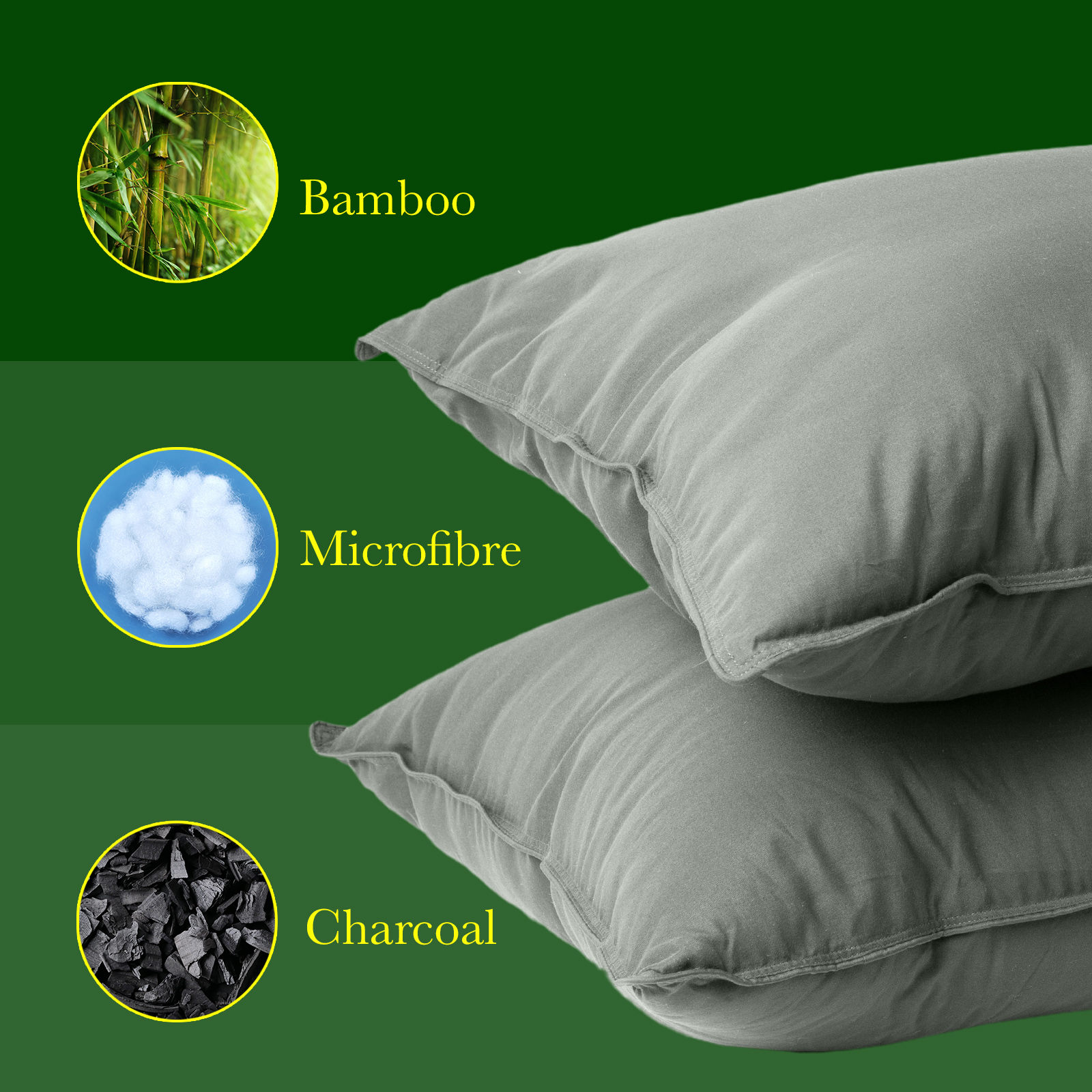 Charcoal doesn’t just mask odours, it organically filters and eliminates them. The bamboo absorbs the excess moisture and moderate the temperature of the pillow, inhibiting dust mites and bacteria so you can sleep in a fresher, cleaner space.