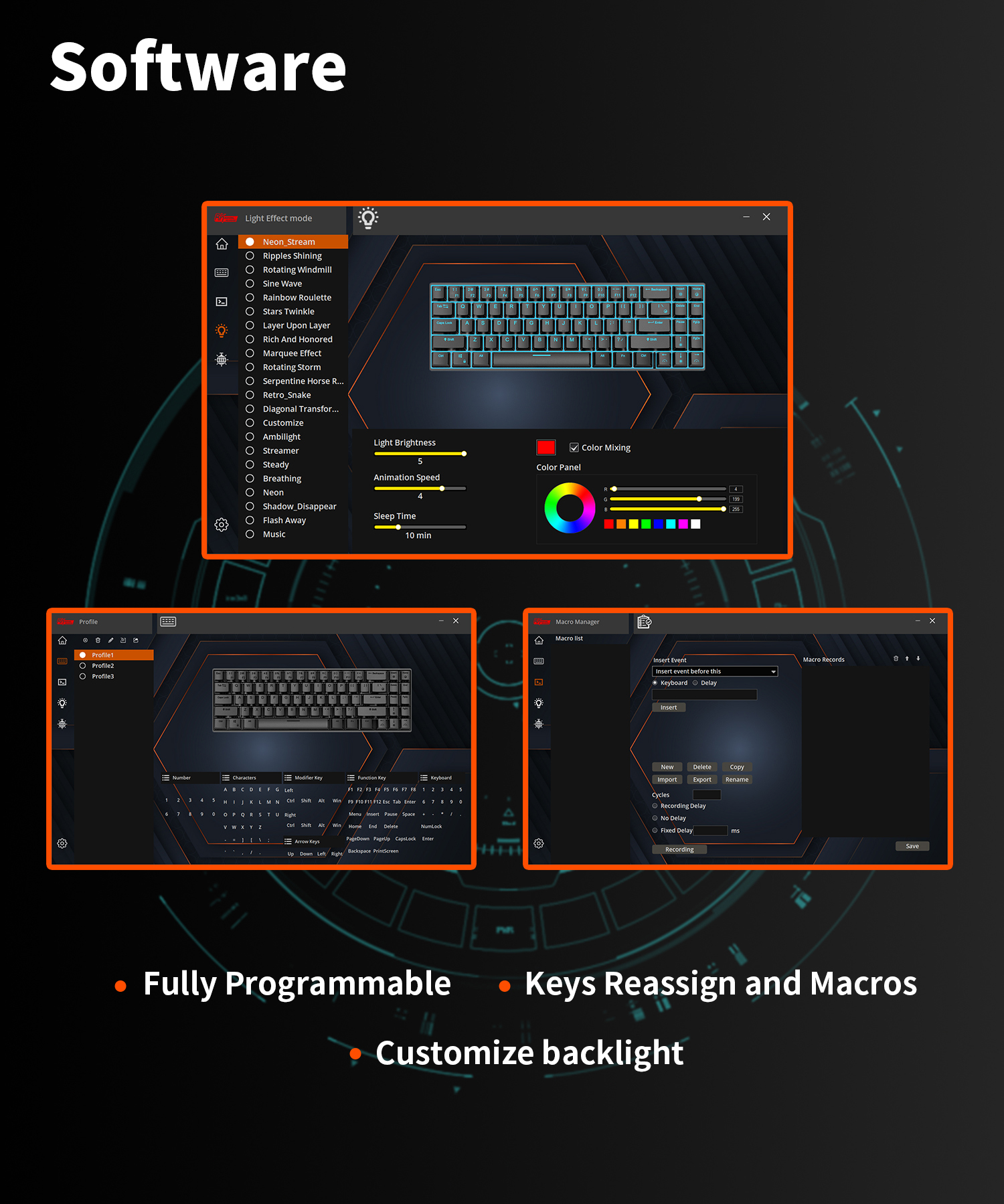 • That is THREE MODES: Believe it or not, this is the first generation of RGB three-mode wireless keyboards on the market. Wireless mode with stable bluetooth 5.0, hassle-free 2.4Ghz dongle plus USB-C wired mode set no limits about your keyboard connection.
