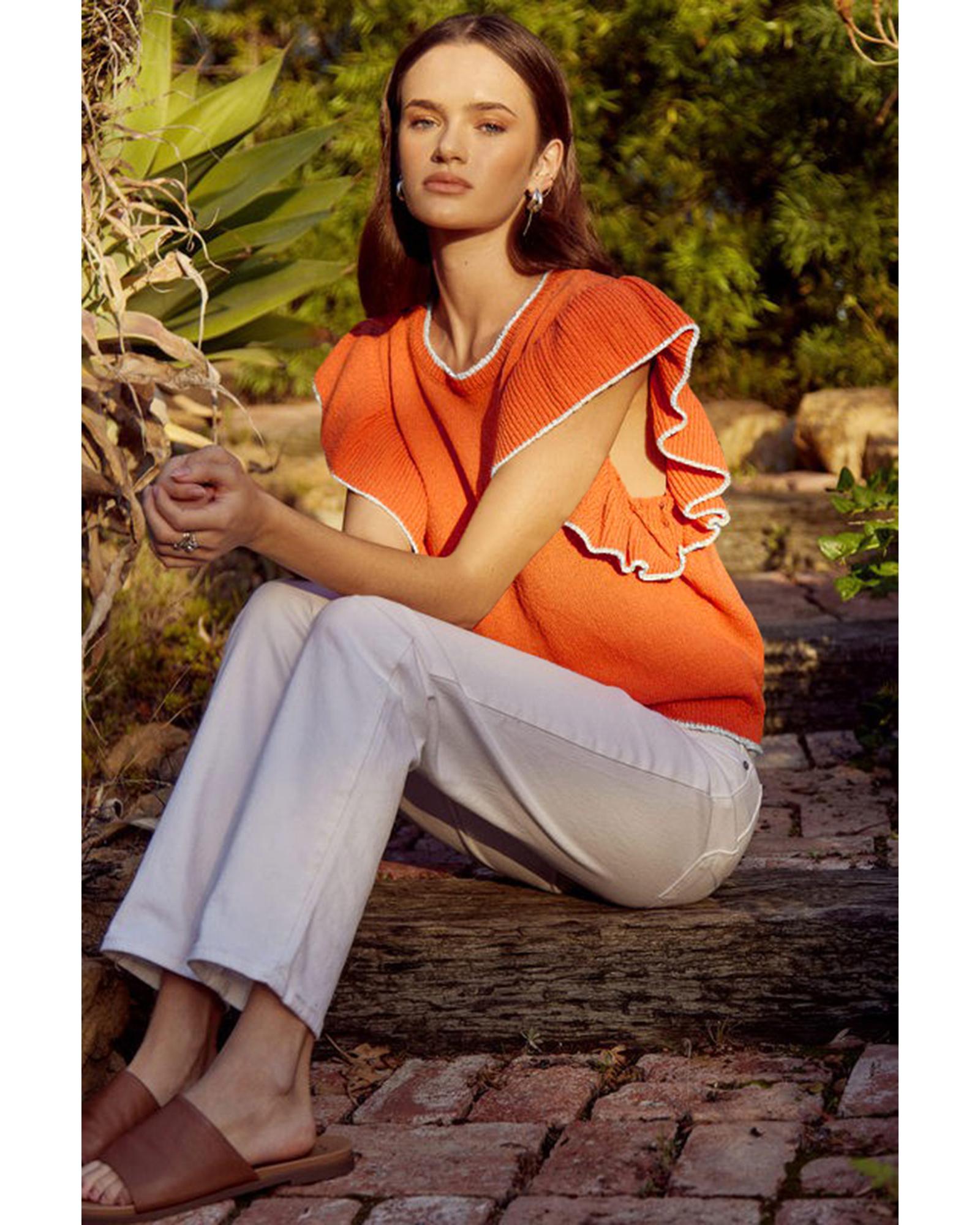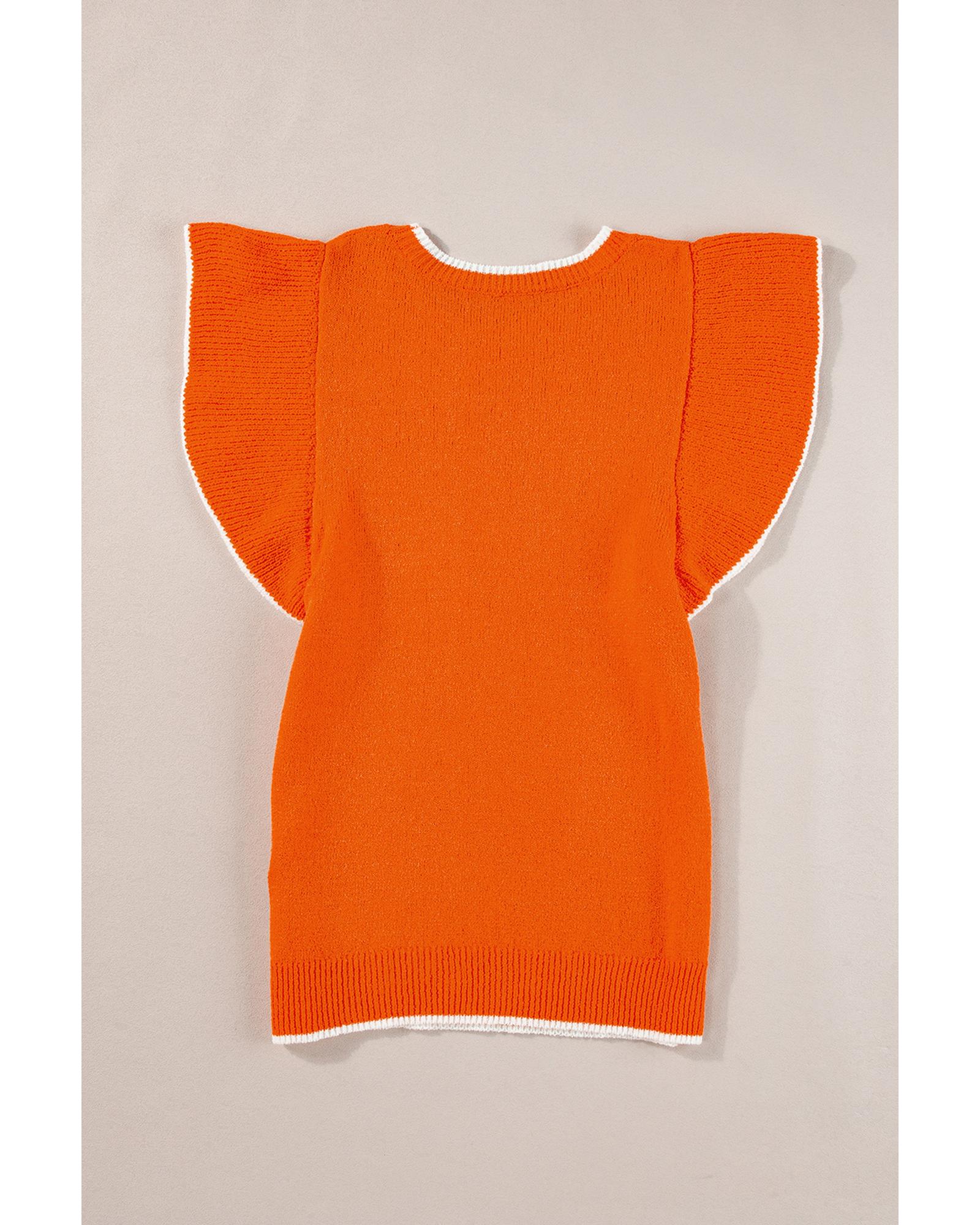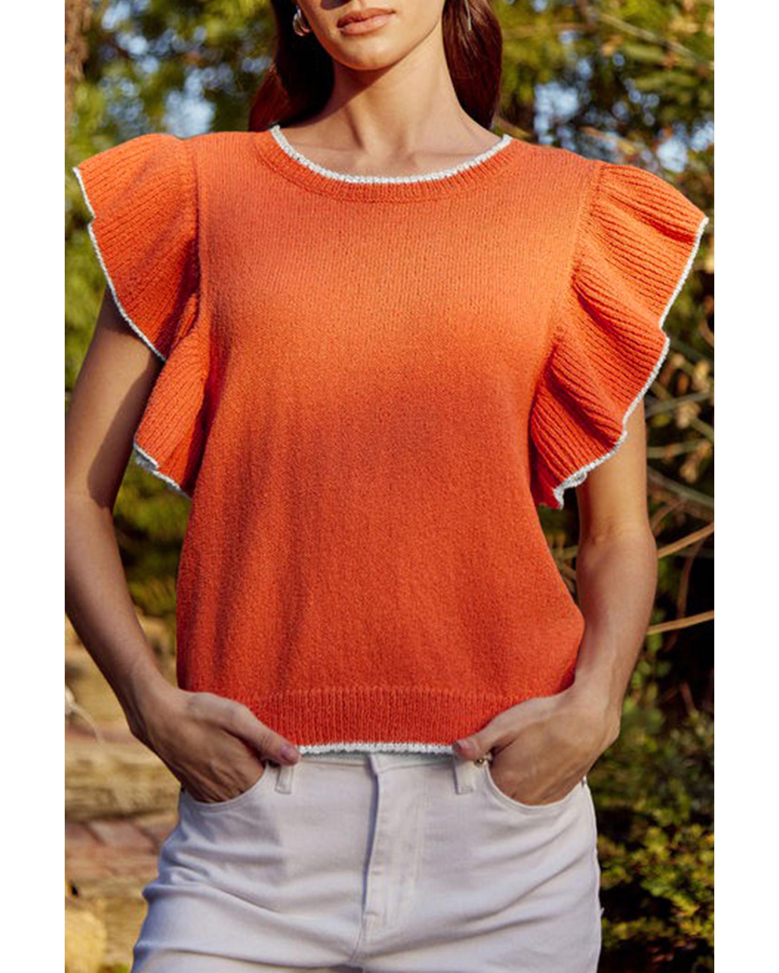 Russet Orange Contrast Trim Ruffle Sleeve Knitted Top – 2XL