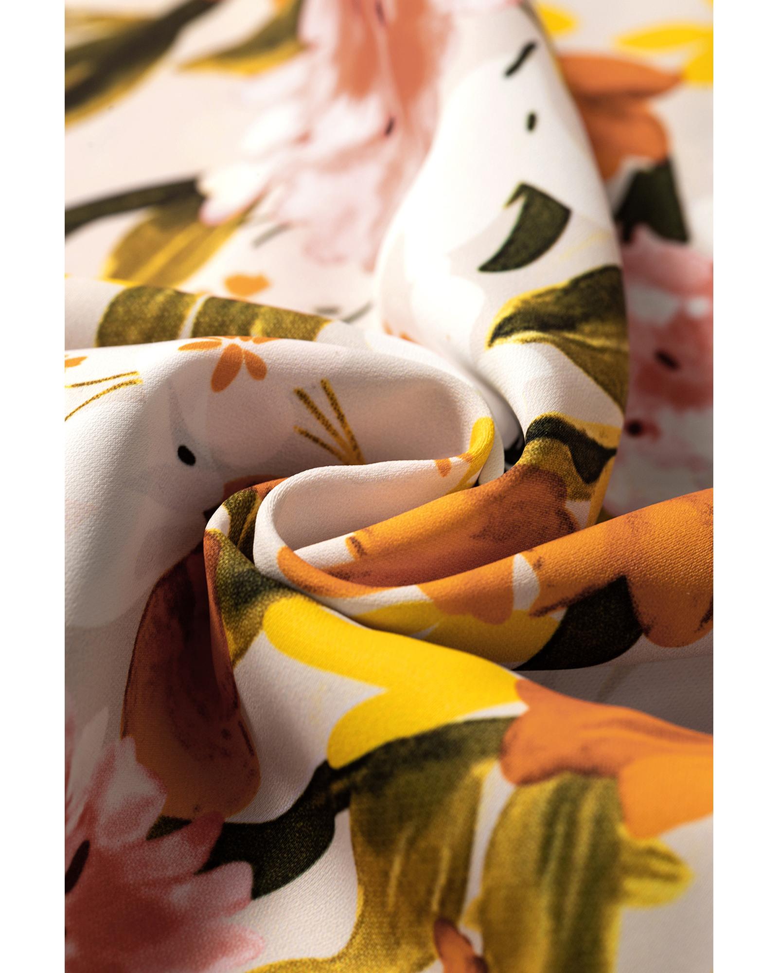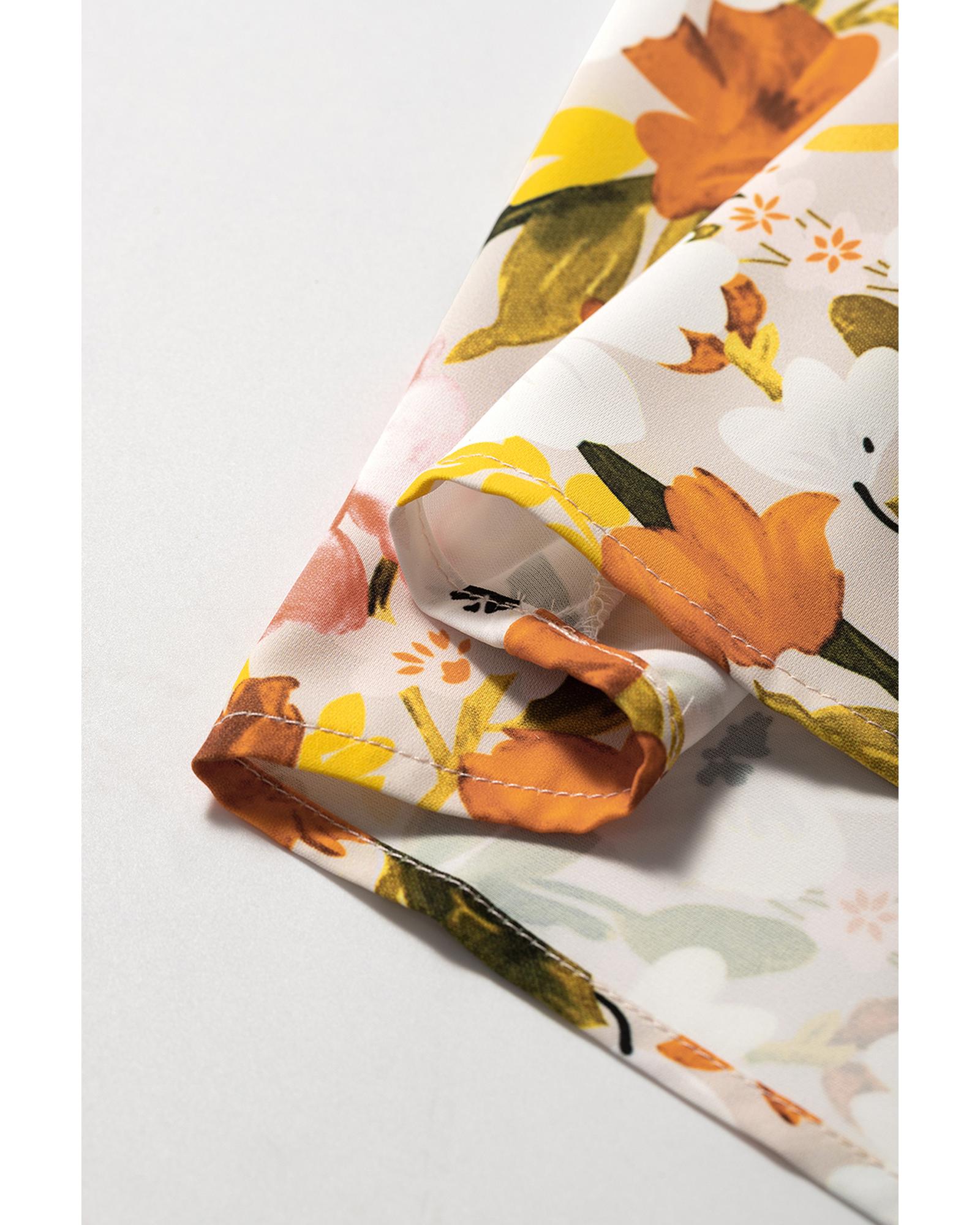 Russet Orange Ruffled V Neck Scalloped Short Sleeve Floral Blouse – L