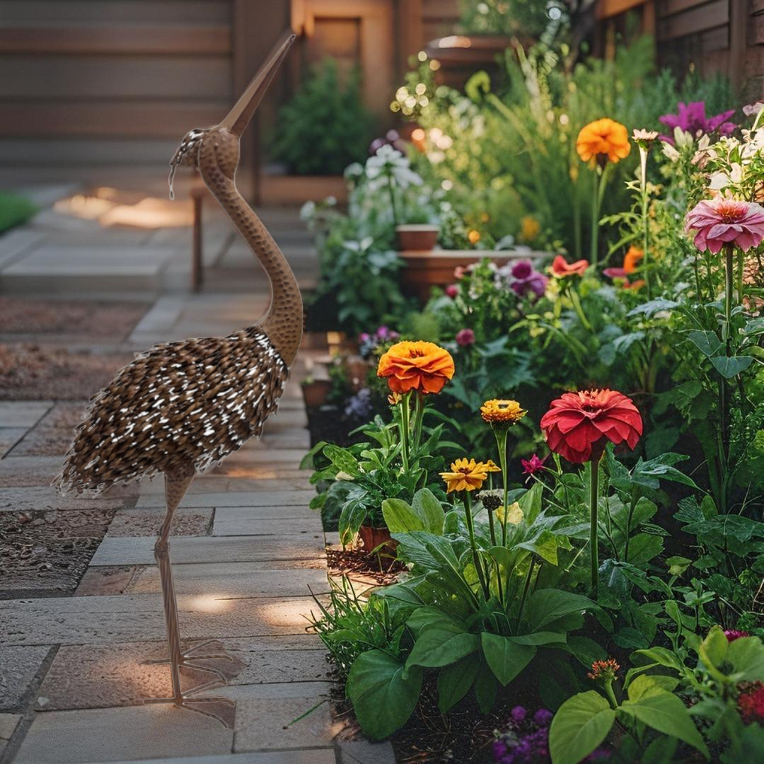 Rust Crane Bird ‘Looking Up’ Statue 38cm