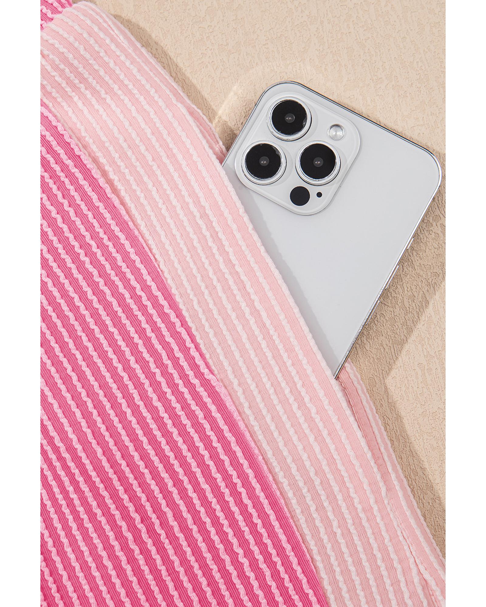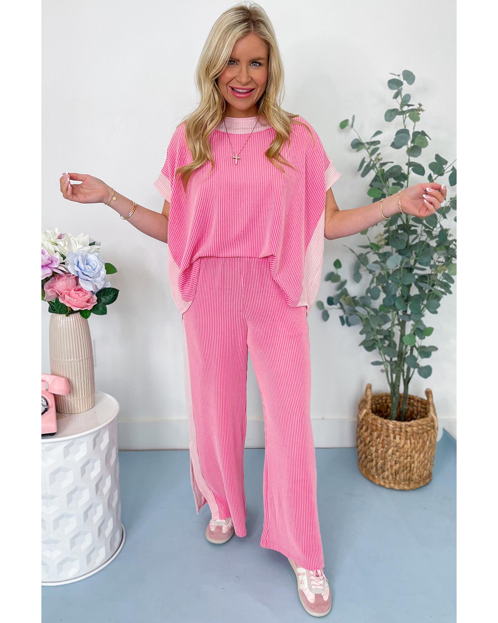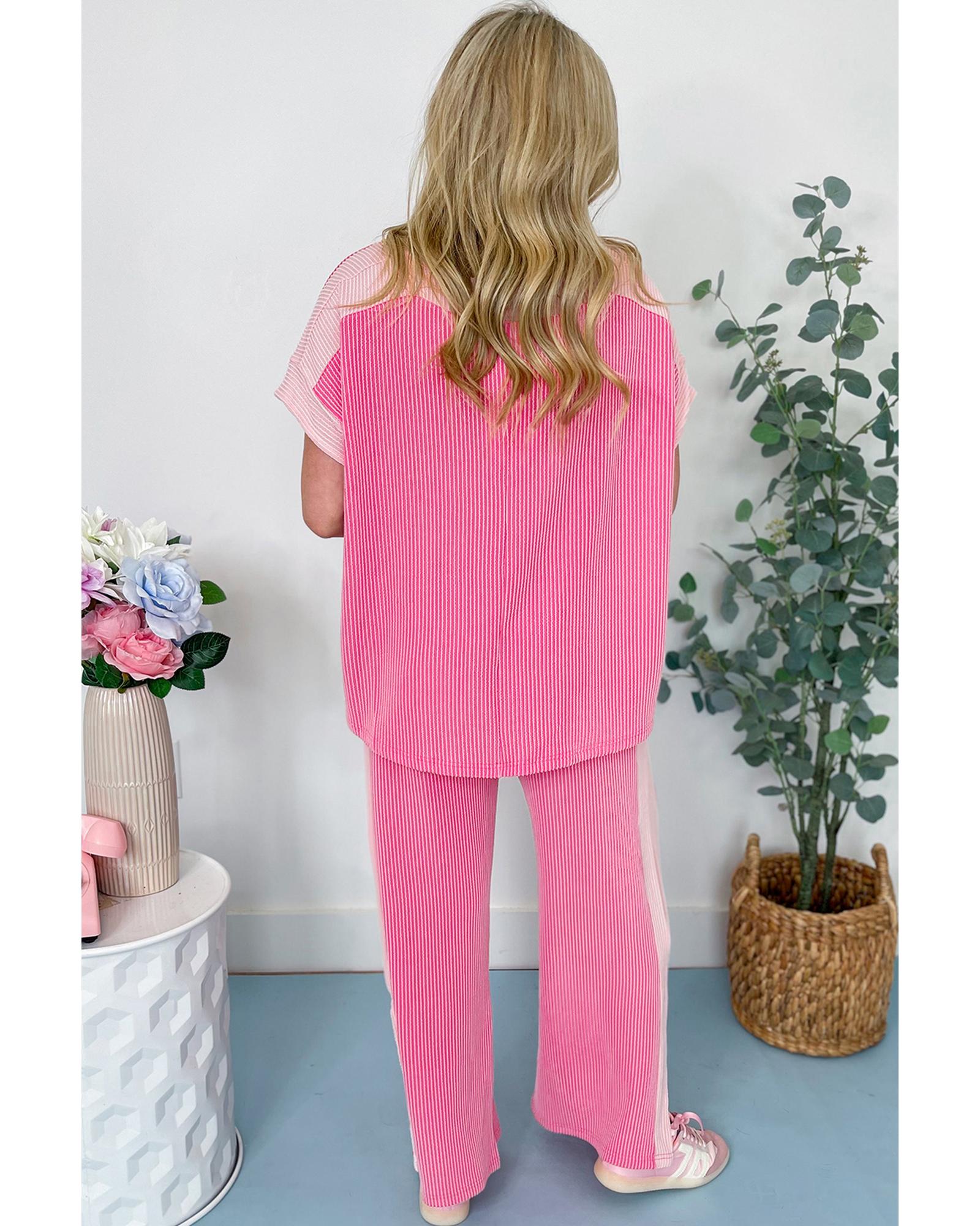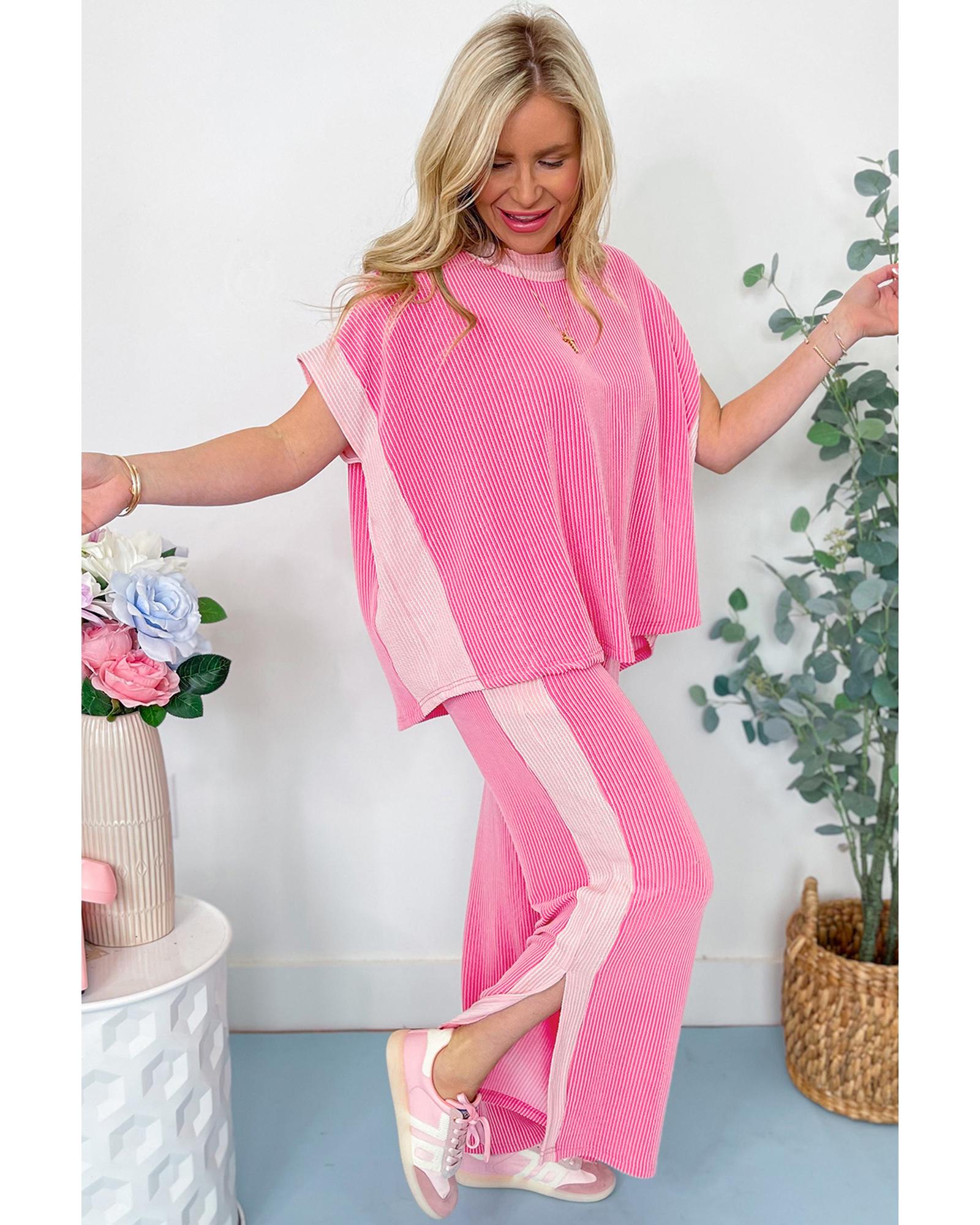 Sachet Pink 2-tone Colorblock Patchwork Corded 2pcs Outfit – L