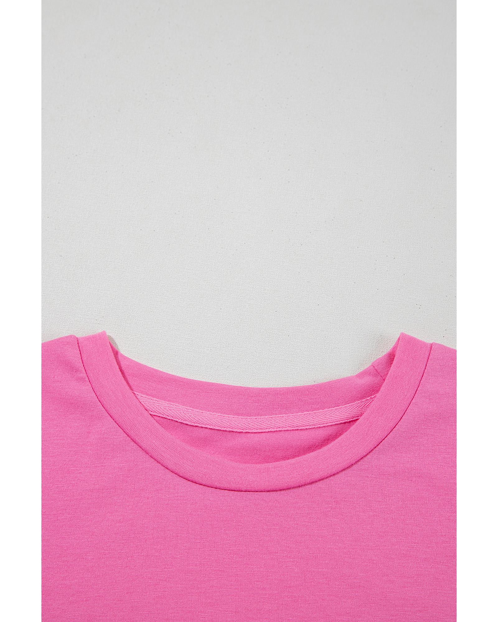 Sachet Pink Bright Casual Plain Crew Neck Tee – S