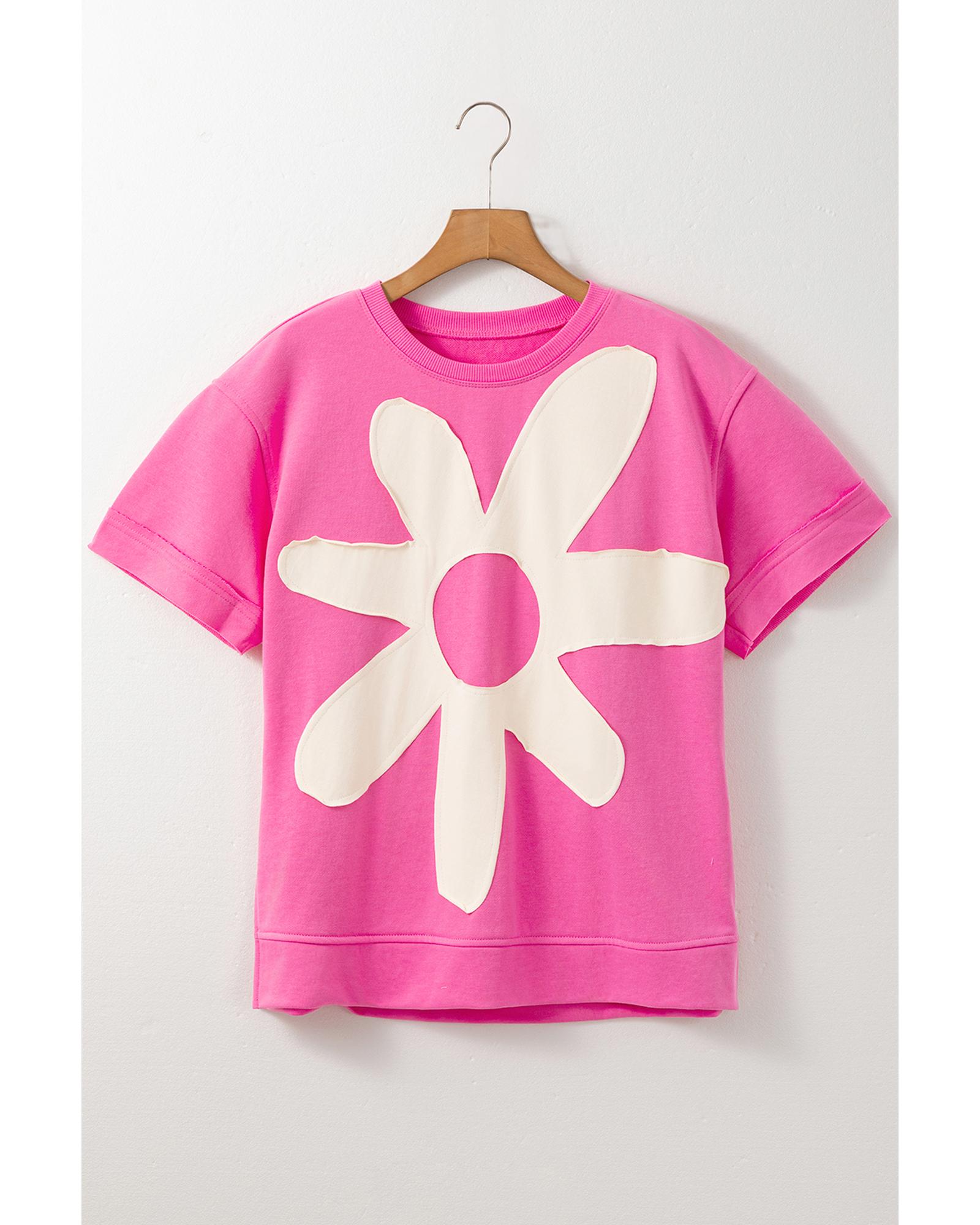 - Sachet Pink Contrast Flower Drop Shoulder Loose T