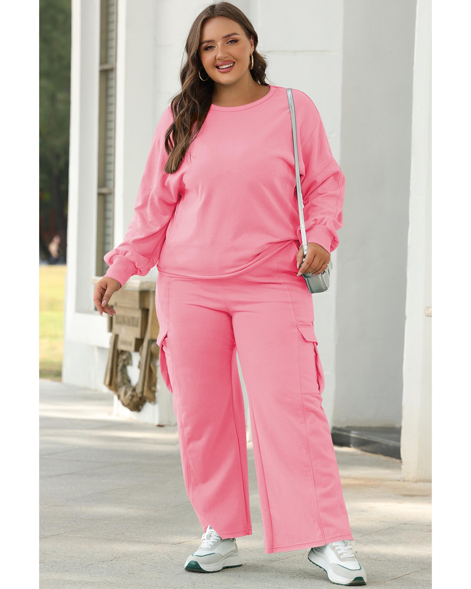 Sachet Pink Solid Color Patchwork Pullover Top and Cargo Pants Set – 3XL
