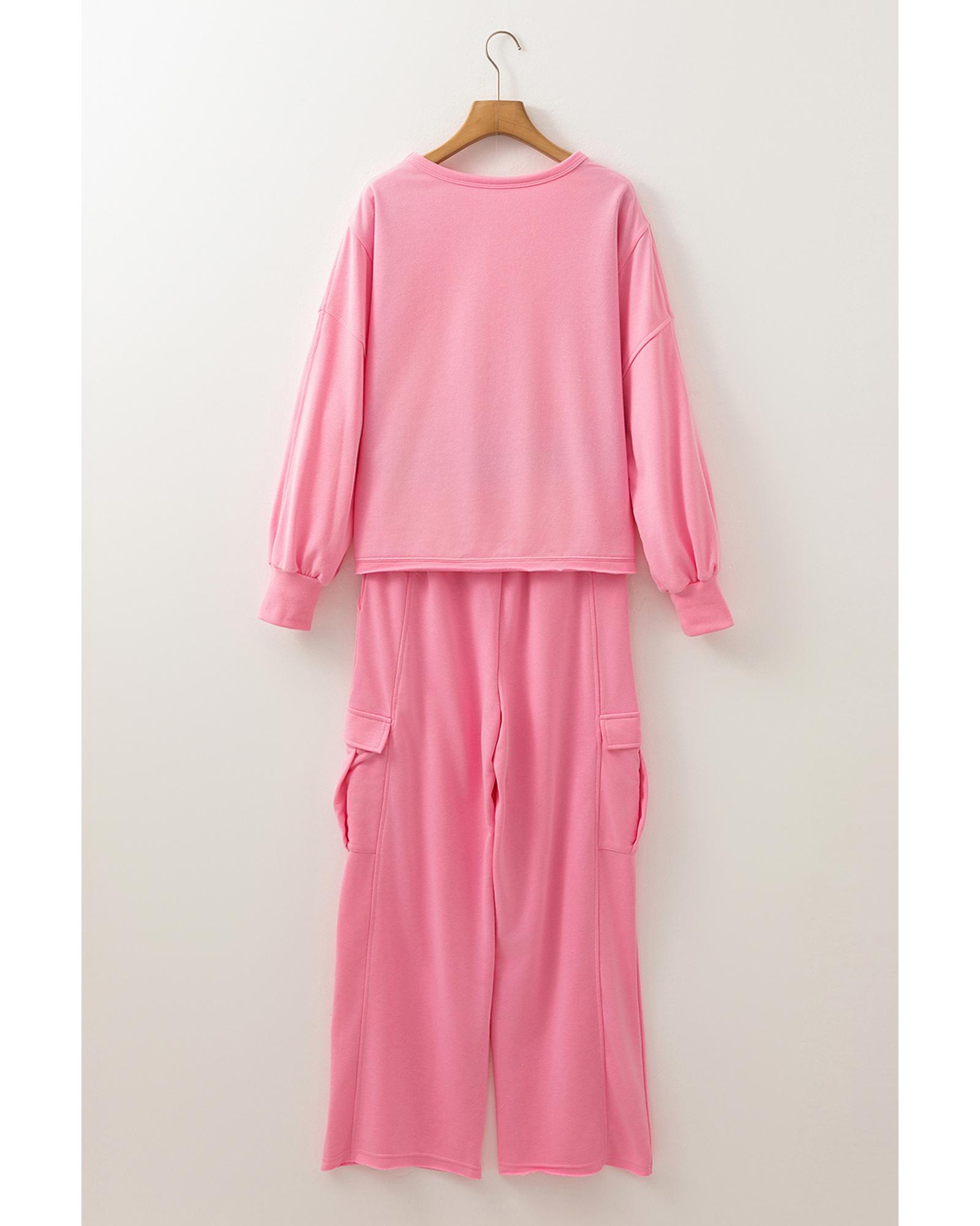 Sachet Pink Solid Color Patchwork Pullover Top and Cargo Pants Set – S
