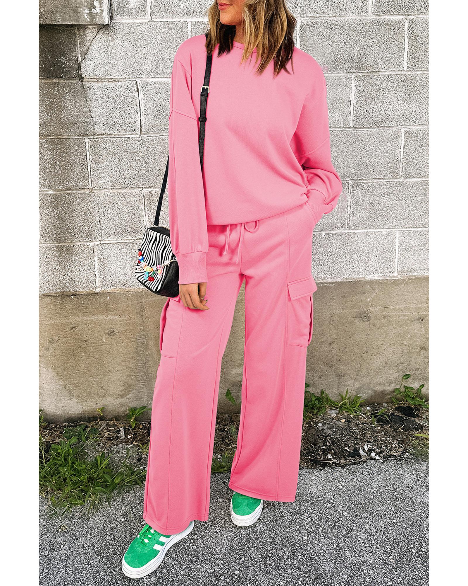 Sachet Pink Solid Color Patchwork Pullover Top and Cargo Pants Set – XL