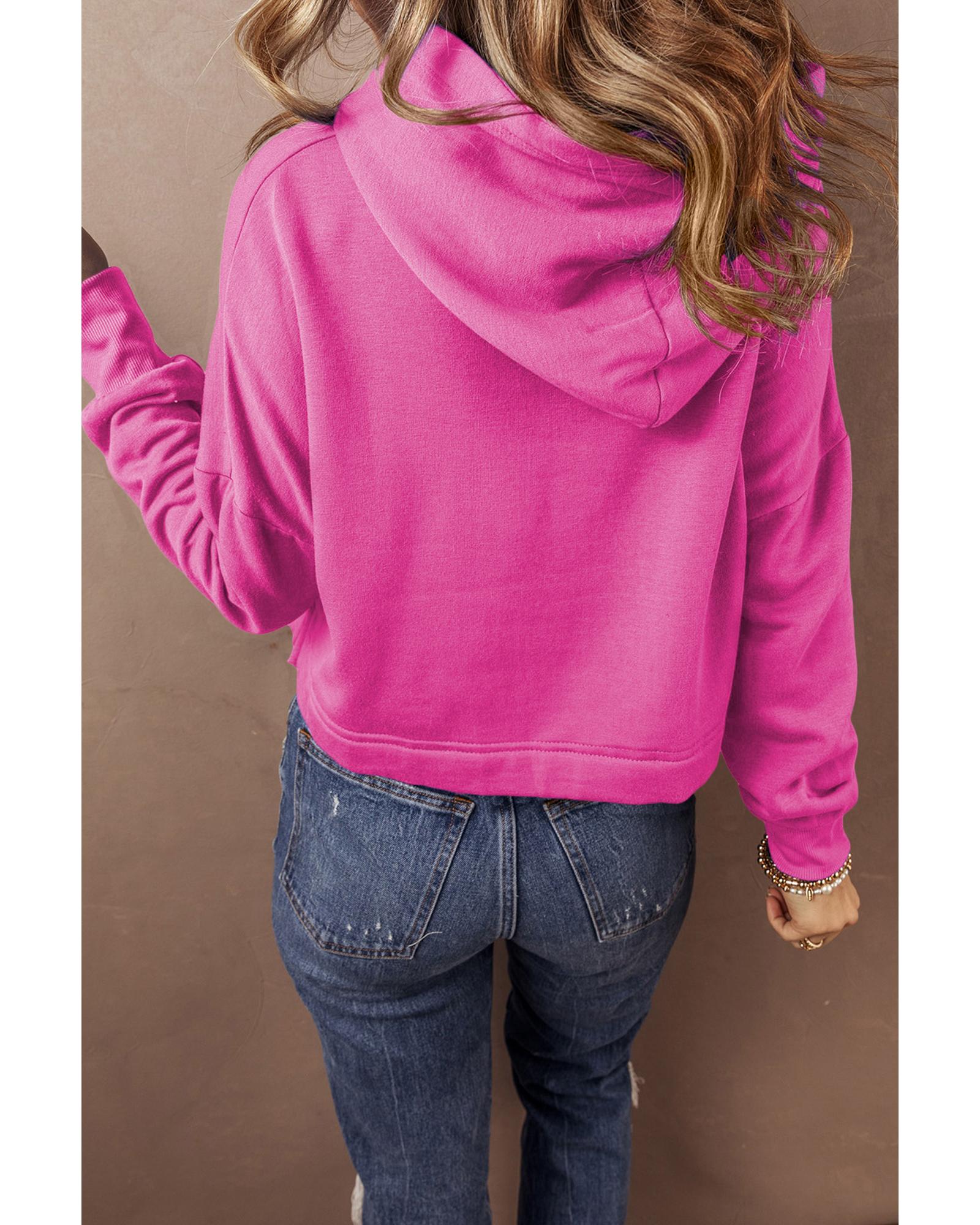 - Sachet Pink Solid Drop Shoulder Drawstring Cropped Hoodie