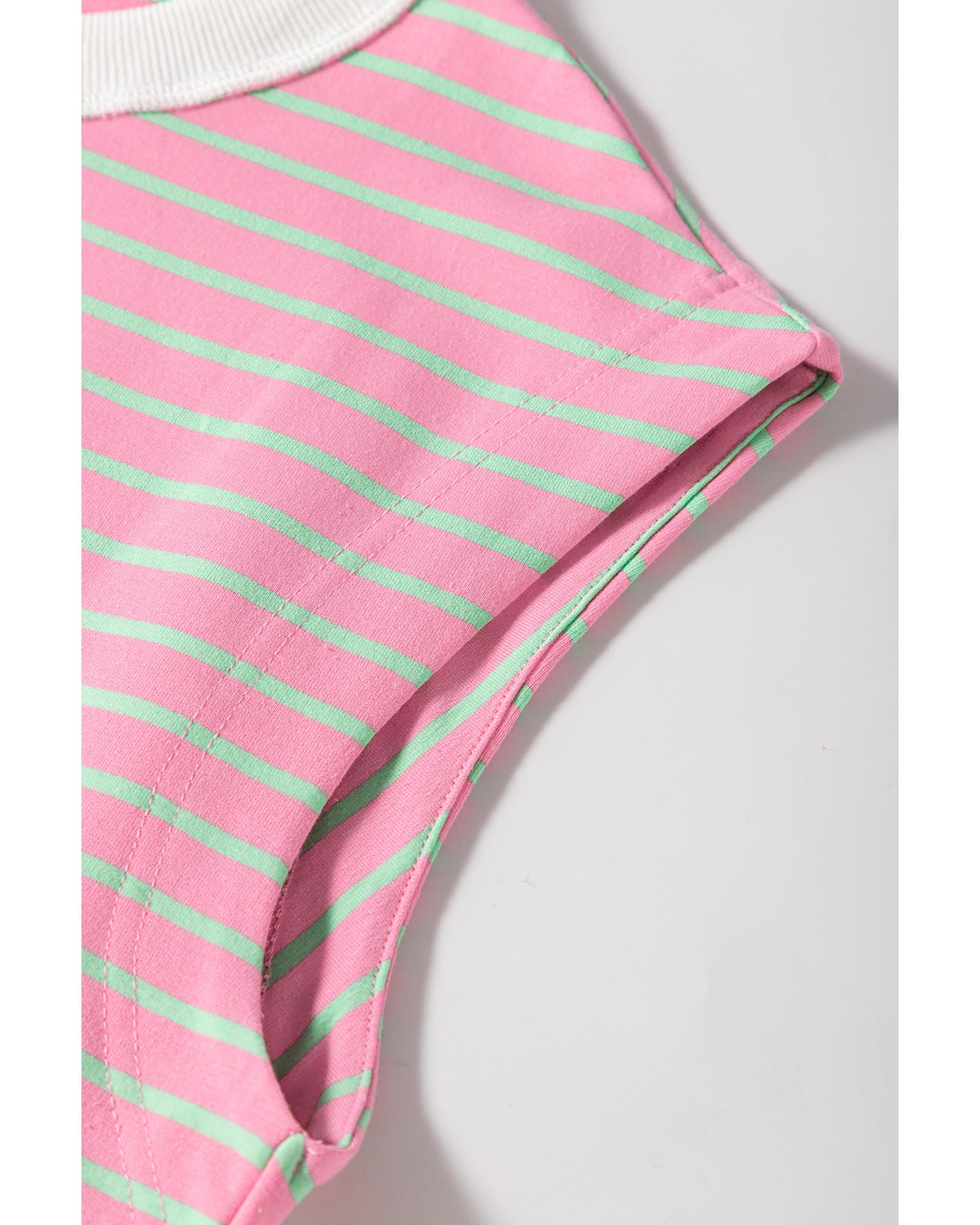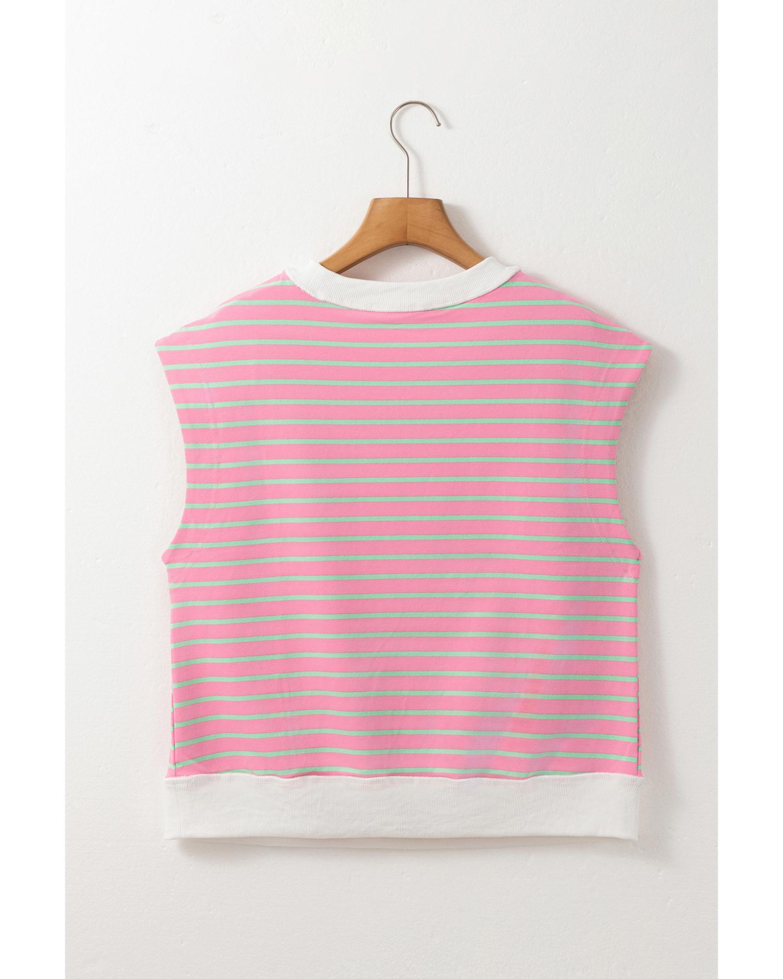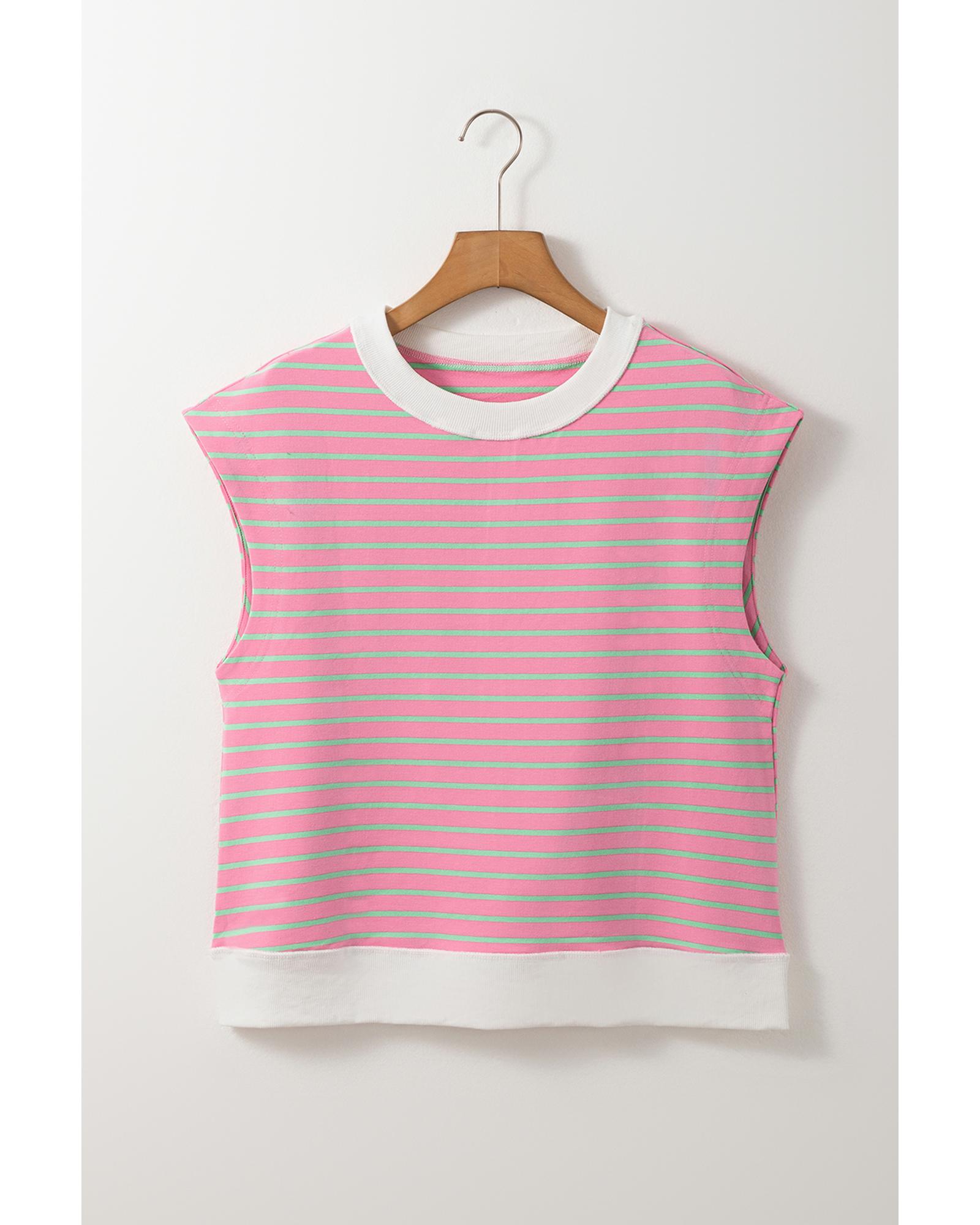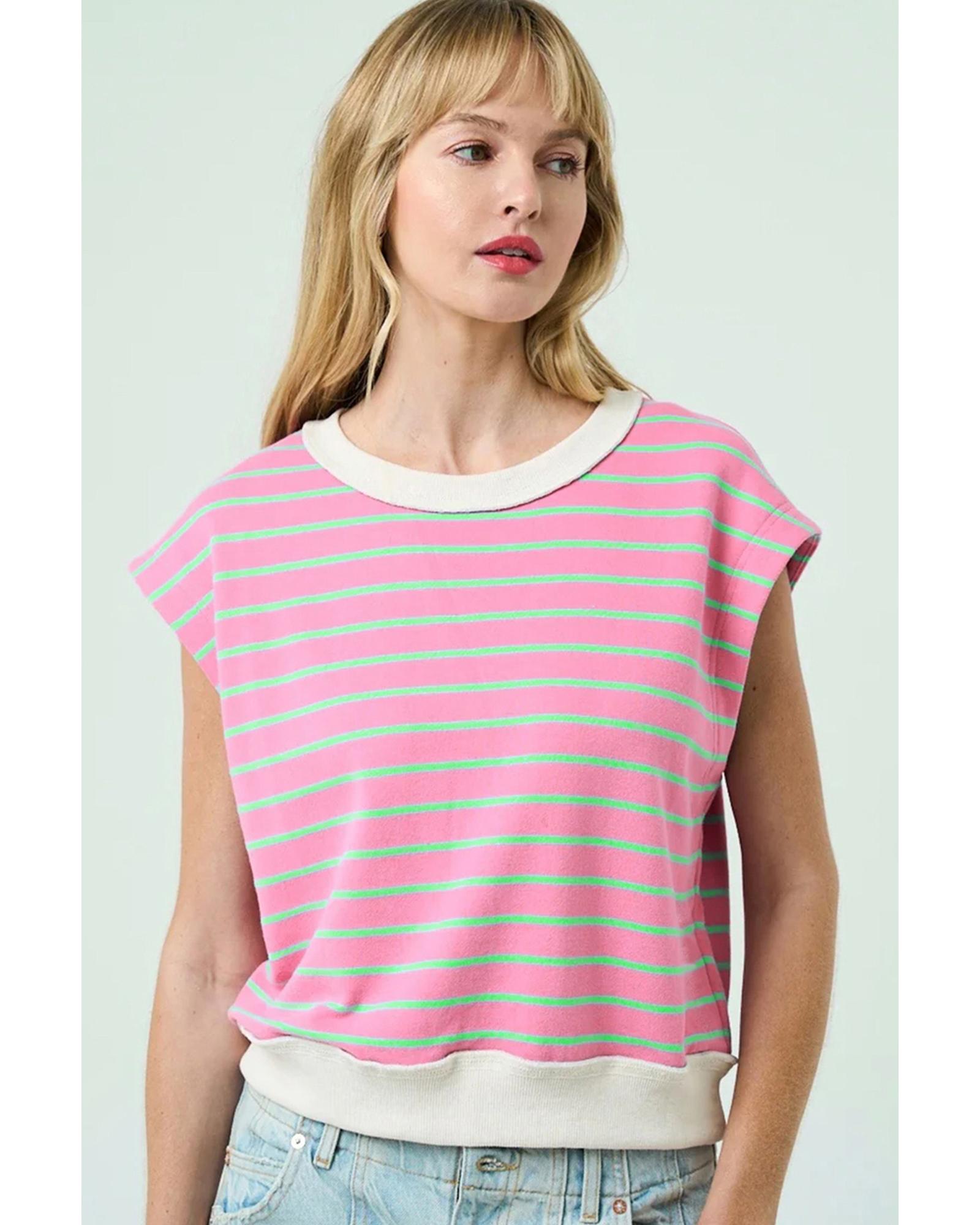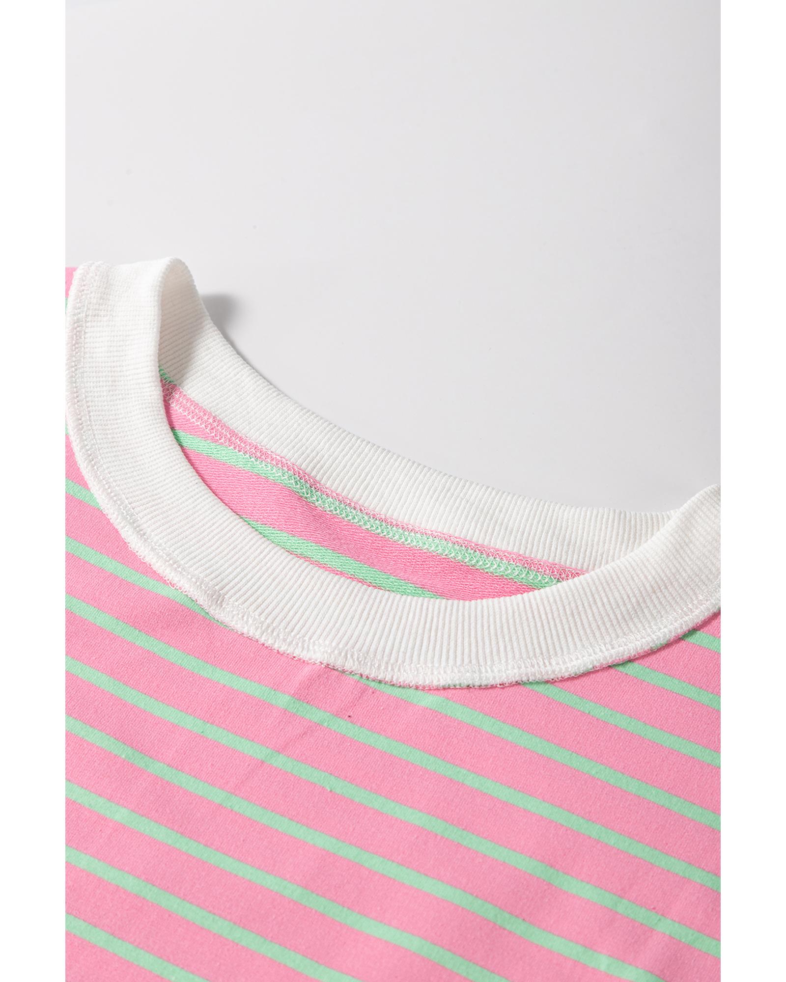 Sachet Pink Striped Crew Neck Cap Sleeve T Shirt – M