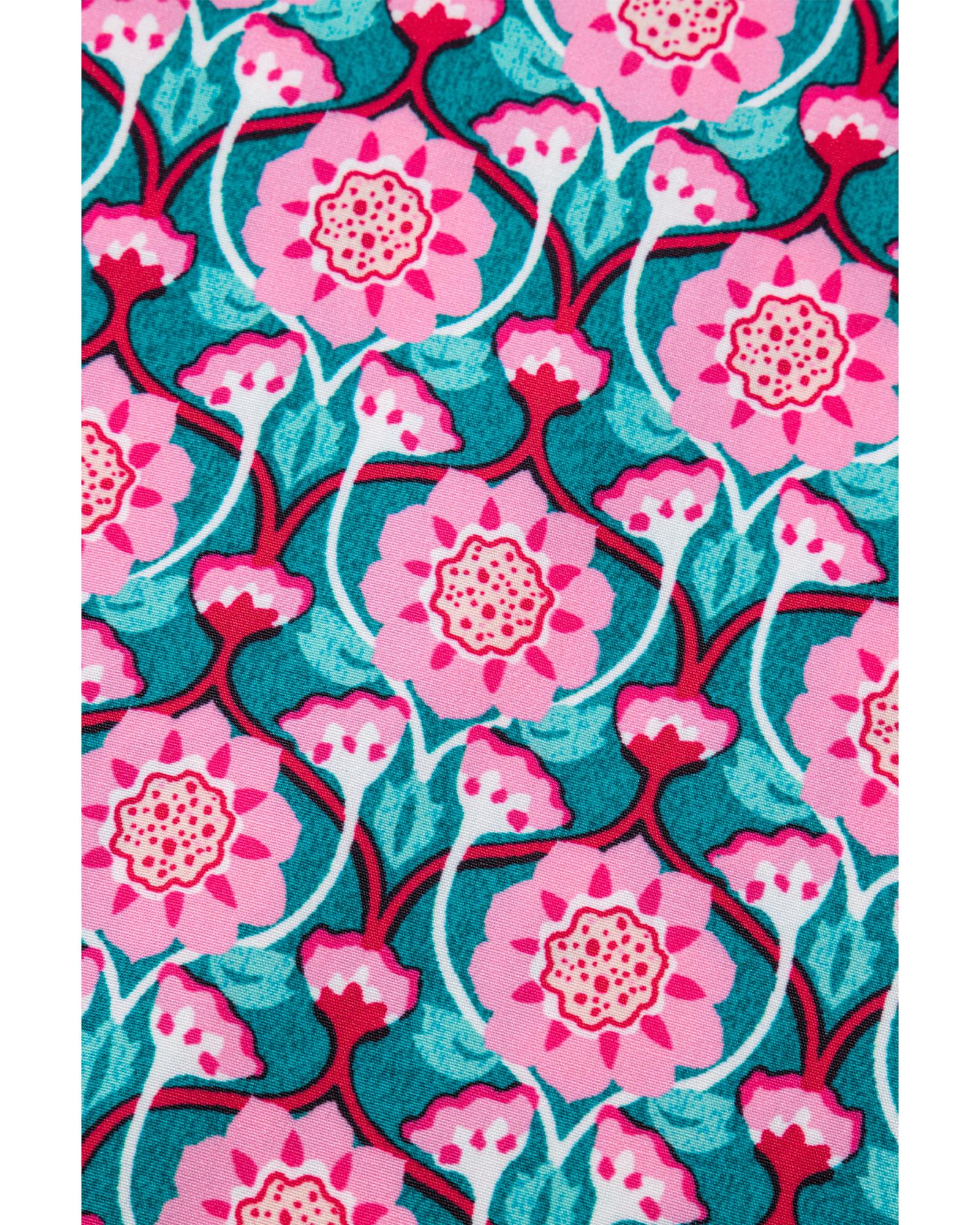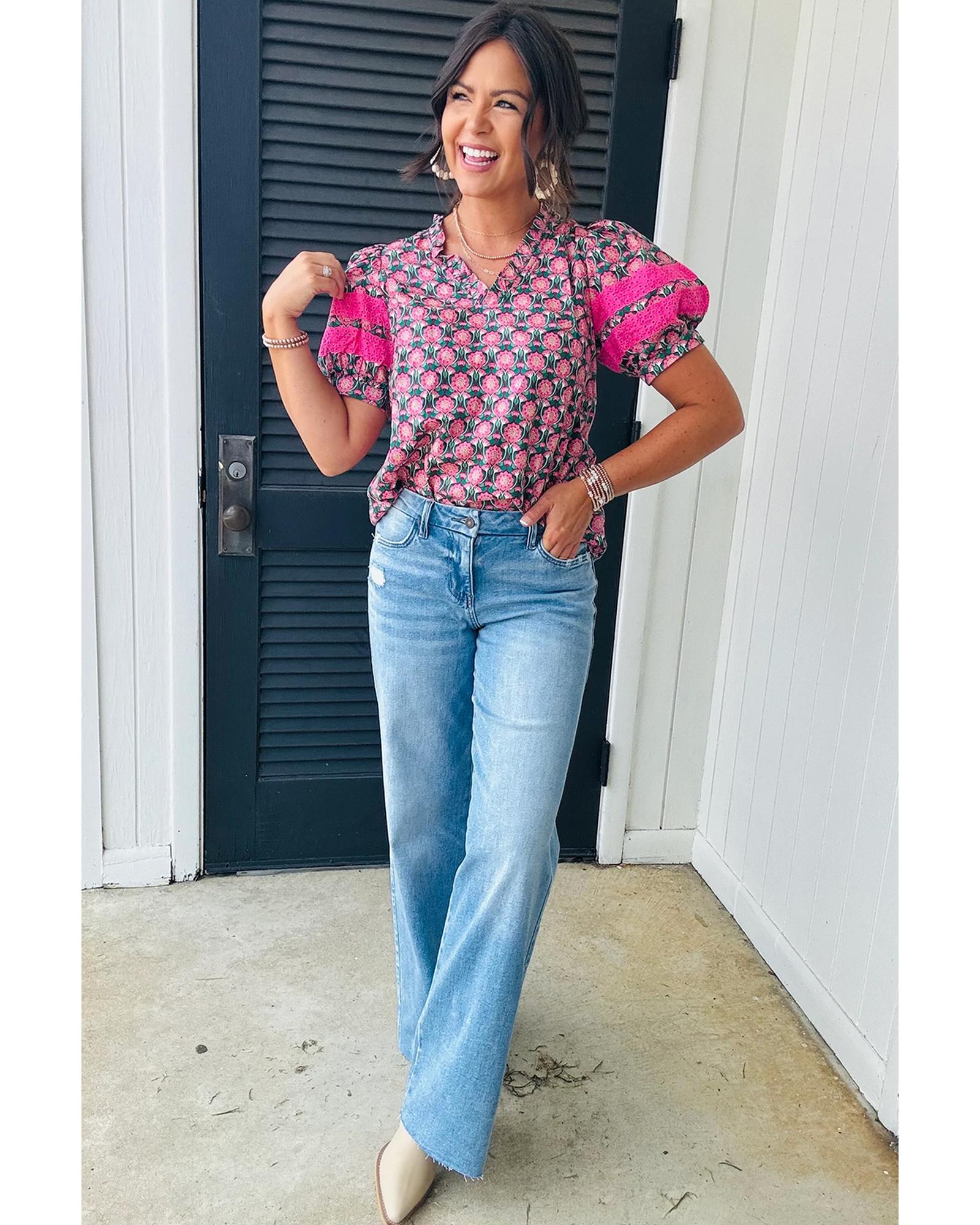 Sachet Pink V-Neck Ruffle Abstract Floral Print Puff Sleeve Top – XL