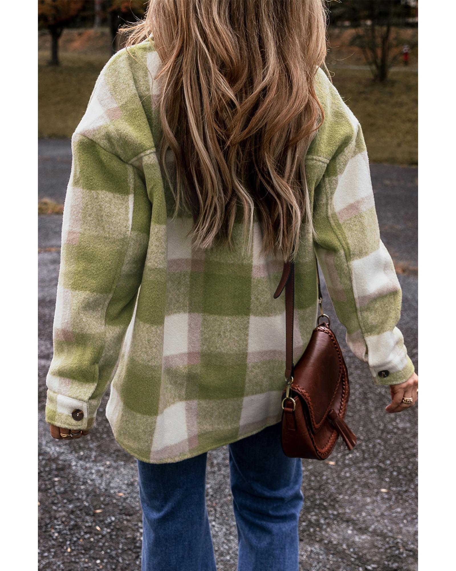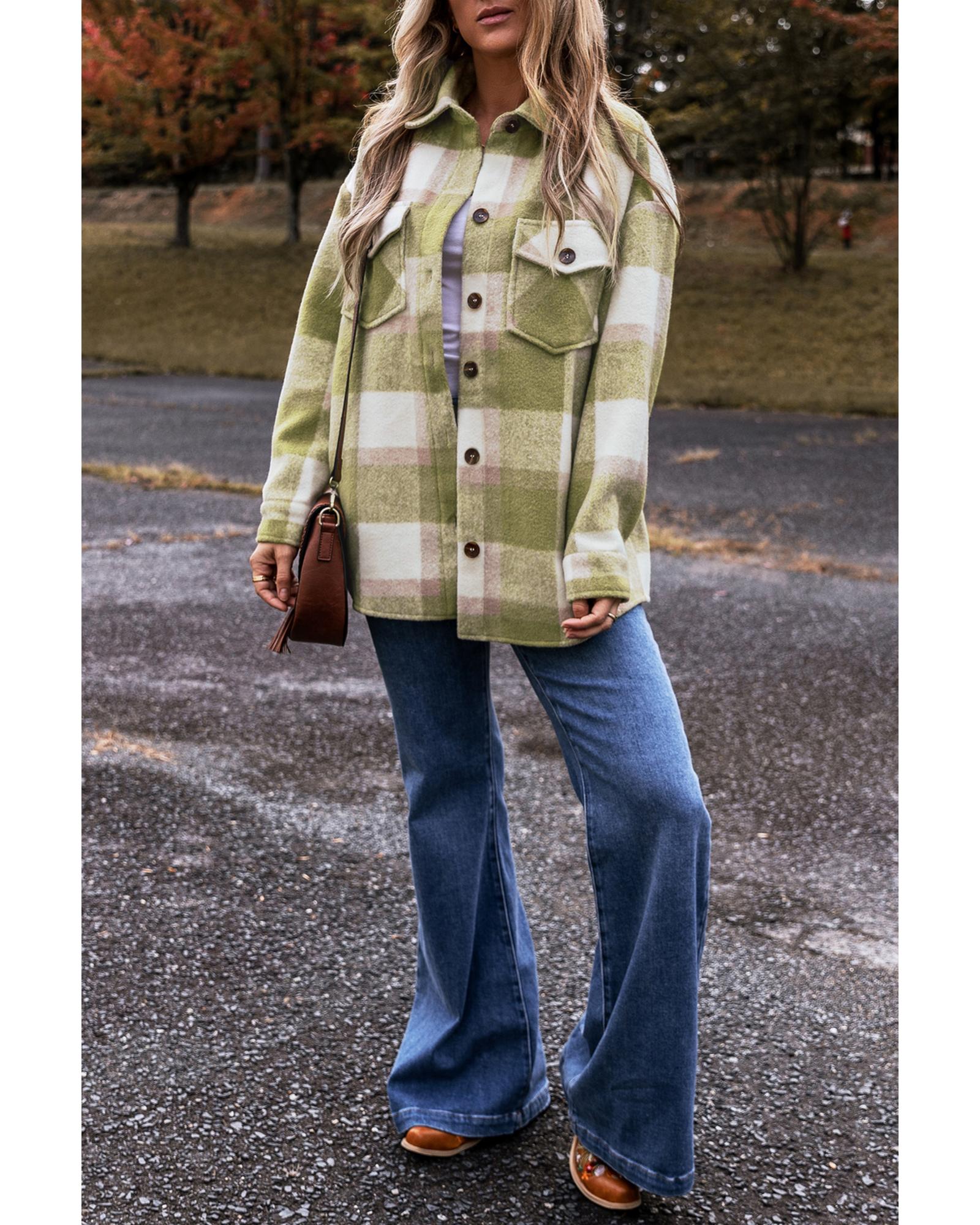 Sage Green Plaid Print Buttoned Flap Pockets Baggy Shacket – 2XL