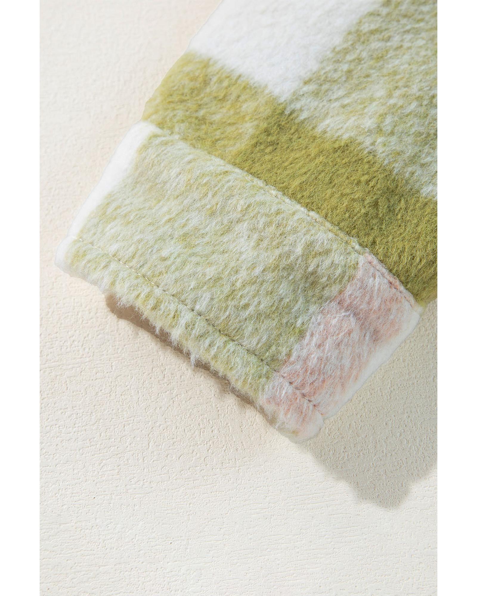 Sage Green Plaid Print Buttoned Flap Pockets Baggy Shacket – XL