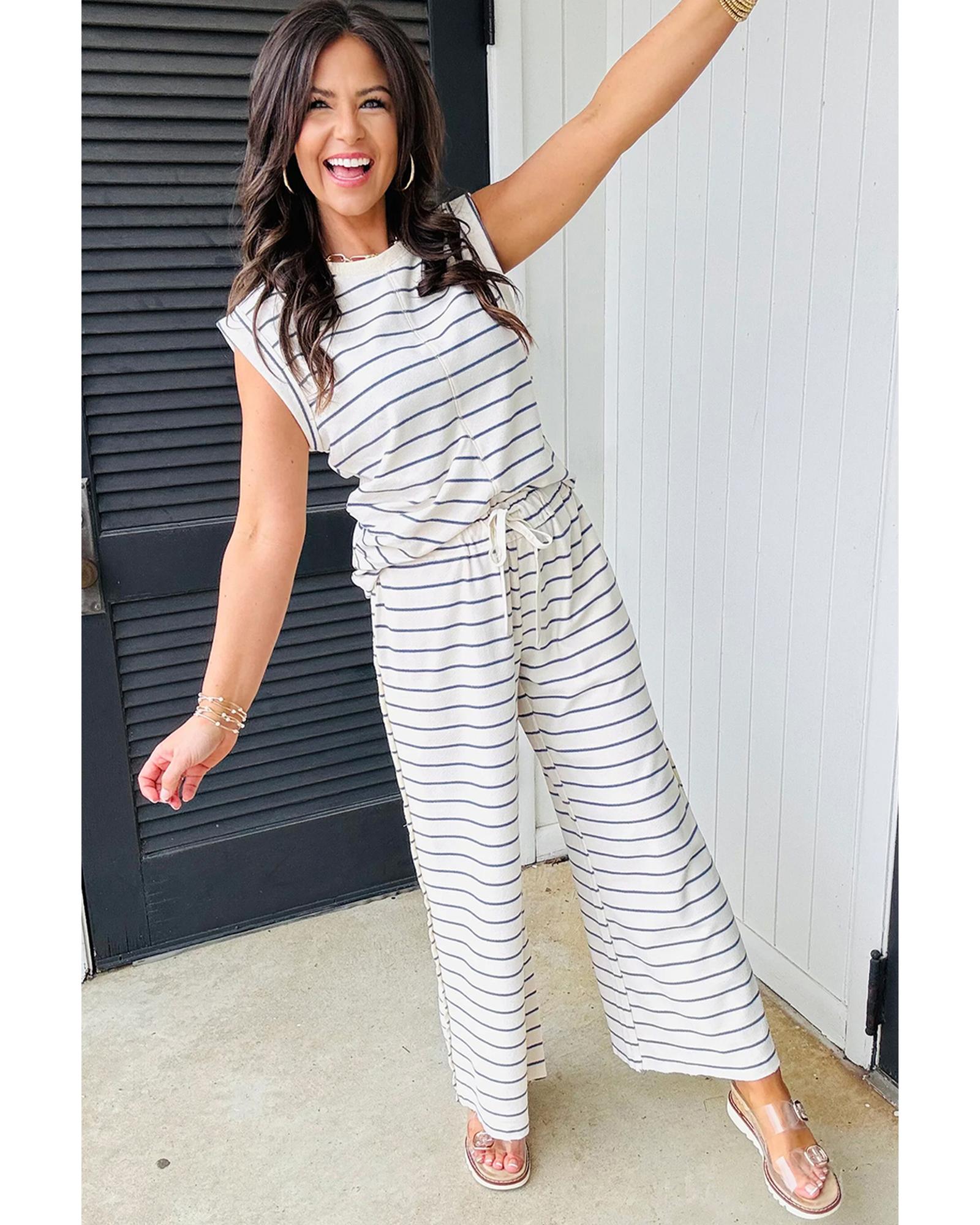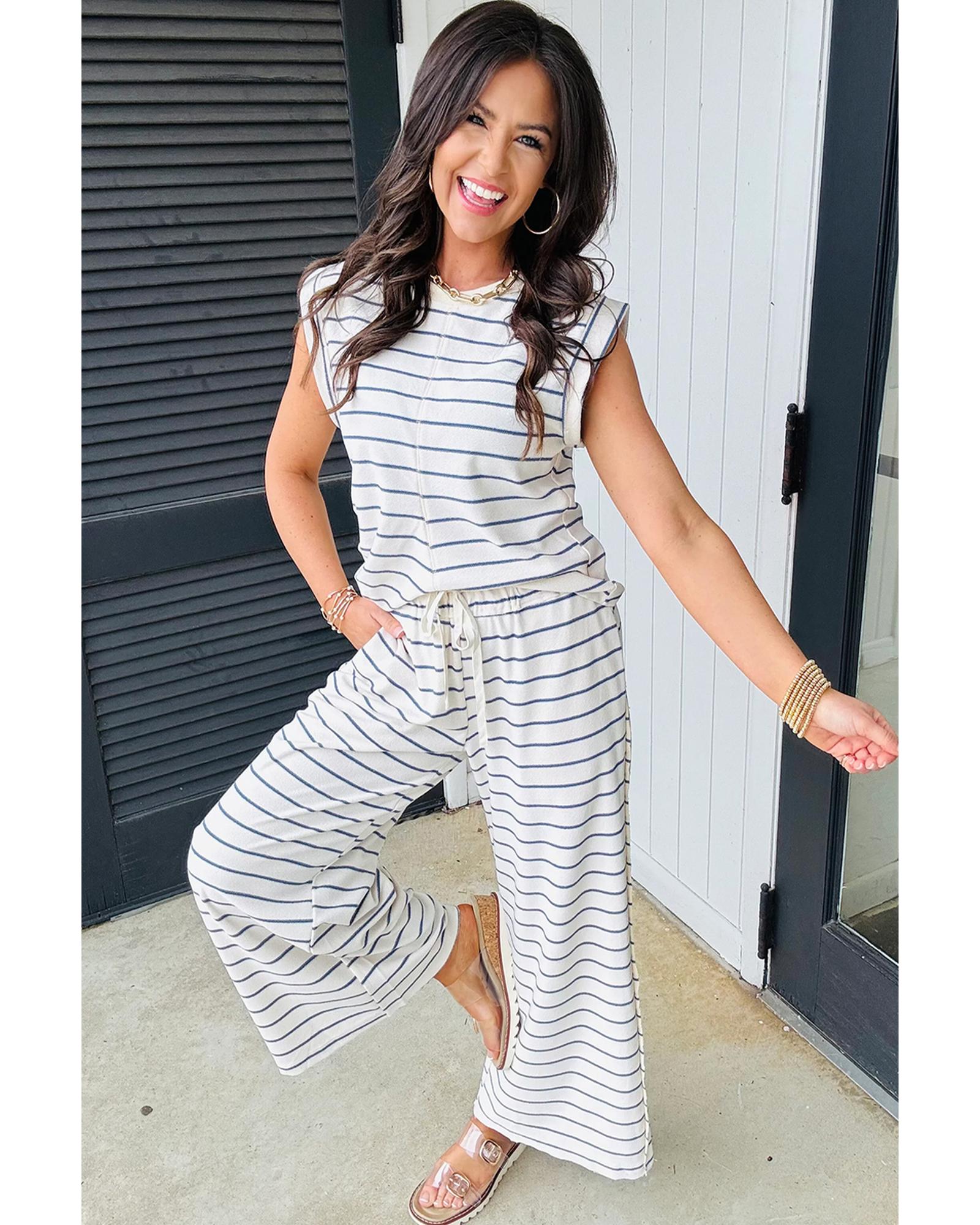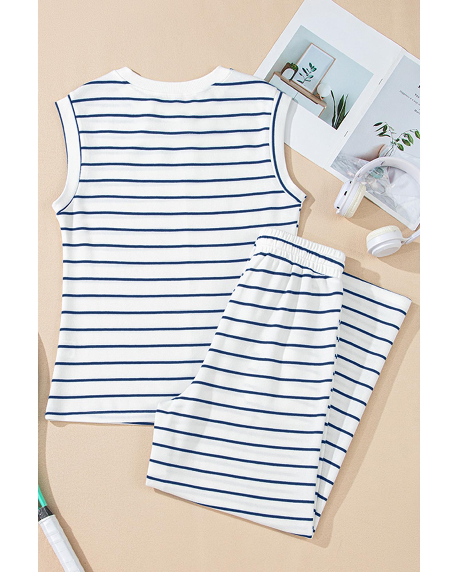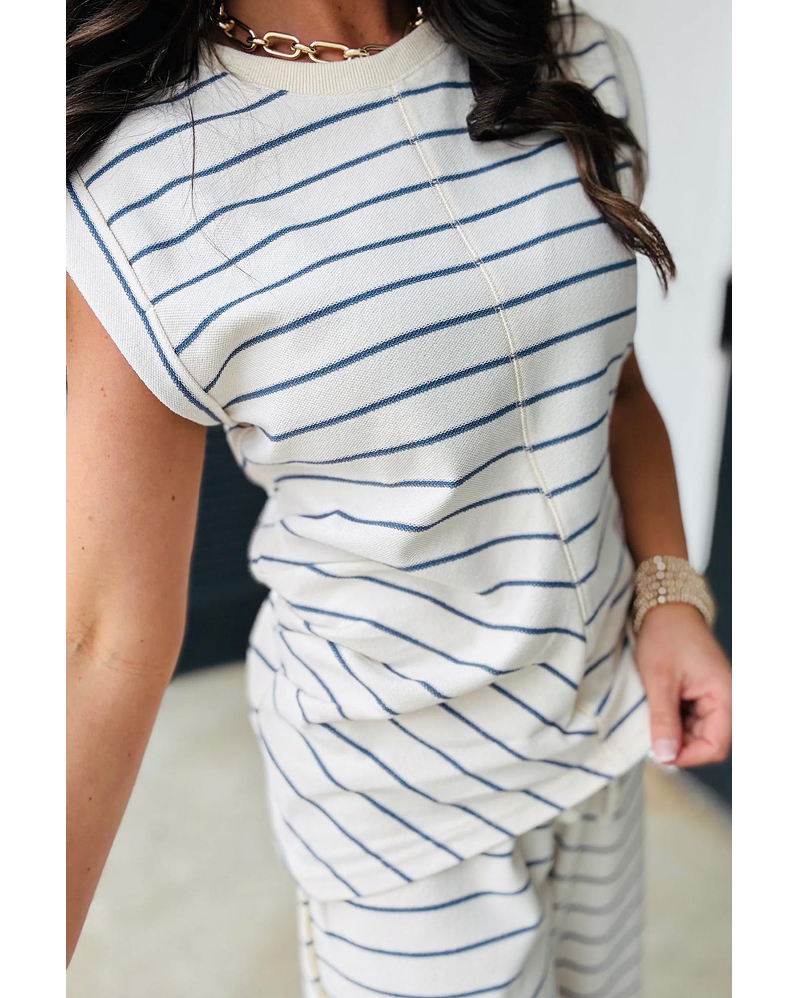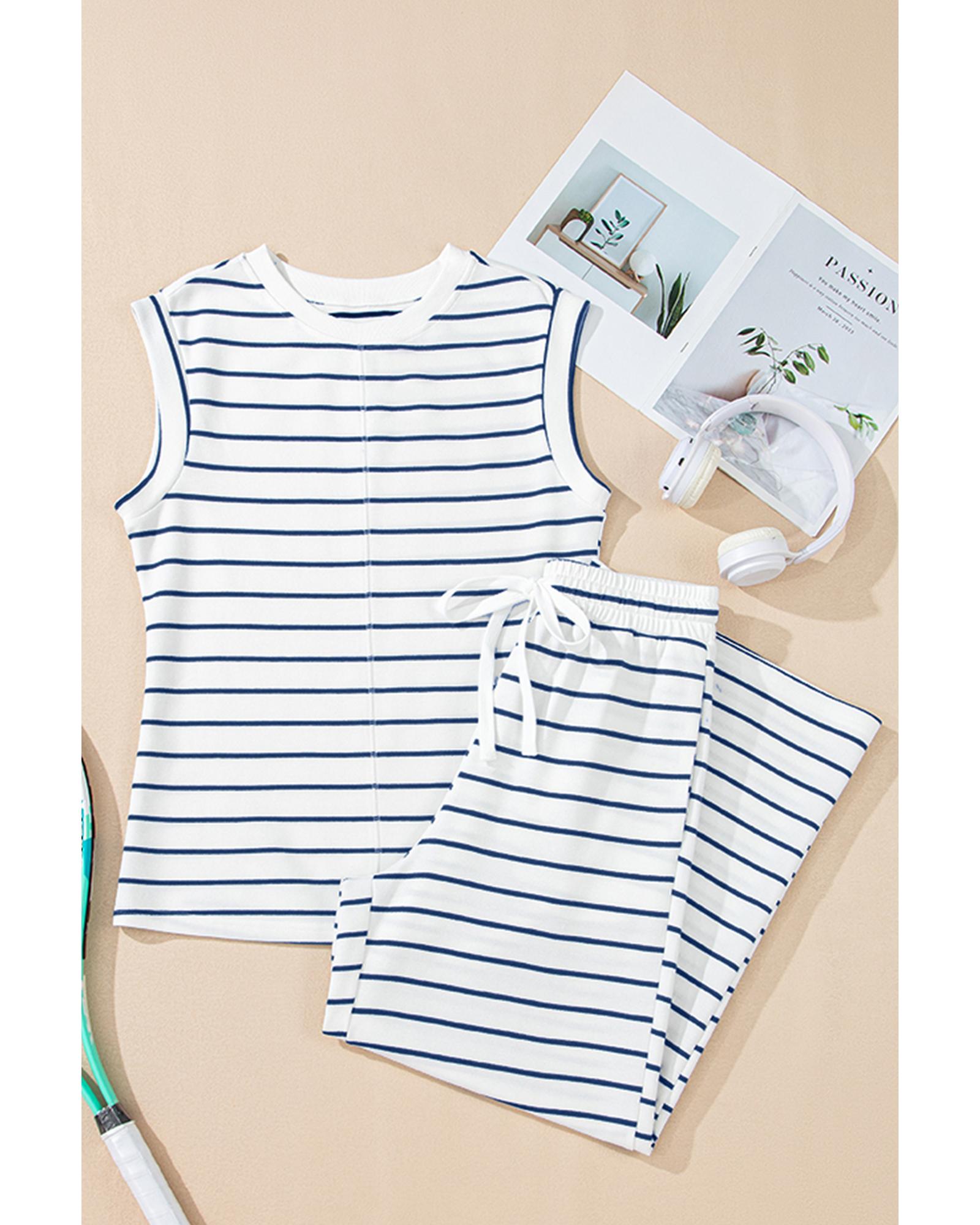 Sail Blue Casual Wide Leg 2pcs Pants Set – XL