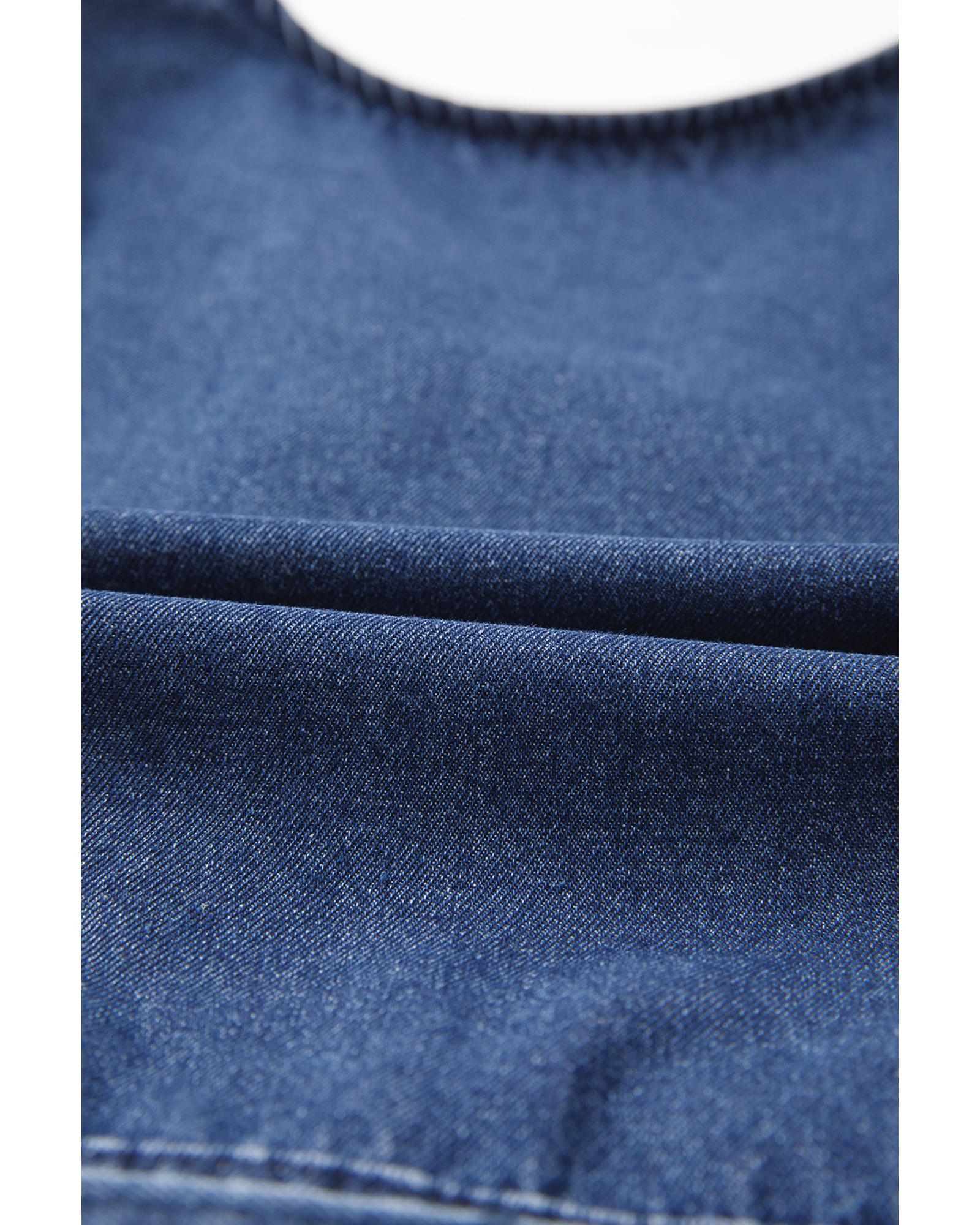 Sail Blue Denim Ruffled Zipped Front Belted Romper – L