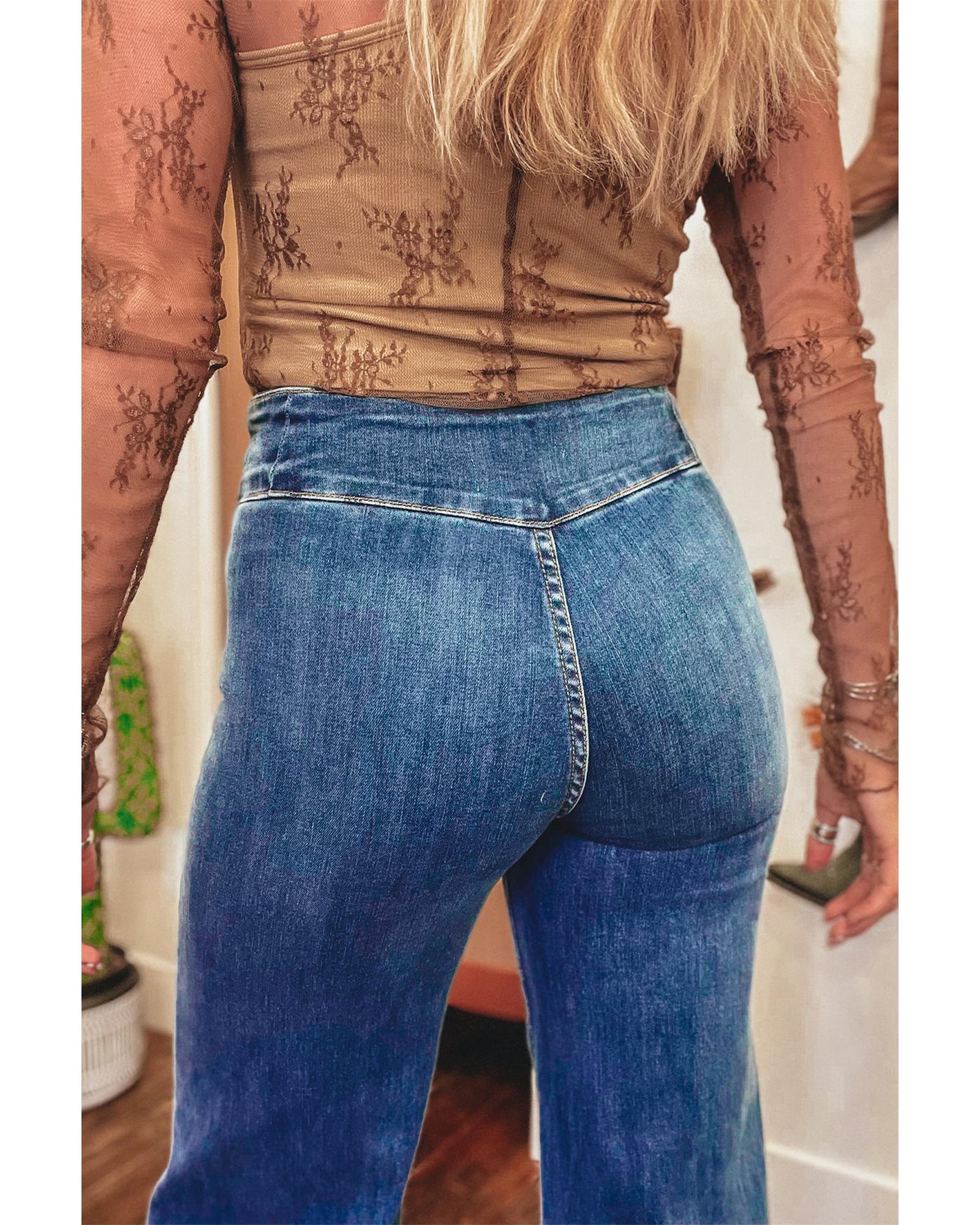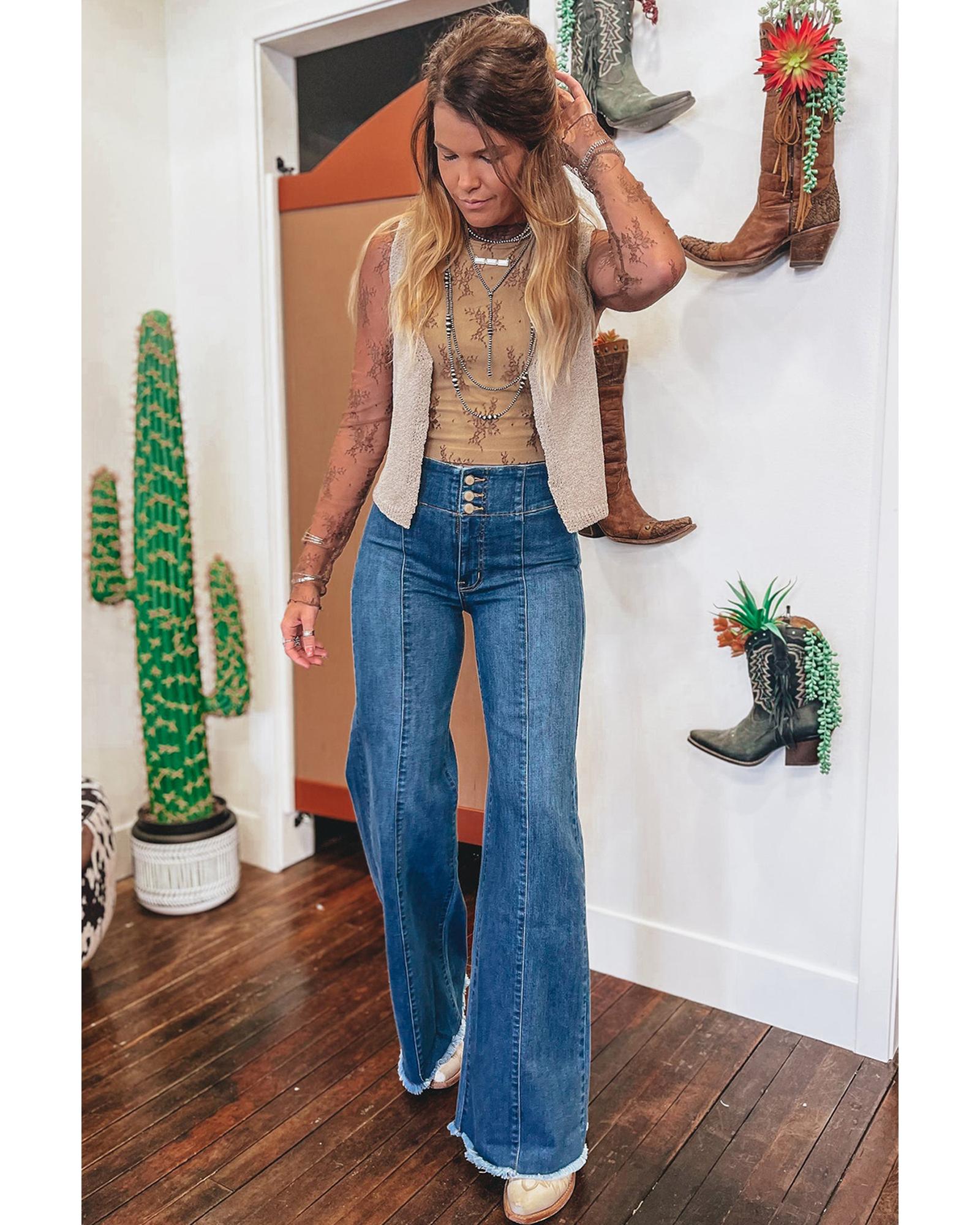 Sail Blue High Waist Button Fly Seamed Raw Hem Flare Jeans – 4 US