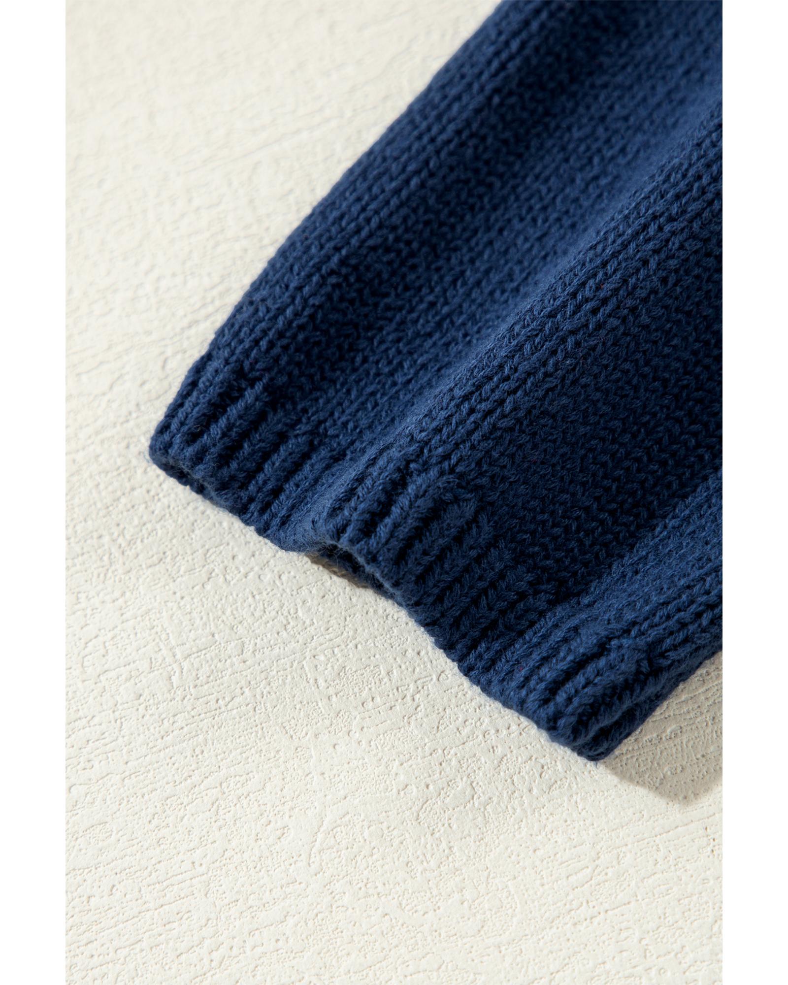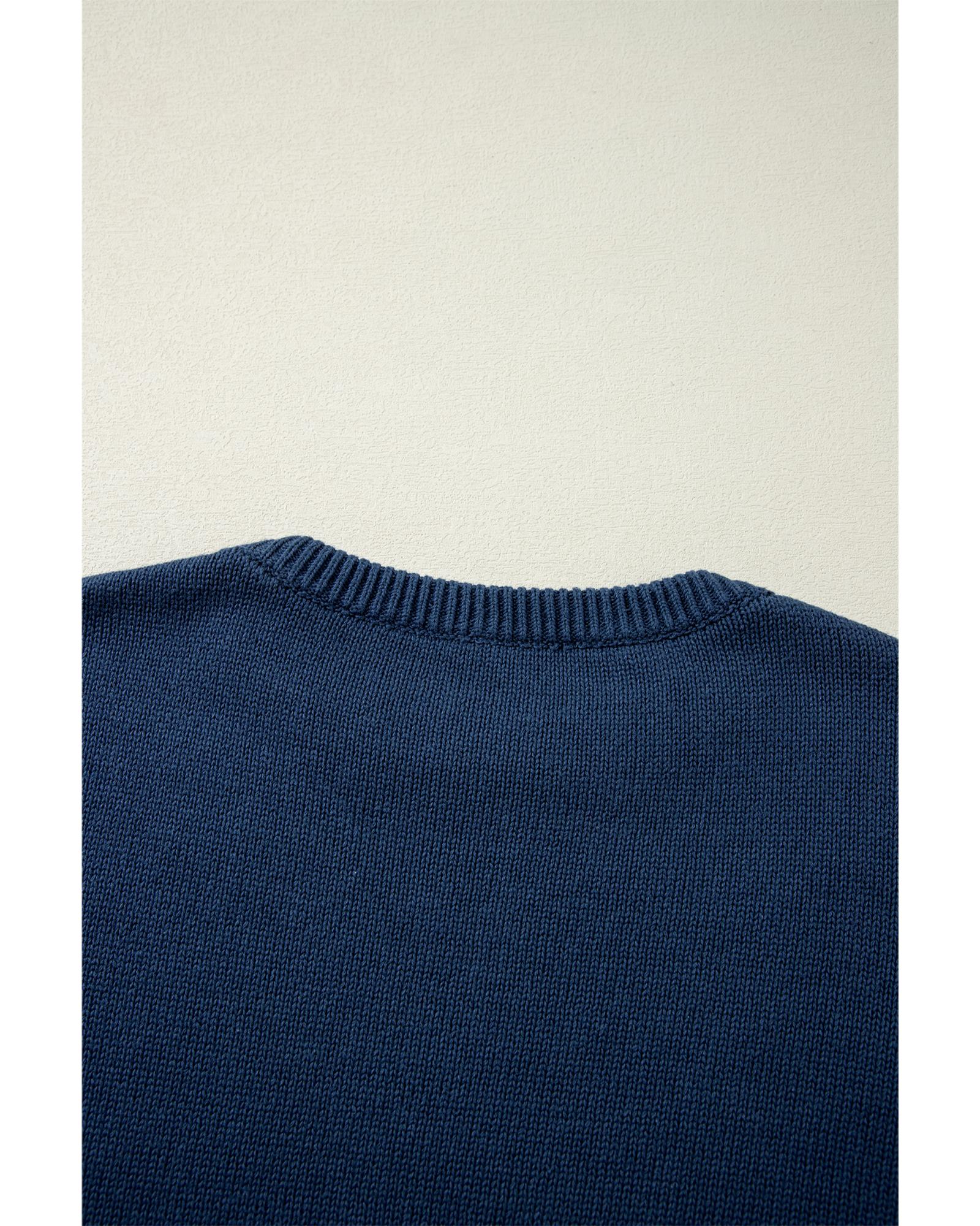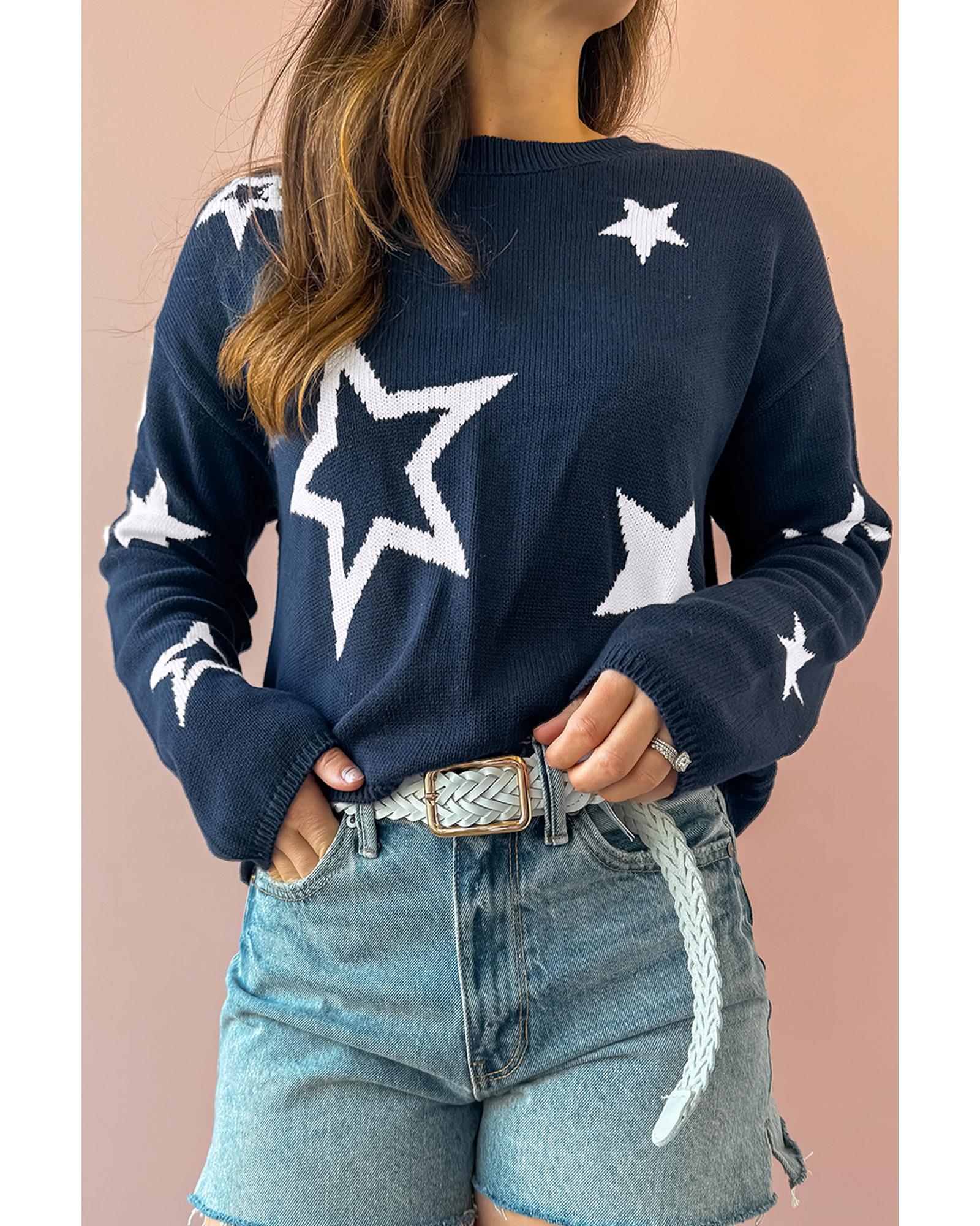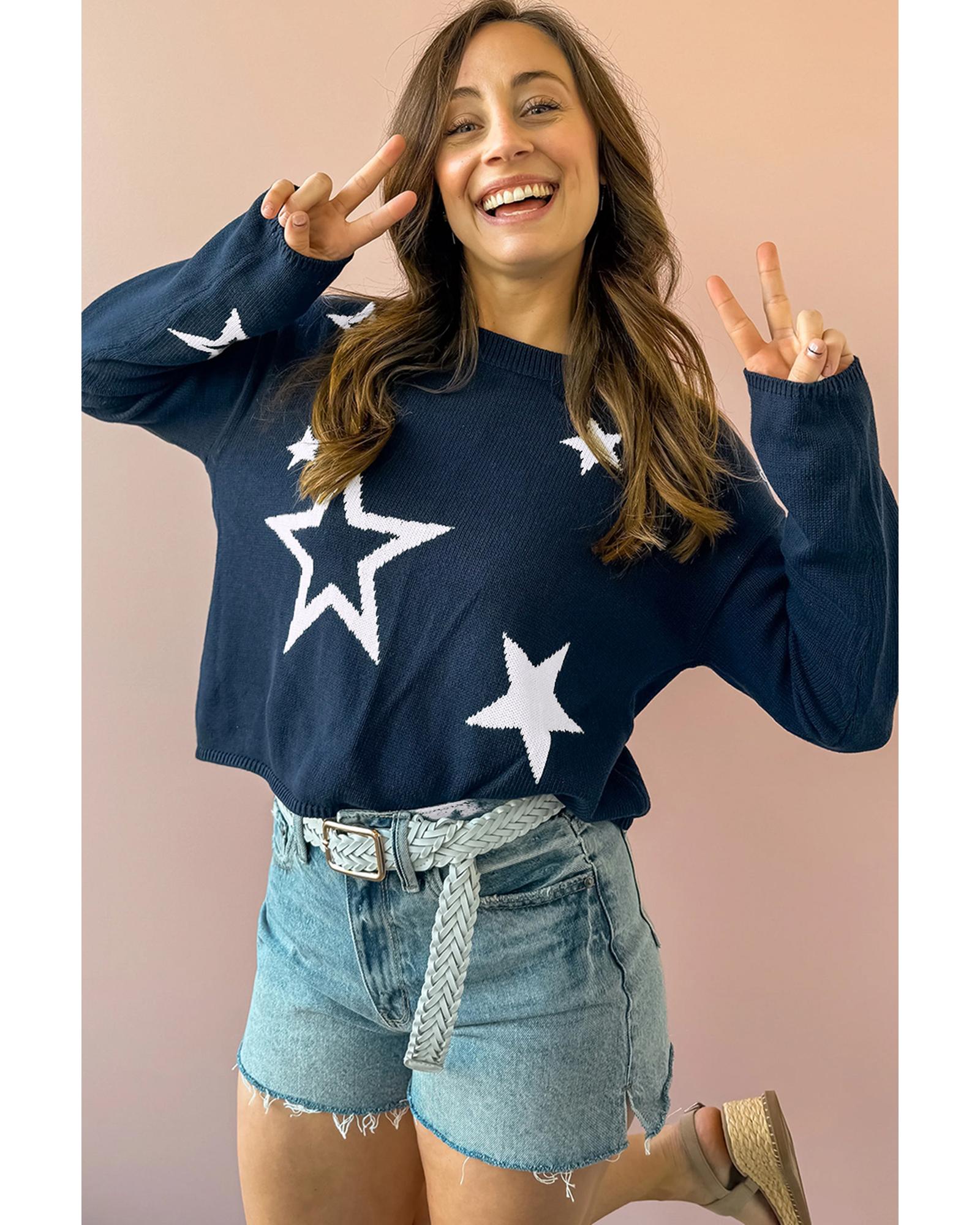 Sail Blue Star Pattern Drop Shoulder Knitted Sweater – M